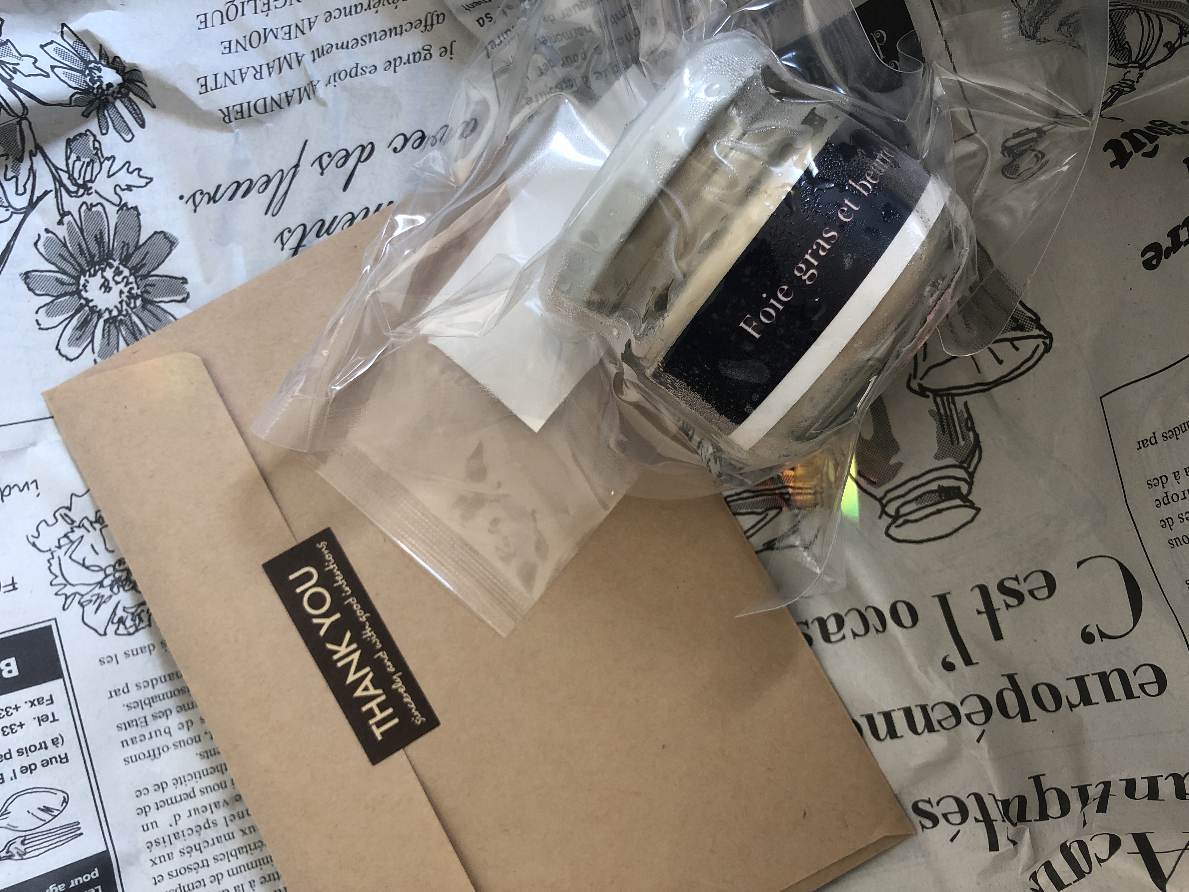 瓶を開けた瞬間、ふわっと香るフォアグラ。テクスチャーはバターもフォアグラも固いので、しっかりしています。