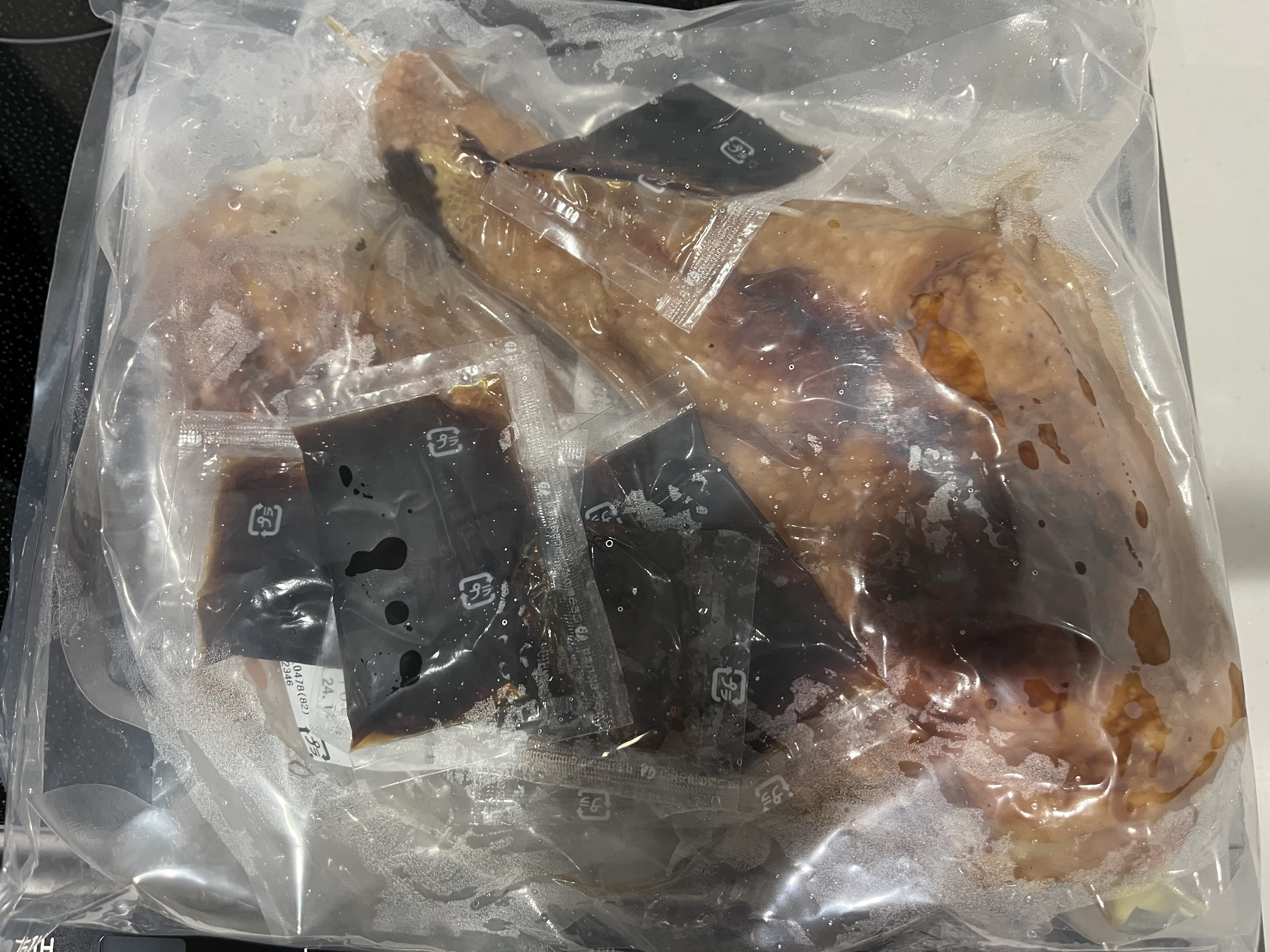 調理方法は湯煎で5分ほど。こんなに本格的なローストチキンを、簡単に湯煎するだけで自宅で食べられるのはとってもありがたいです。待ち遠しい5分のタイマーが鳴って袋を開けると、湯気と共に美味しそうな香りが部屋中に広がります!