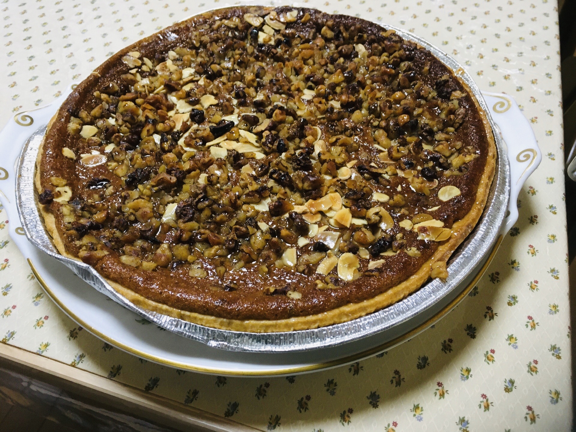 ・クルミとローストしたスライスアーモンドをたっぷりと使用したタルト