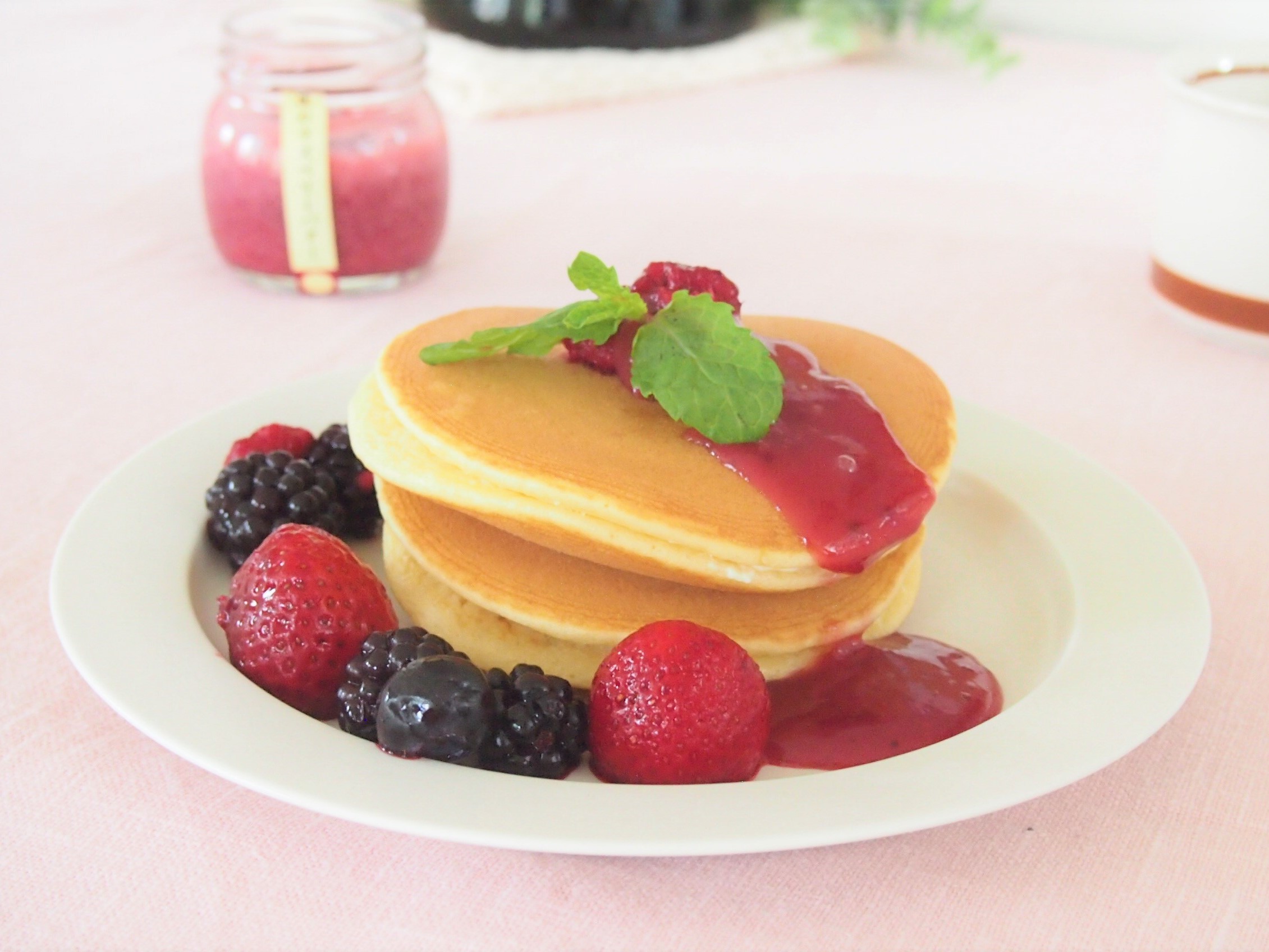 お皿に移してレンジで30秒ほど加熱するととろーっと溶けるのでパンケーキなどのソースにもおすすめ。ピンクでかわいらしいソースに仕上がります。