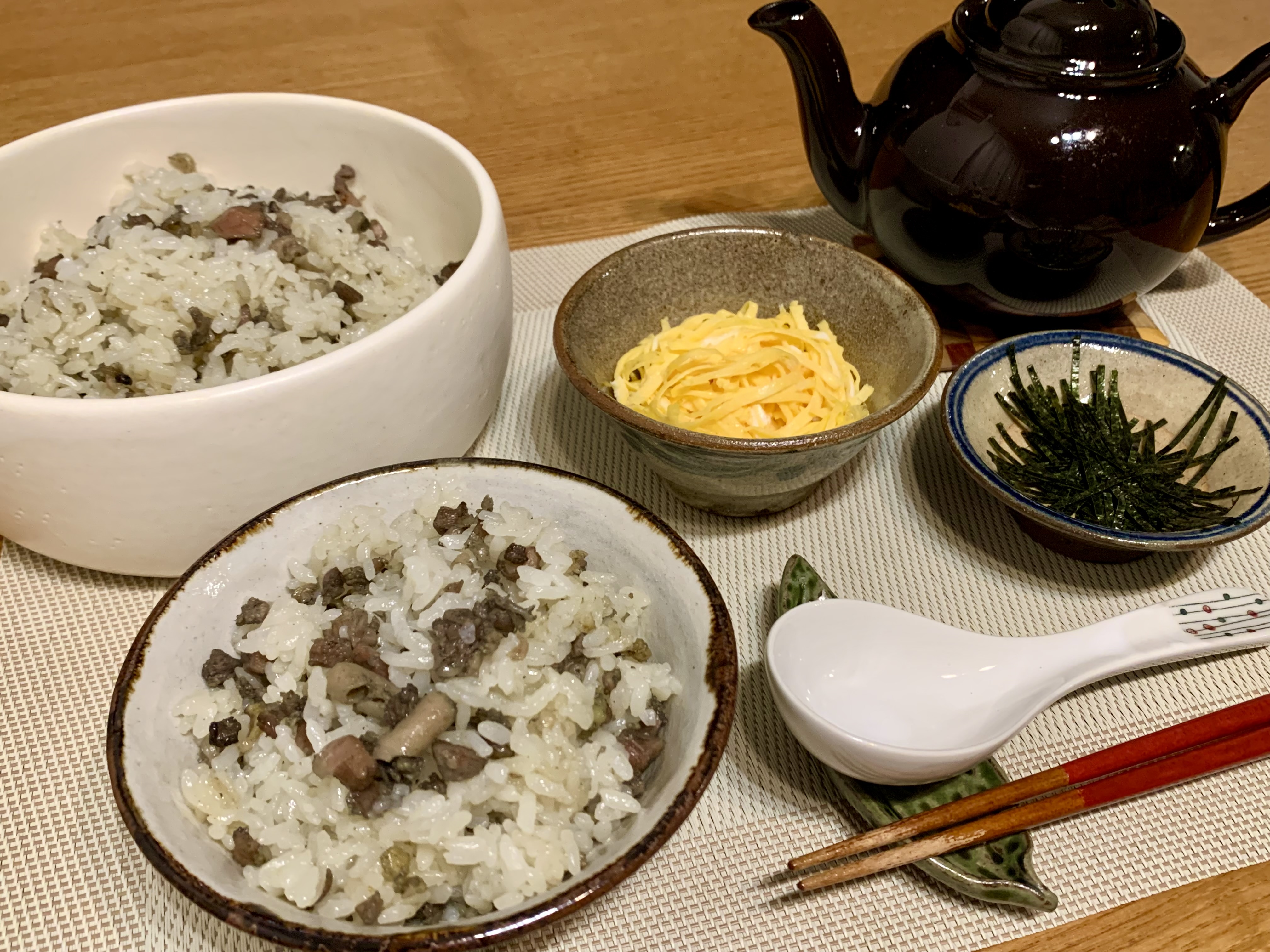 炊飯器の蓋を開けた瞬間、まるで炭火で焼きたての鶏を炊き込んだかのような香ばしい香り