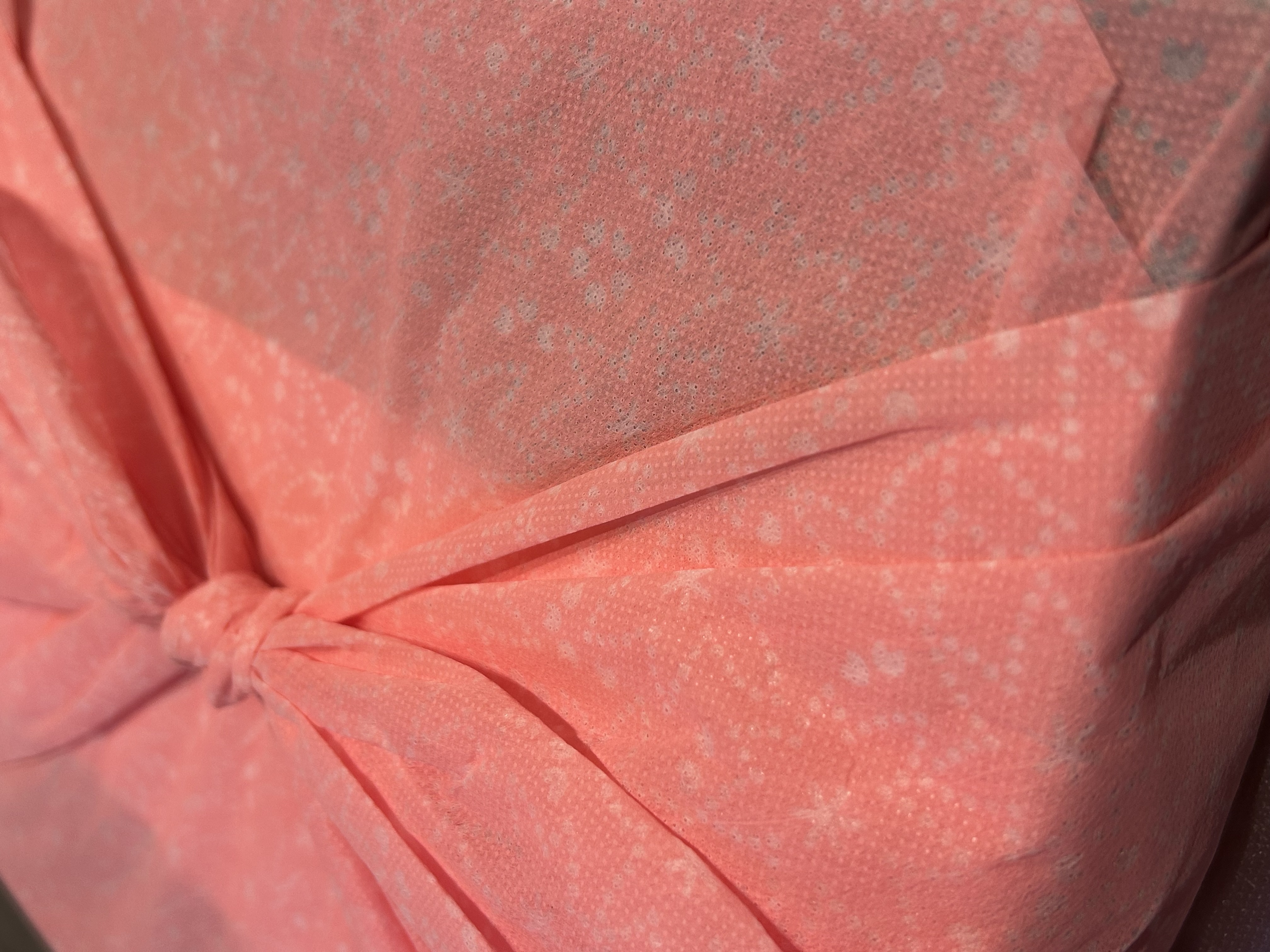 風呂敷を解くと、お米・焼き鳥飯の素・スープ・きざみのり のセットが入っています