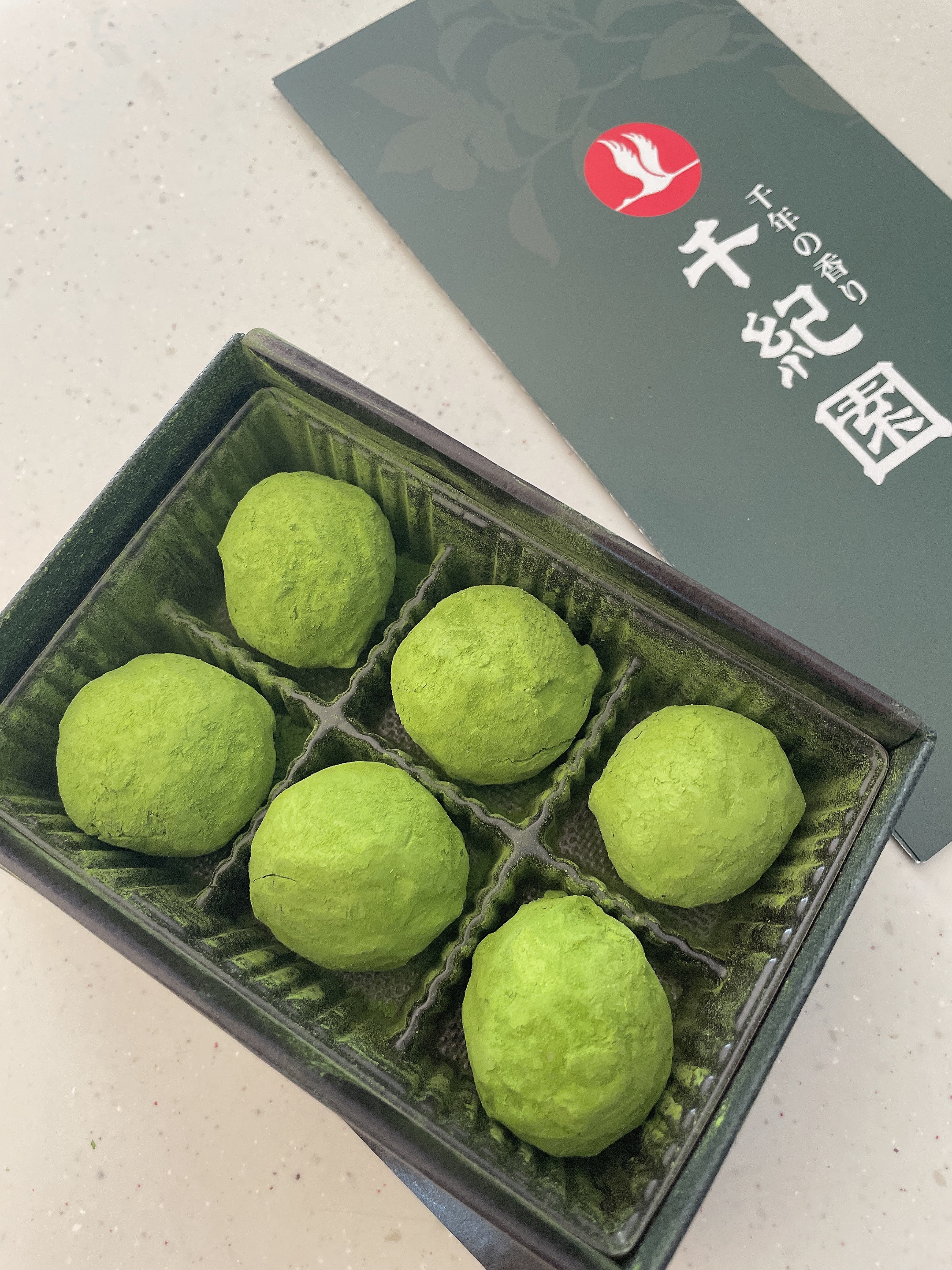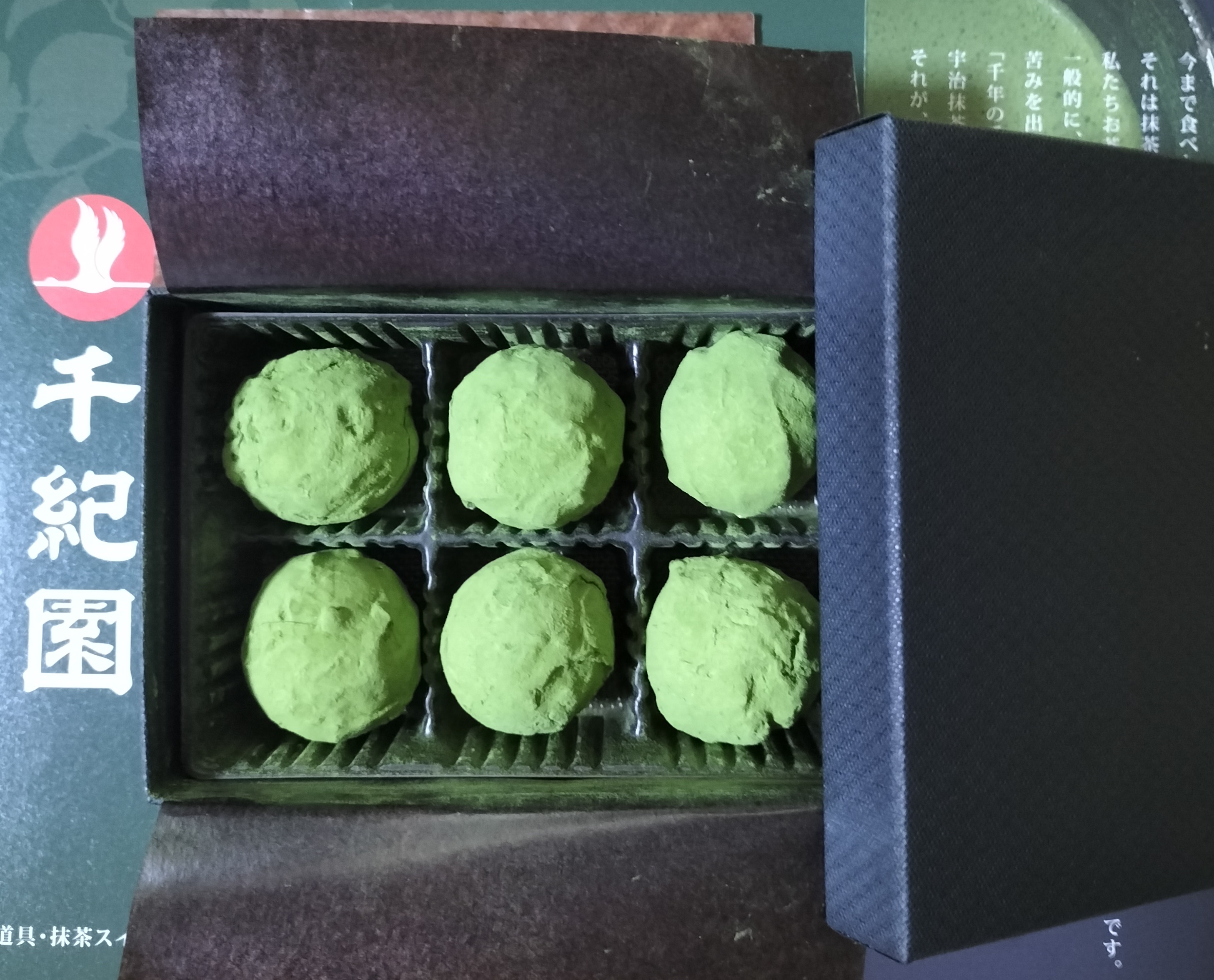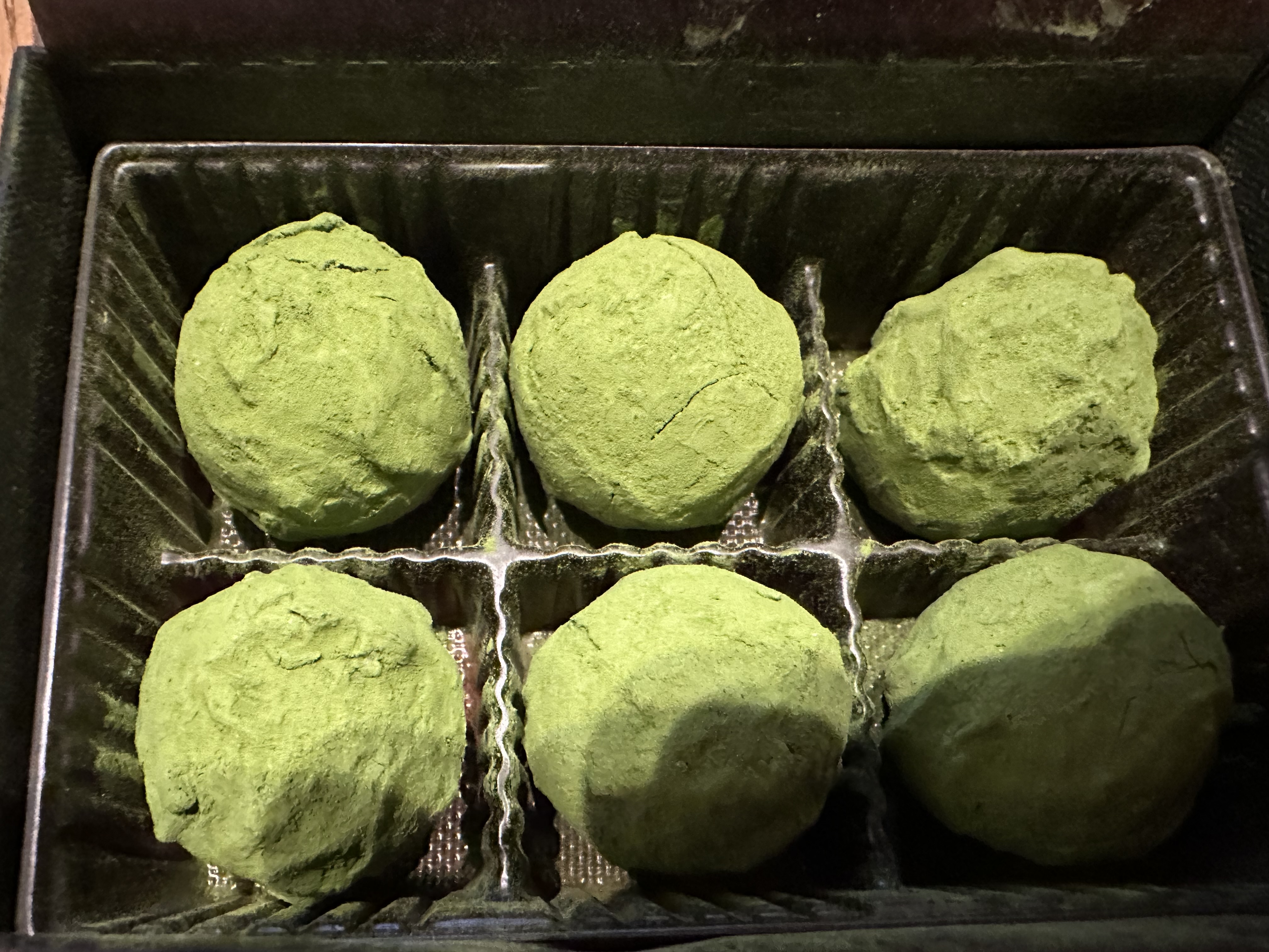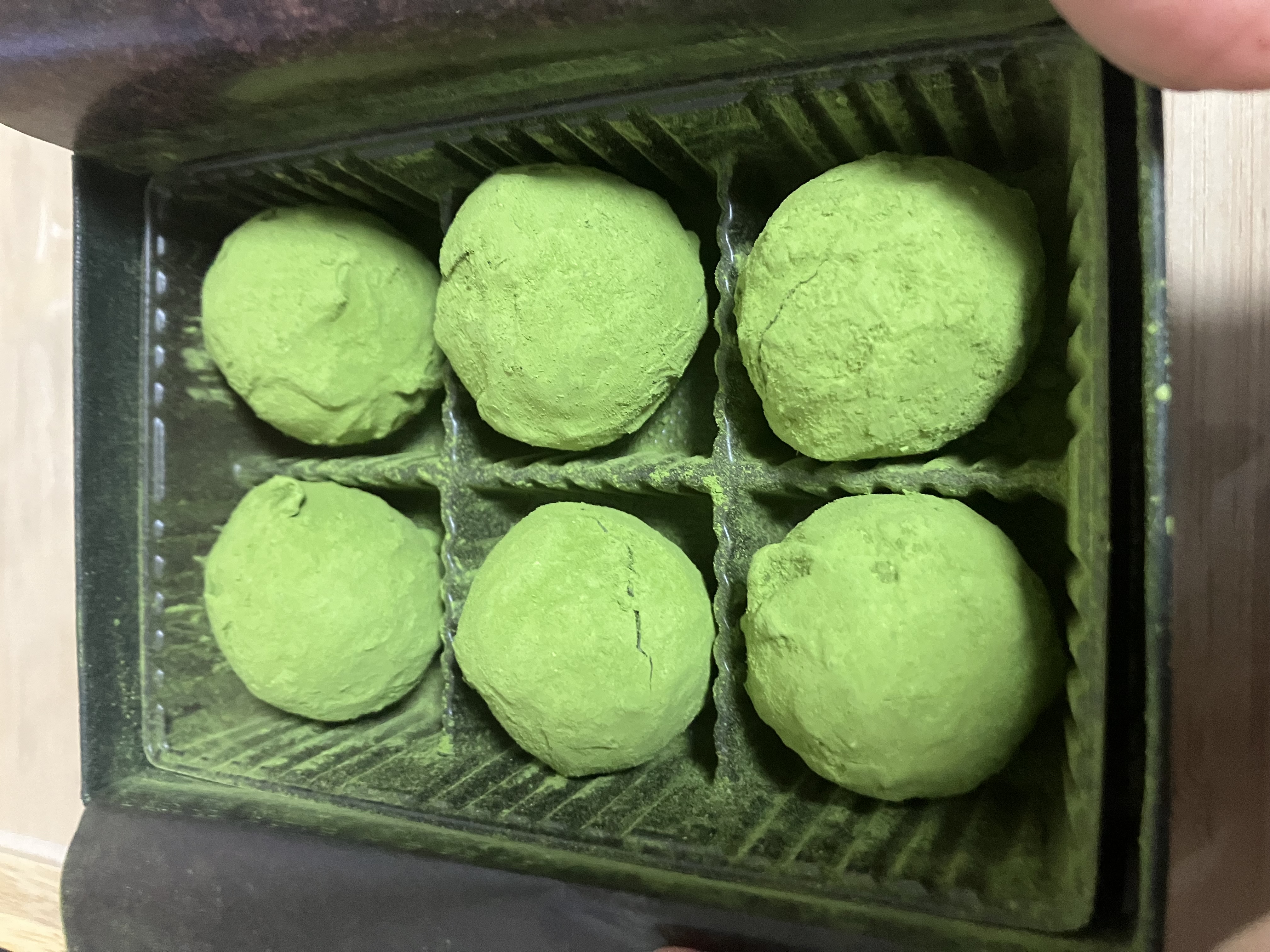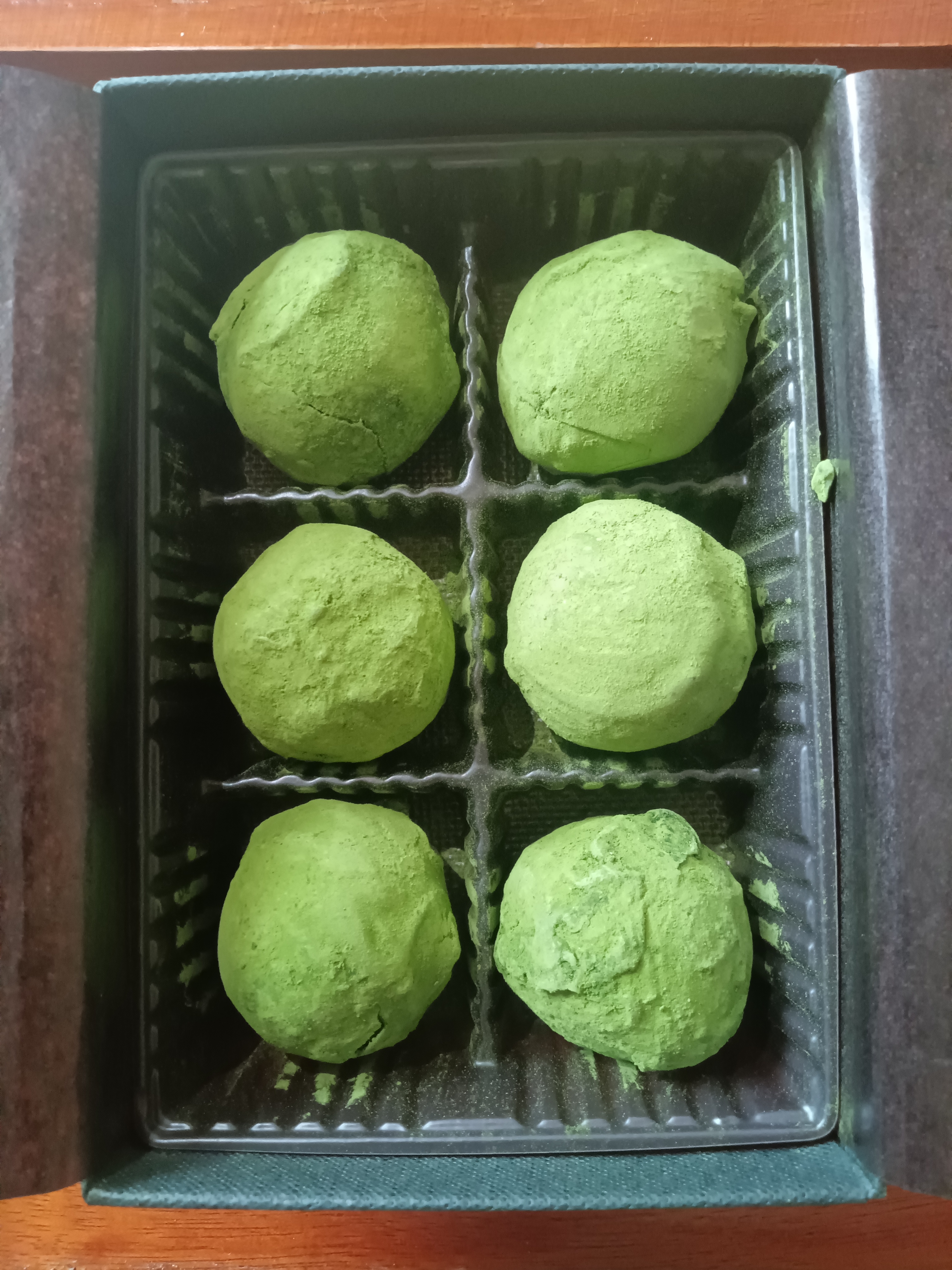 ゆっくりとその黒い箱を開けると、抹茶トリュフの鮮やかな緑が飛び込んできます。