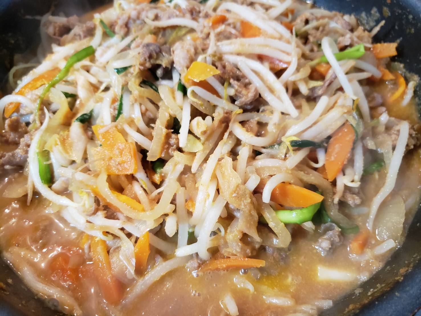 タレはたっぷりあるのでたくさんお野菜入れて楽しめます!(我が家はもやしを3袋入れていただきました)