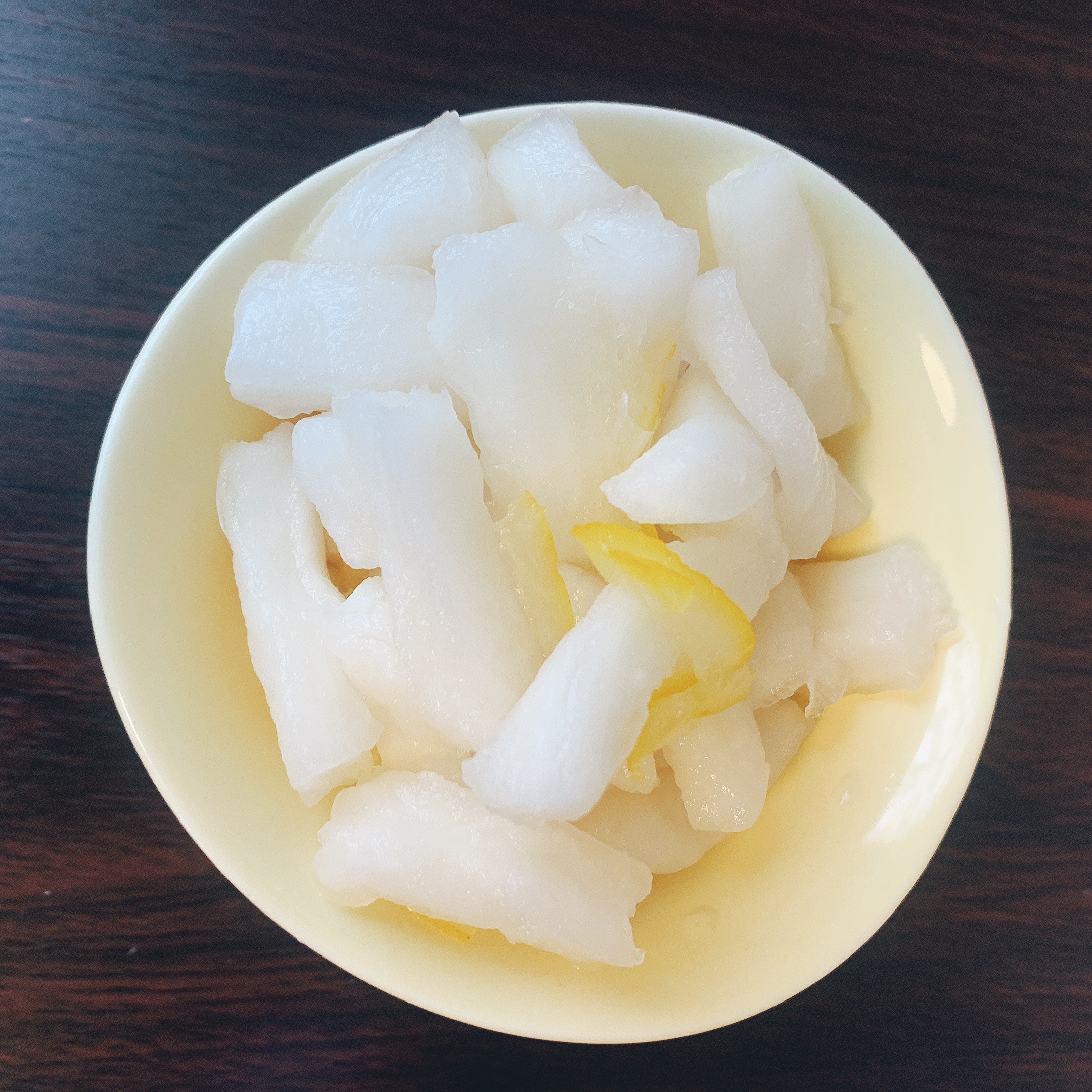はりはり大根漬 普通の壺つけより、醤油感が少しあると感じましたそれがまた良くて、桜ふぶきは薄切りなんですがこれは厚切りでまた違った食感を生み出します。酒に合う。