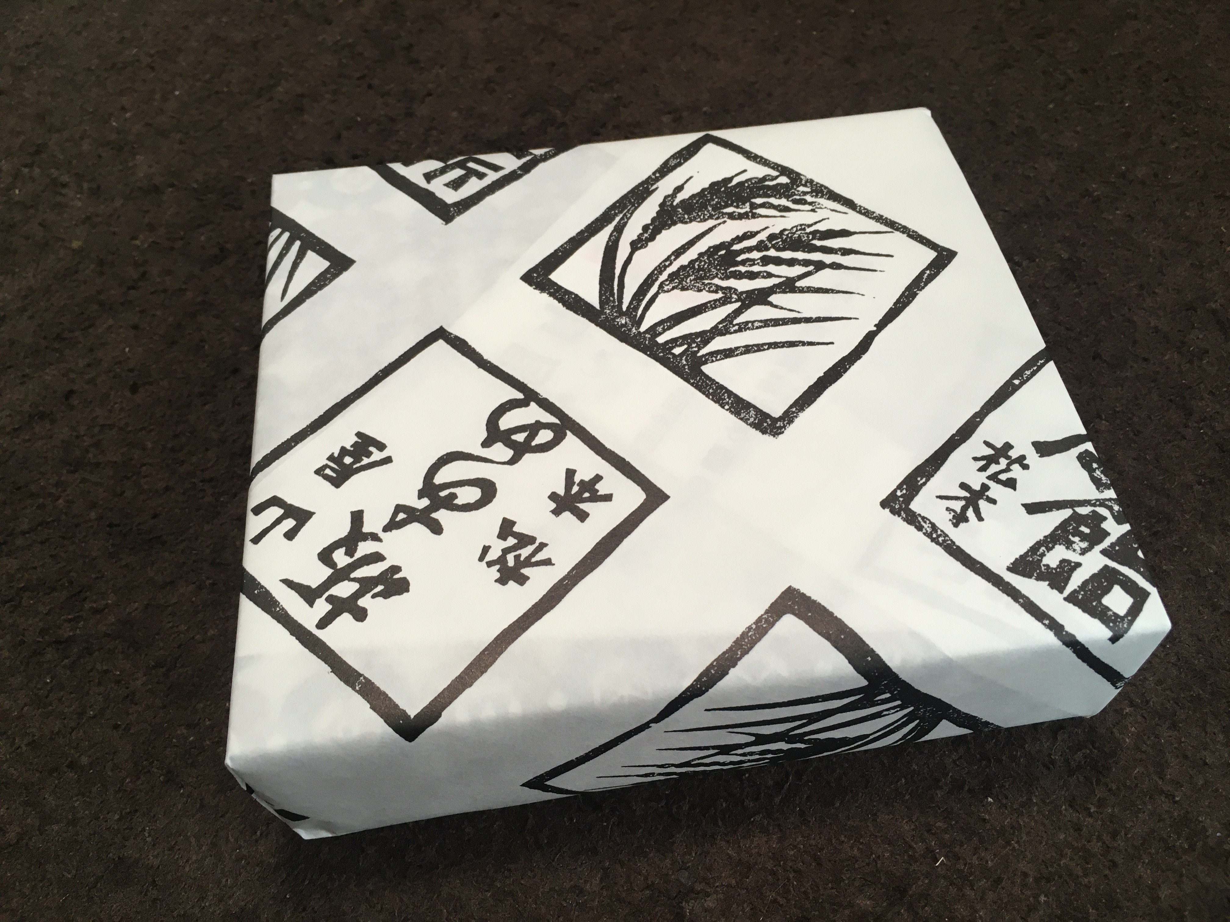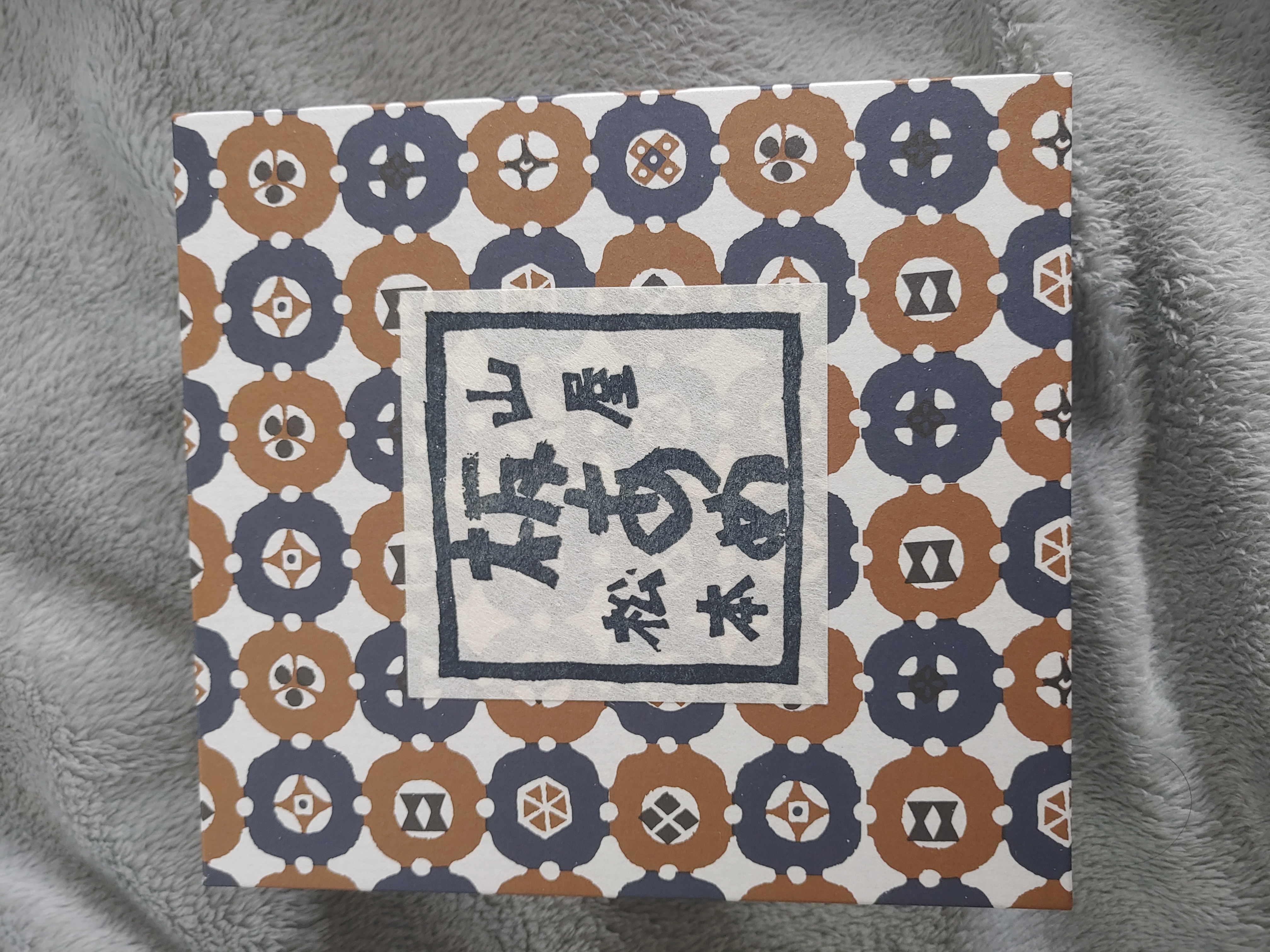 包み紙も素朴なレトロ感がありますが、箱も商品紹介の通り民芸調で素敵です。
