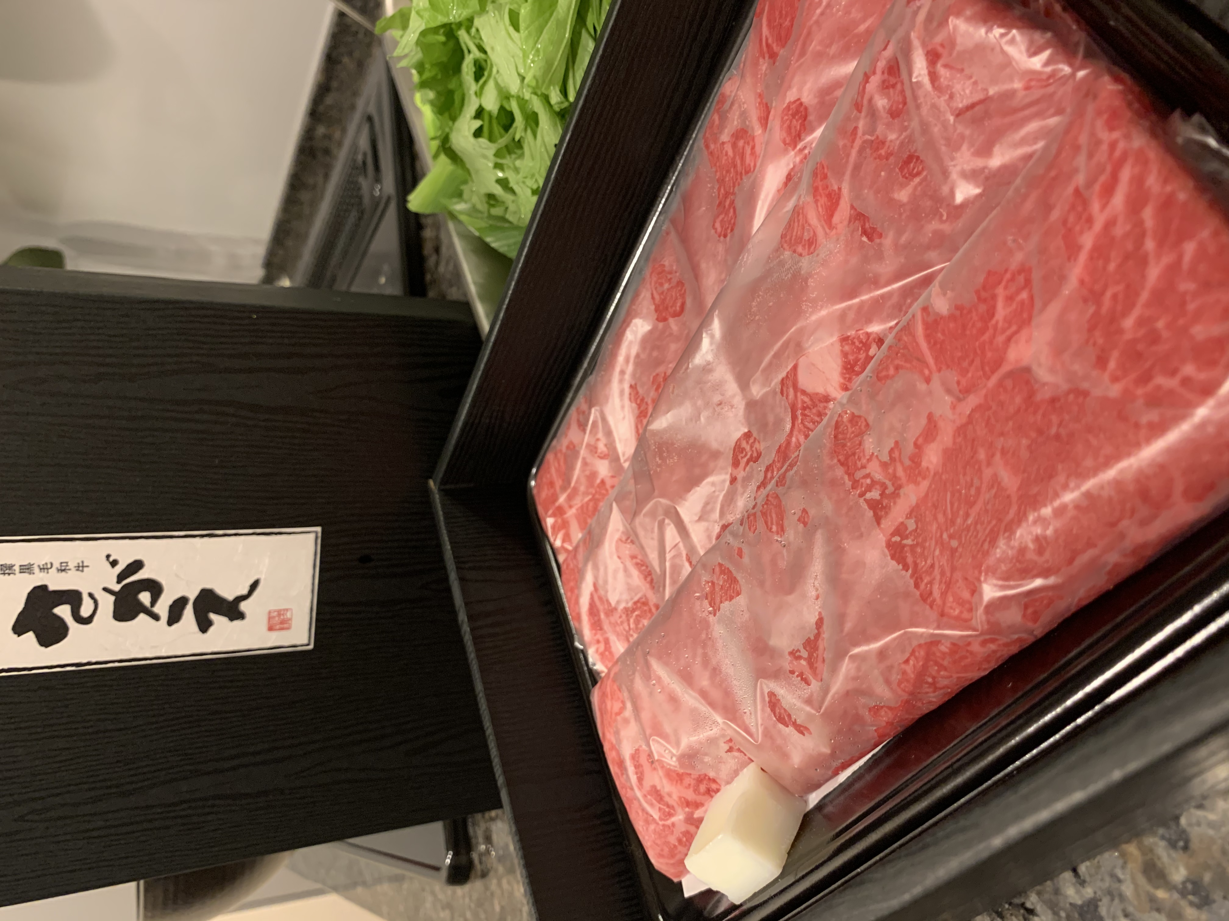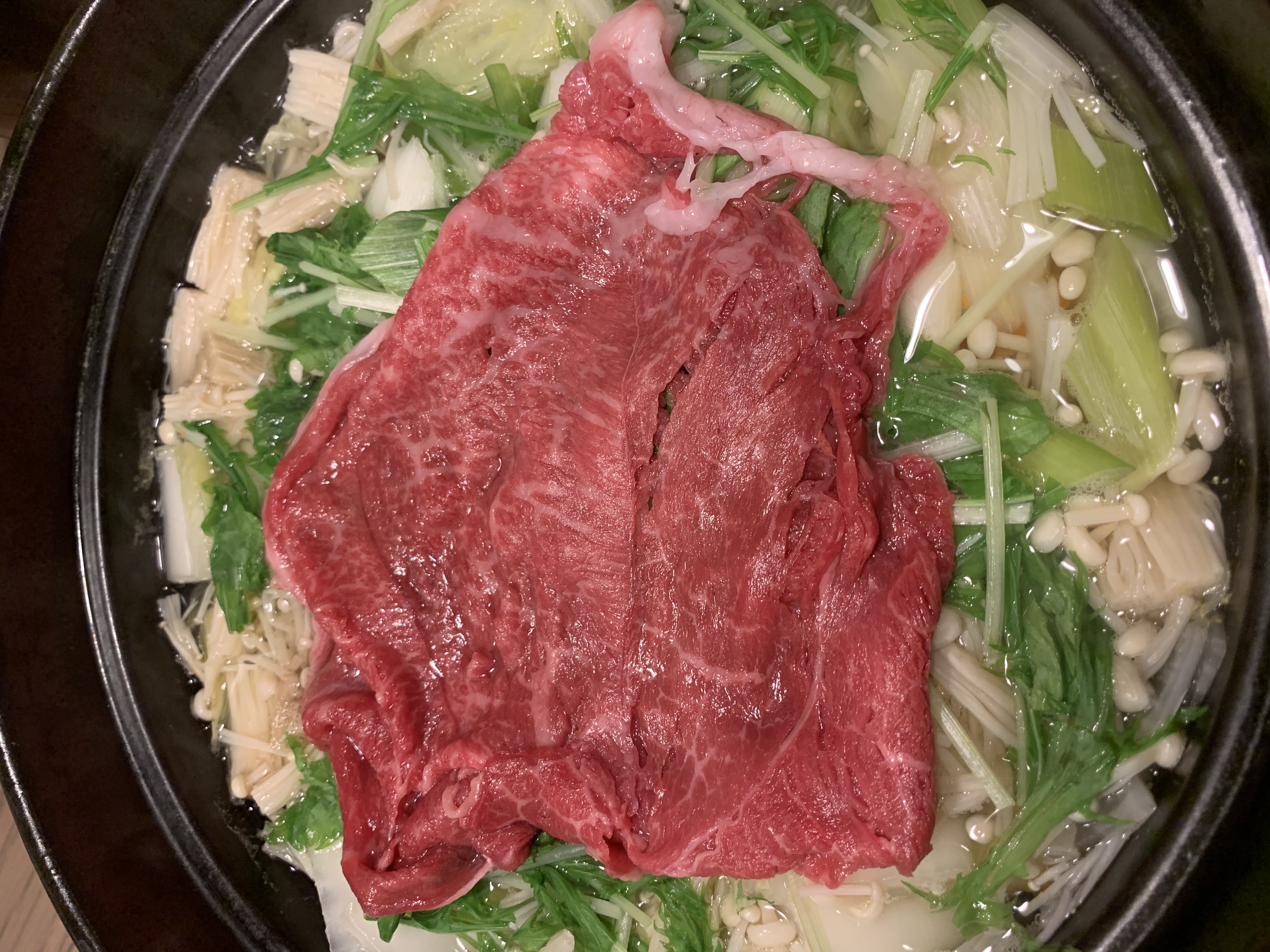 お肉はしゃぶしゃぶ用に綺麗に薄くスライスされて3枚入っていたのですが、なかなかお目にかかれないとても立派な大きさをしていて、その辺では手に入らないすごいお肉感。食べる前から楽しかったです。