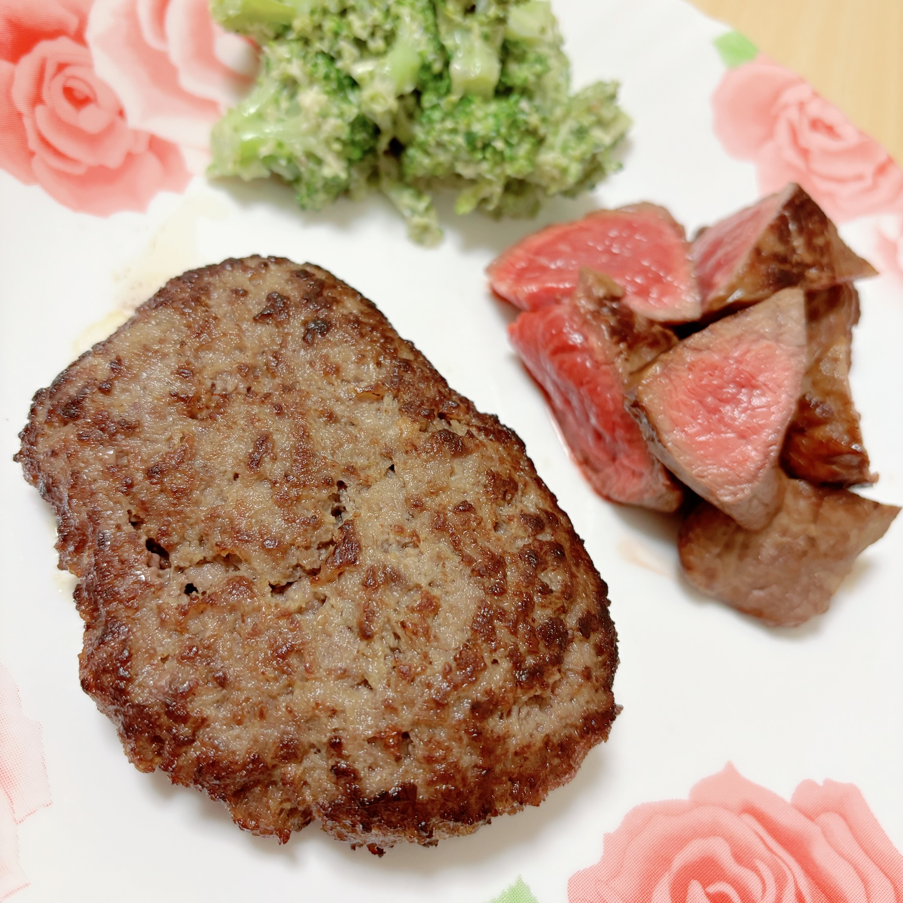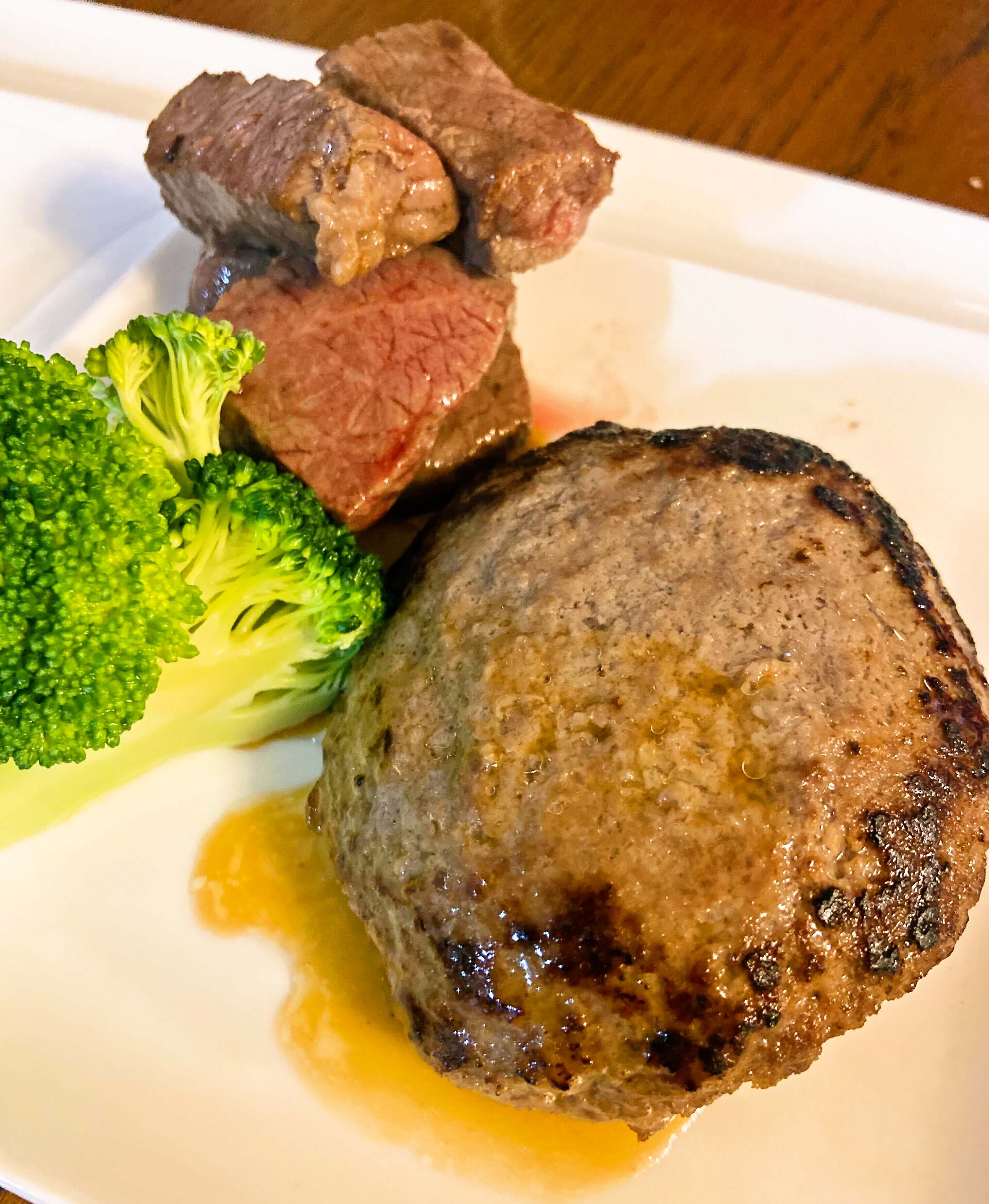 今回ステーキはホットプレート(焼肉用)、ハンバーグはフライパンで調理しました。
