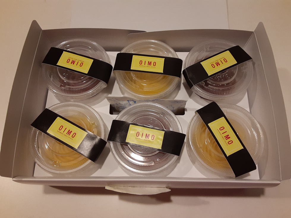 箱を開けると美味しそうなプリンが6個。味は安納いもと紅いもの2種類。2つの種類が味わえるなんて嬉しい。冷凍で届いたので、まずはしっかり解凍。