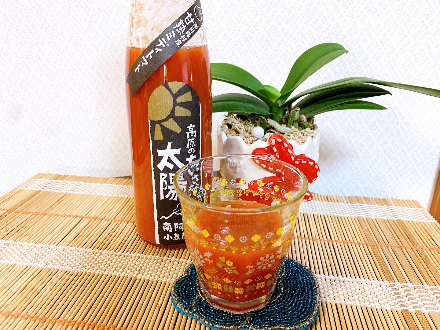 使用されている完熟ミディトマトは桃色系トマトの3倍のリコピンが含まれているそうです。ジュースにすることでリコピンの吸収率も約2~3倍になっているそうで、栄養価も優れていますね。うちの子供はトマトジュースが苦手で普段は飲まないんですが、このトマトジュースは甘くて美味しいと言って喜んで飲んでいました。子供に手軽にトマトをとってもらえるのはとても助かります。非常に生産量が少ないそうで、貴重なトマトジュースが飲めて、とっても幸せでした。熊本県農産加工コンクールを受賞されている商品だということも納得の美味しさでした。
