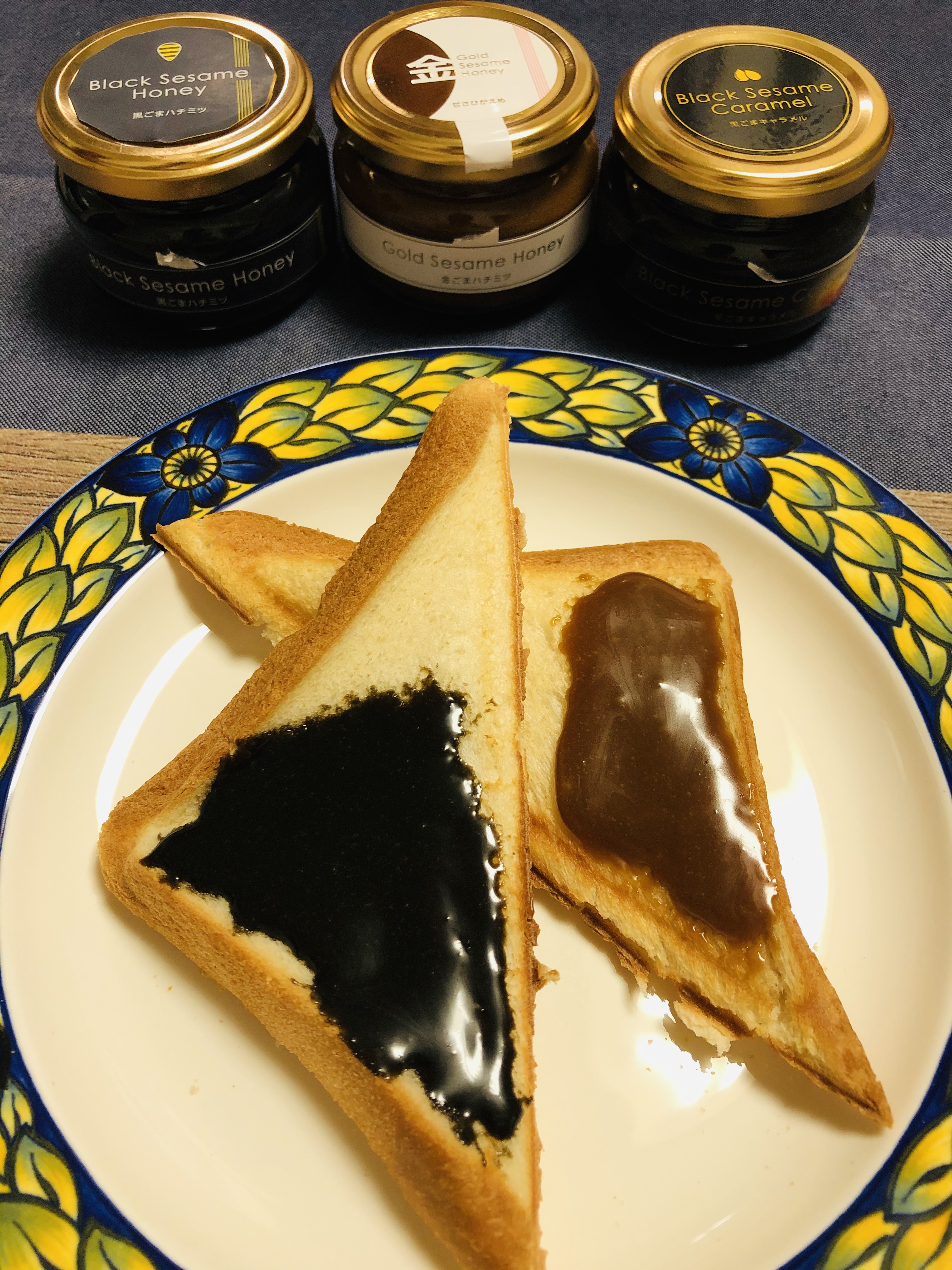 他の2種類、金ごまハチミツは香り良く、黒ごまキャラメルはおやつ感が凄い!