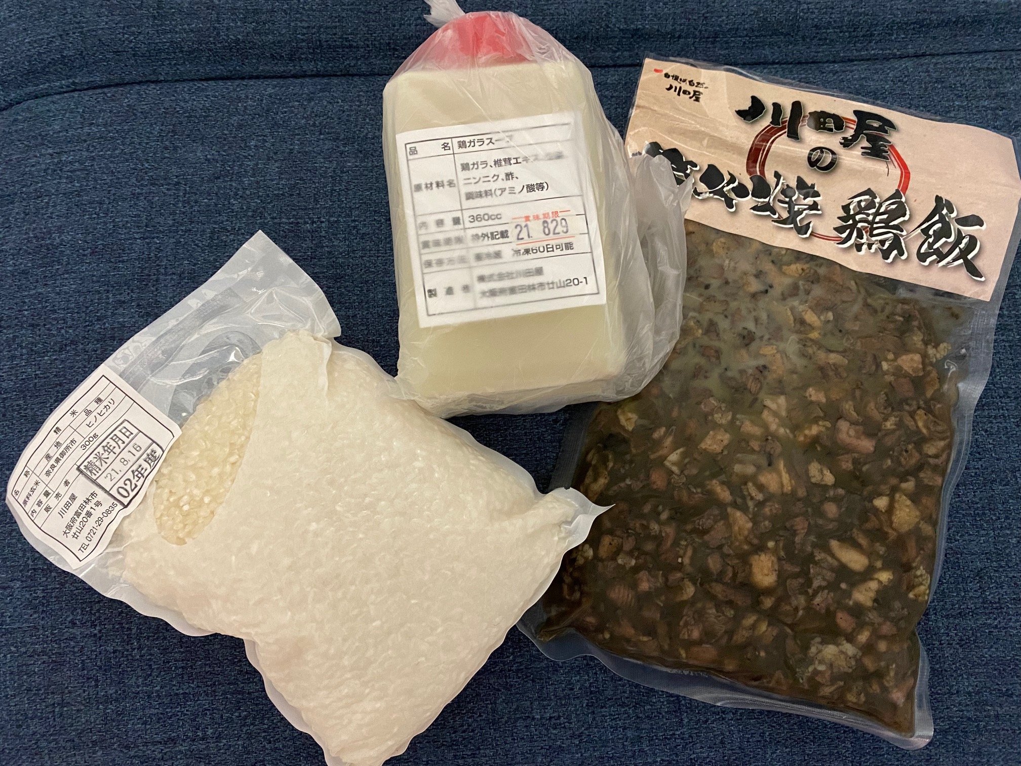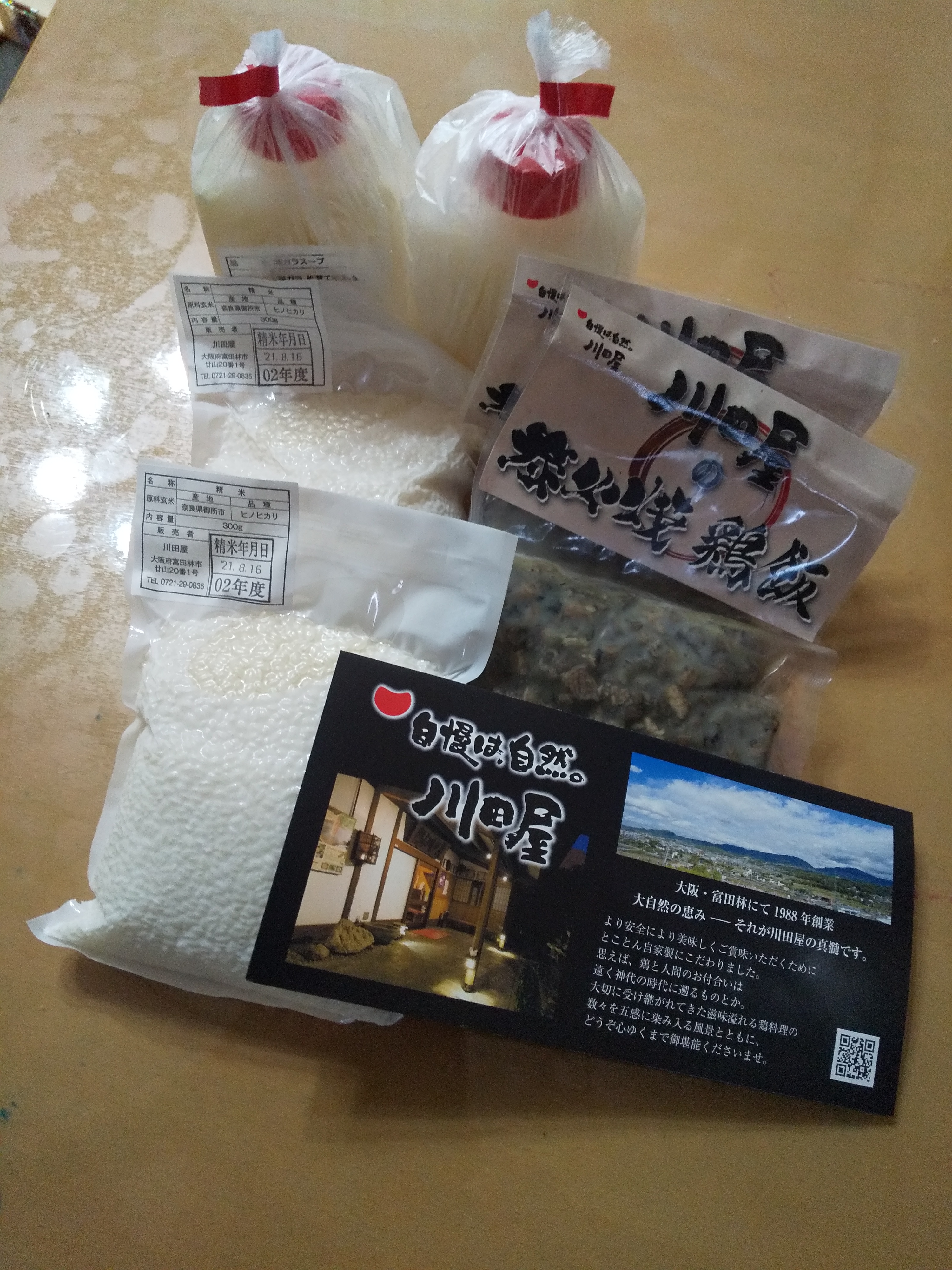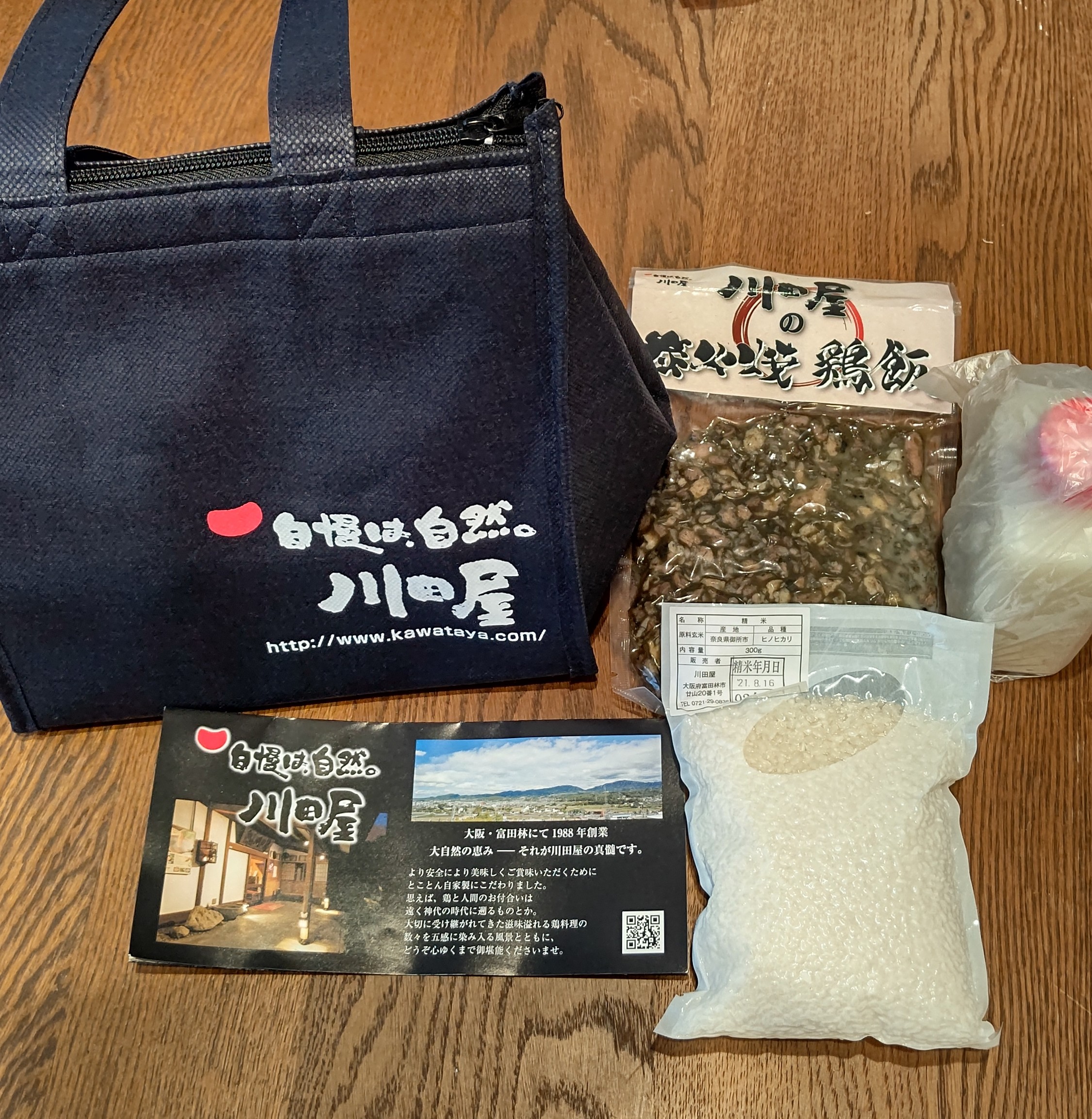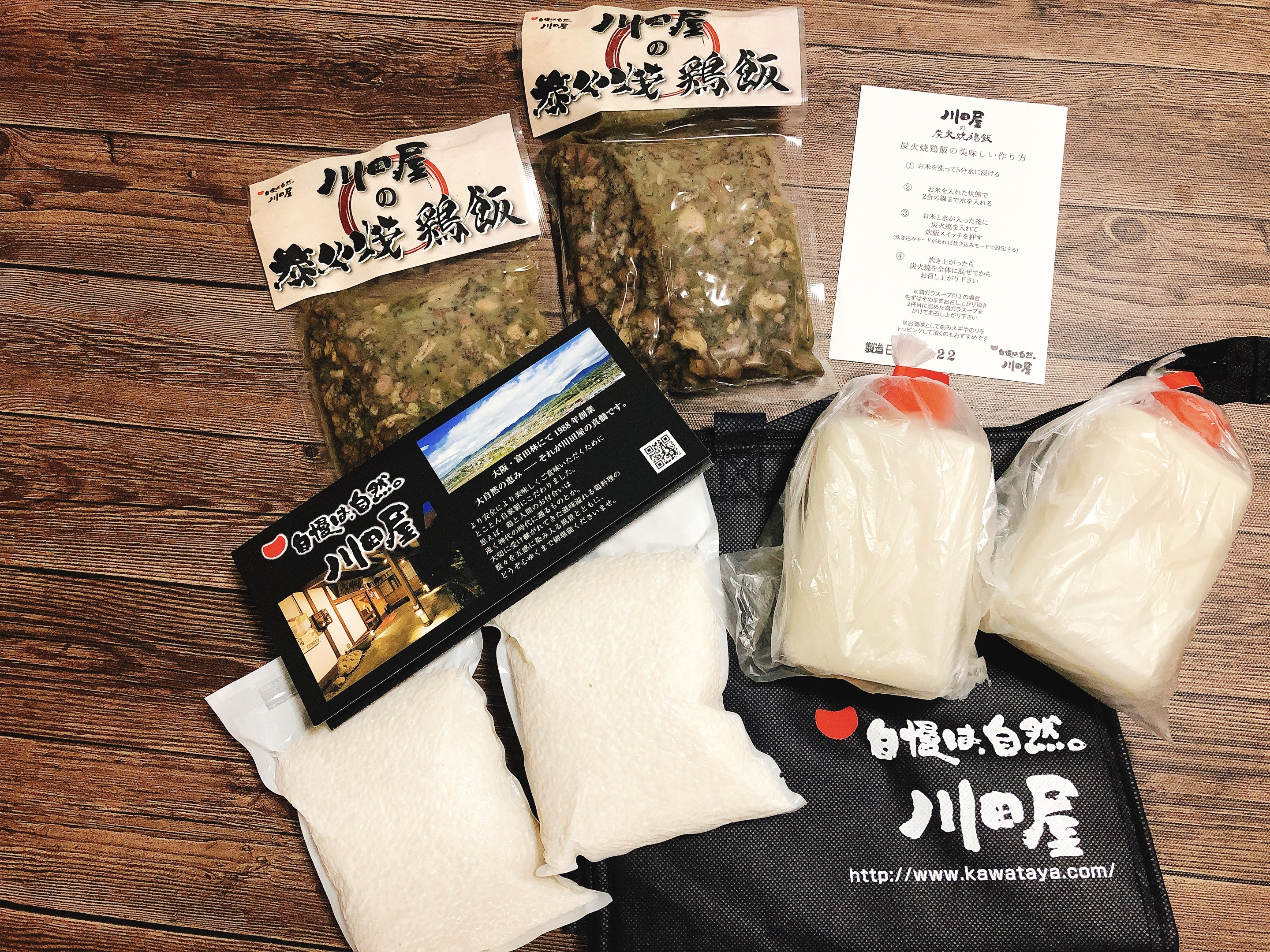 セット内容は鶏肉・お米2合(300g)・鶏ス-プ。