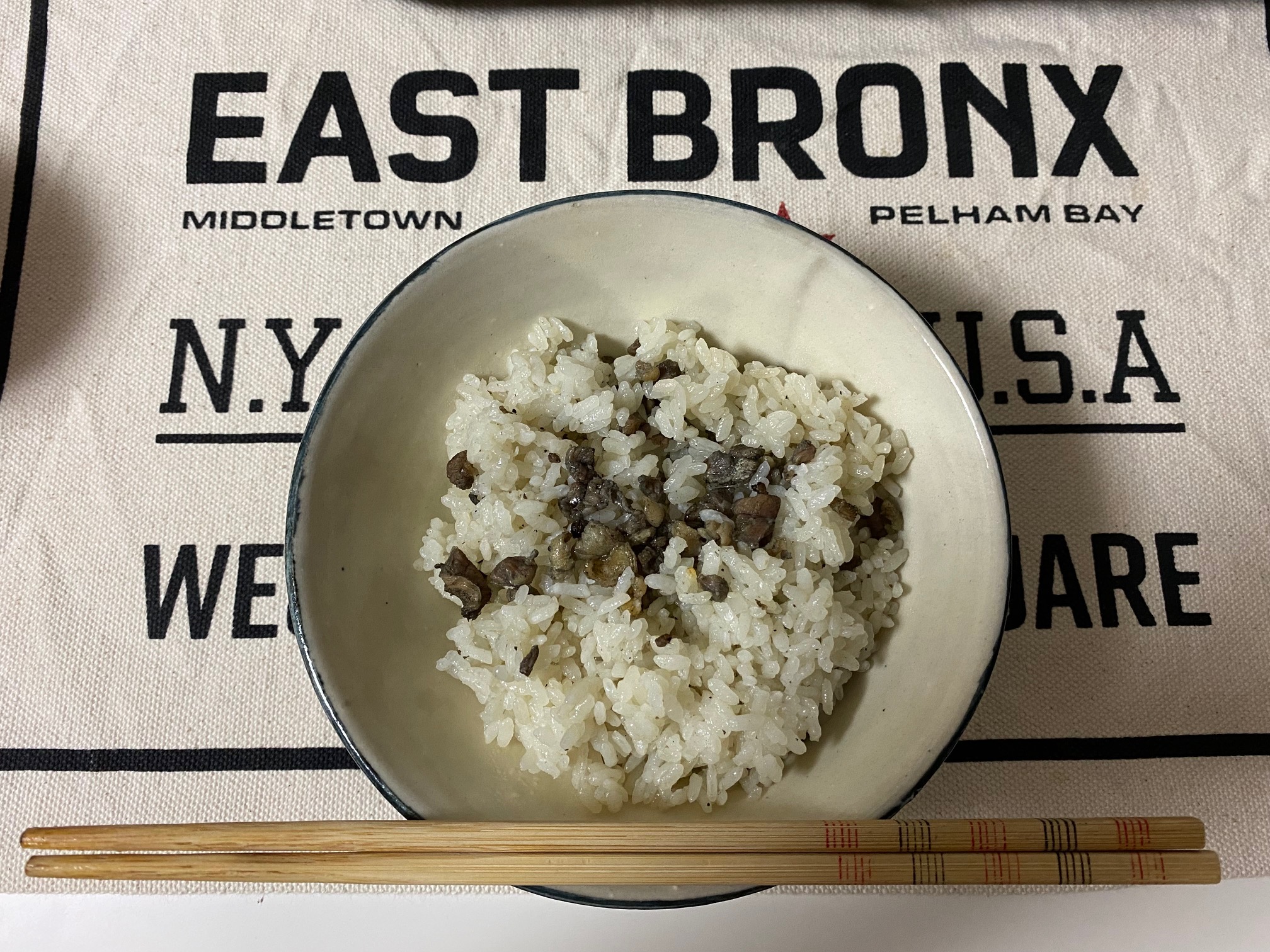 きっちり指南書通りに作ったのでお米の硬さもちょうどよい。炭火焼の鶏のうまみがお米にしみわたり最高に美味しくなっています。炭火焼ってコリコリとした歯ごたえが美味しいけれどあんまり大きいと噛むのが疲れることも。こちらの鶏はかなり小さく刻んであるので大丈夫。噛みしめるほどに鶏のうまみと炭の良い香りがお口に広がり大変美味しくて感動しました。このまま食べ続けたい気持ちを抑えつつ、第二ラウンドの鶏スープをかけていただくバージョンを。