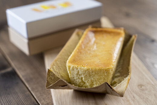 湯煎焼きにすることで、上はベイク、 下はレアチーズのようなひとつで二度美味しい食感を実現。 高温と低温の二度焼きをしながらもとろける口当たりを求めてギリギリの火入れができるのは本格レストランのシェフの御業が光ります。