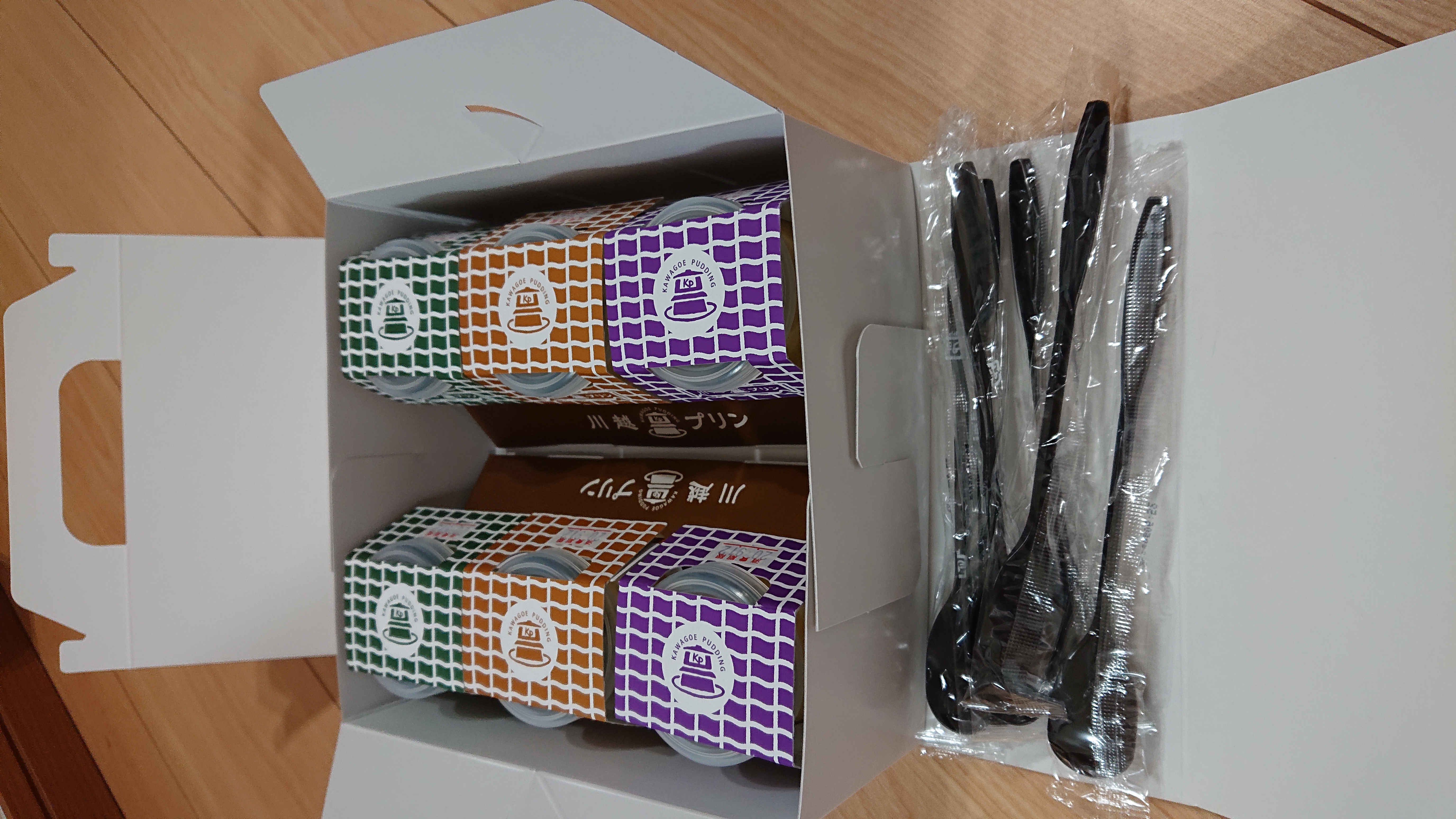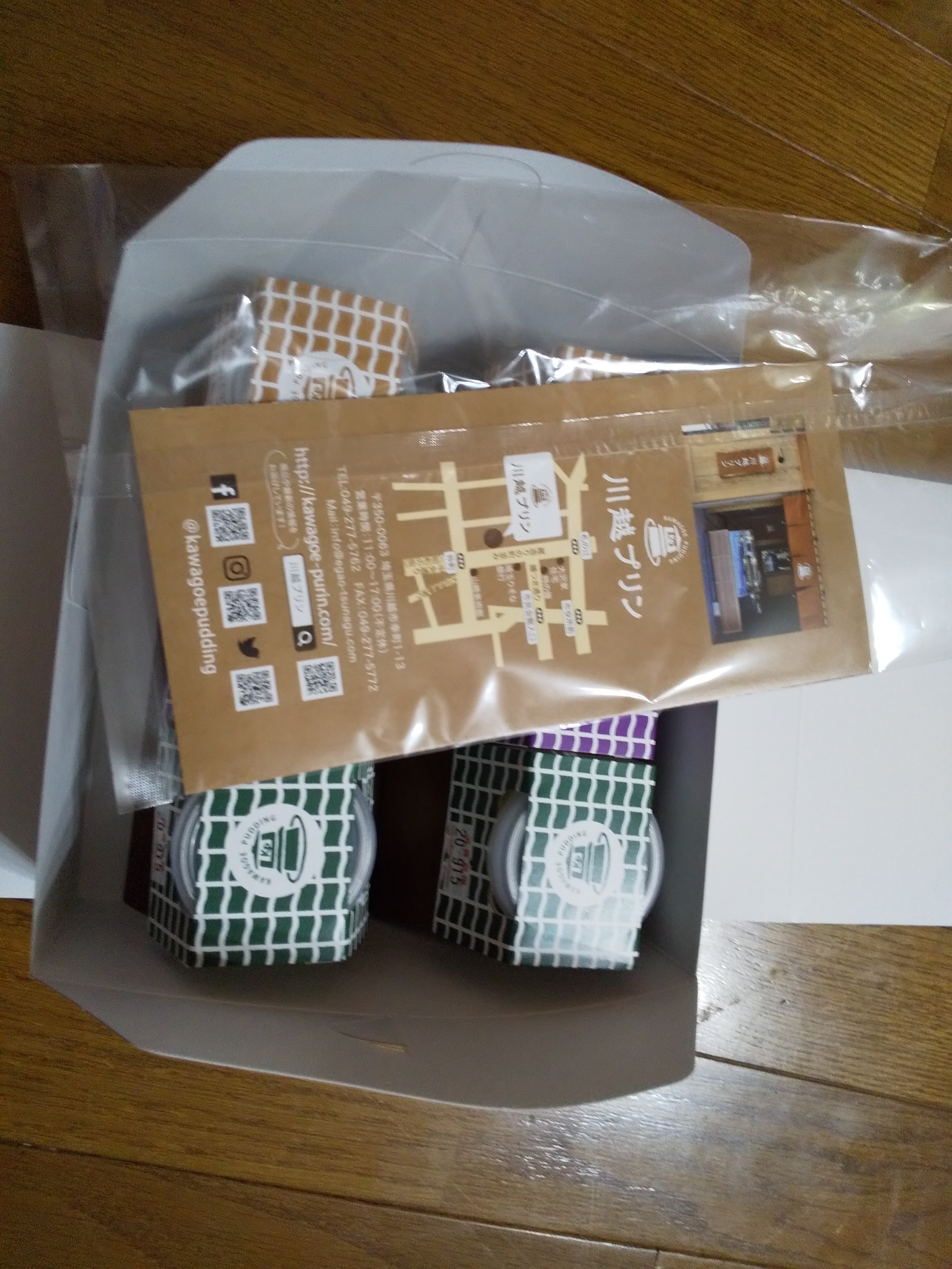 開けると白いケーキ用箱にプリンが6個入っています。