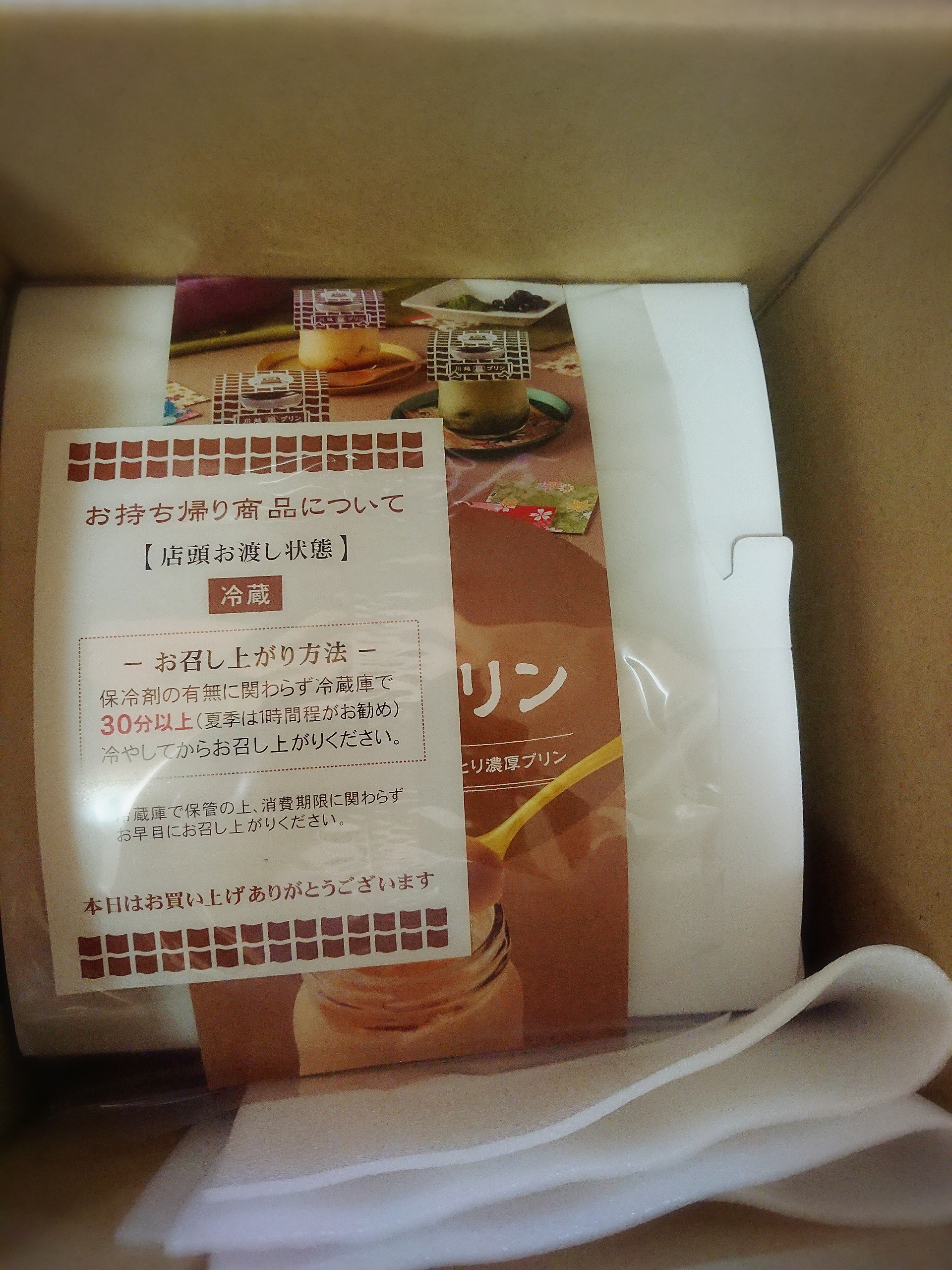 ダンボールの上部に「ドライバーの方へ。とてもやわらかいプリンが入っております。こちらの面を上にしてお願いします。」と書かれていましたので、ドライバーの方は優しく配達してくれました。