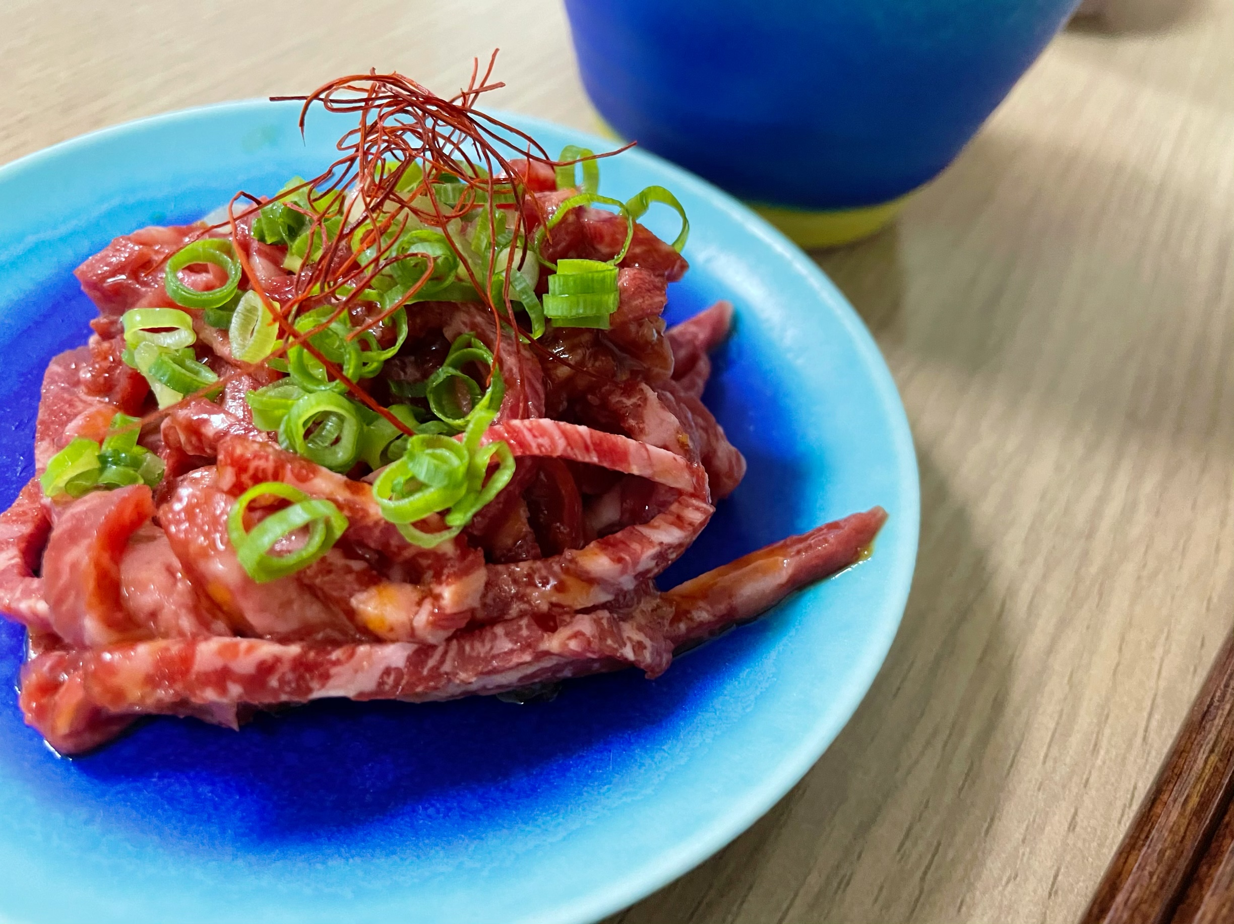 せっかくのユッケですので、焼肉も用意したのですが、完全に主役はユッケでした。熱々の焼肉と米の合間に食べる、ひんやりしたユッケ。幸せでした。