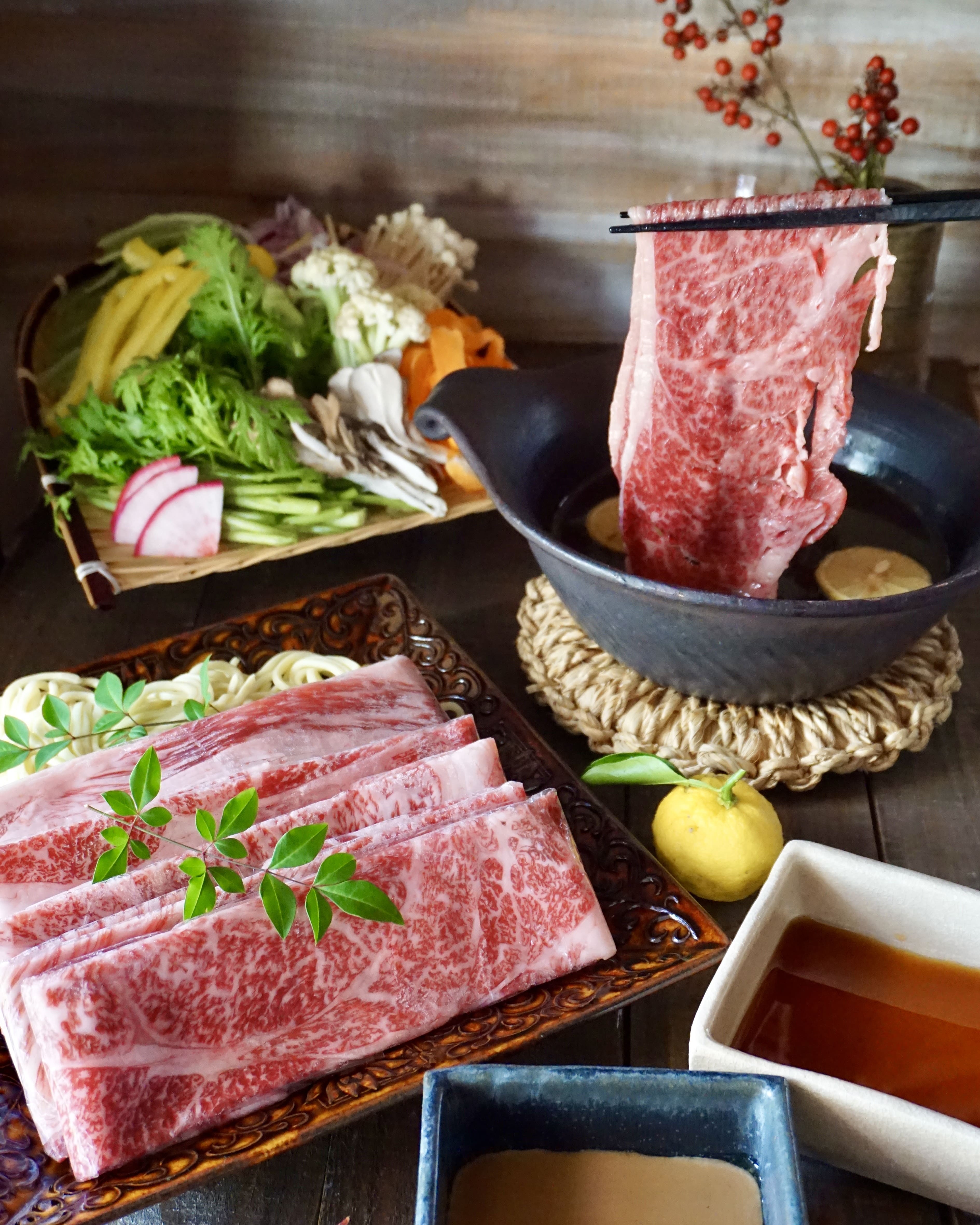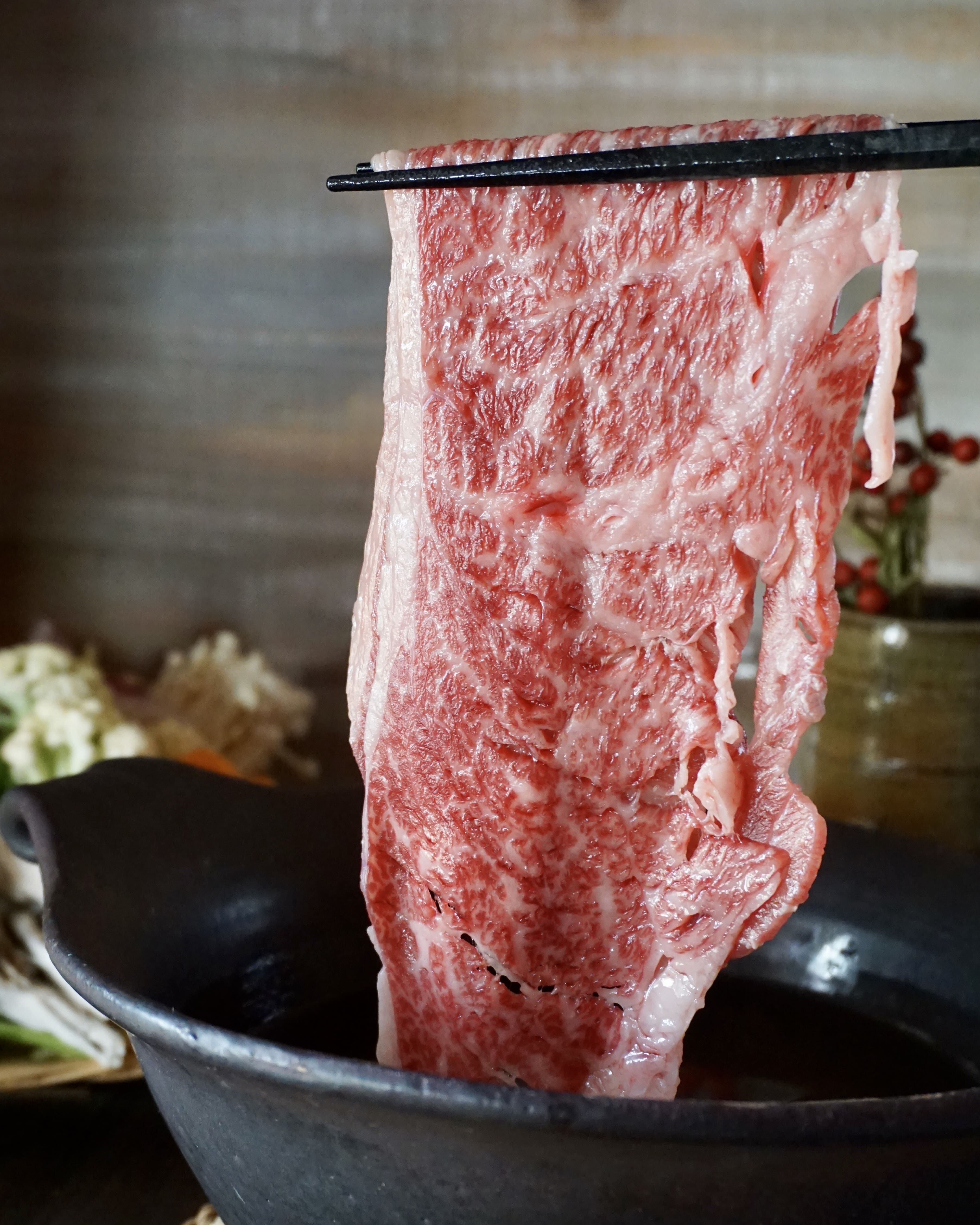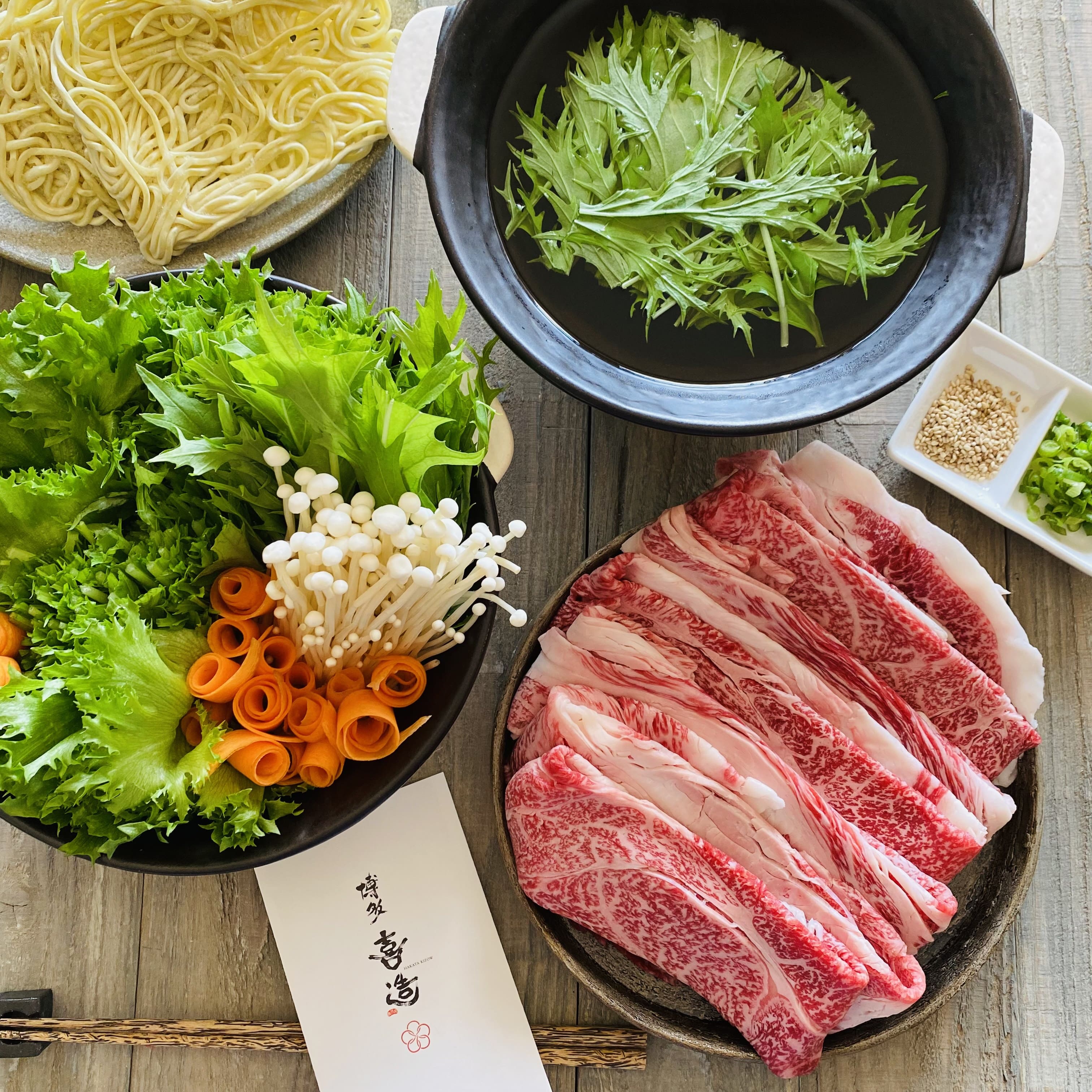 芳醇な旨味が特徴の佐賀県産伊万里牛。見て下さい‼️もう見せびらかしたい🤣私の顔よりデカイのではないか?大きな絶妙なさしが入ったお肉😍厚めに切ってあるのでボリューム満点、でもお口の中で旨みと共にトロけます。また、このお鍋の出汁、ポン酢だれ、ごまだれが絶品なんです。