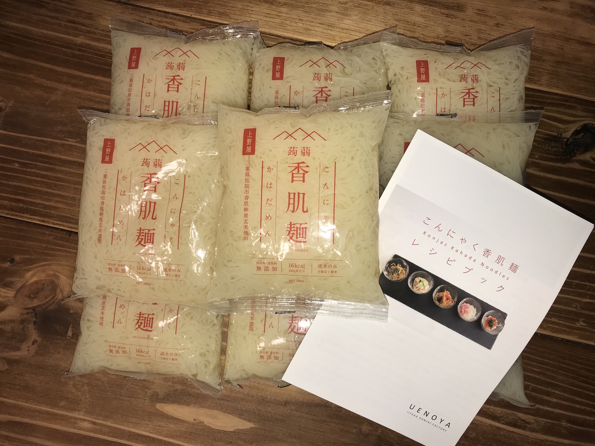 国産のこんにゃくに、三重県松阪市香肌峡産の玄米粉を練りこんだ「こんにゃく麺」です。そうめんような細麺でありながらしっかりとした歯ごたえ。100gあたり16calのヘルシーさも魅力です。オリジナルレシピ付きで、温めても冷やしても炒めても美味しく食べられます。常温で長期保存ができ、下茹で不要。流水後、そのまま食卓に出すことができるので、忙しい人にも重宝する一品です。