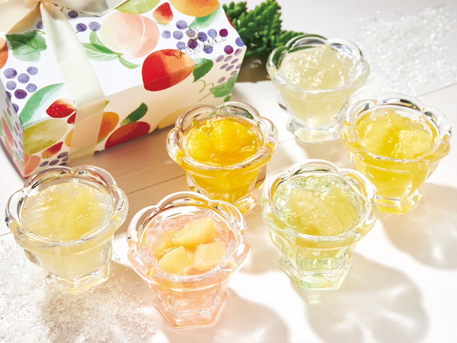 国産フルーツを贅沢に使用したのど越しが爽やかなジュレは、大切な方への特別なギフトとしてご好評を頂いております。