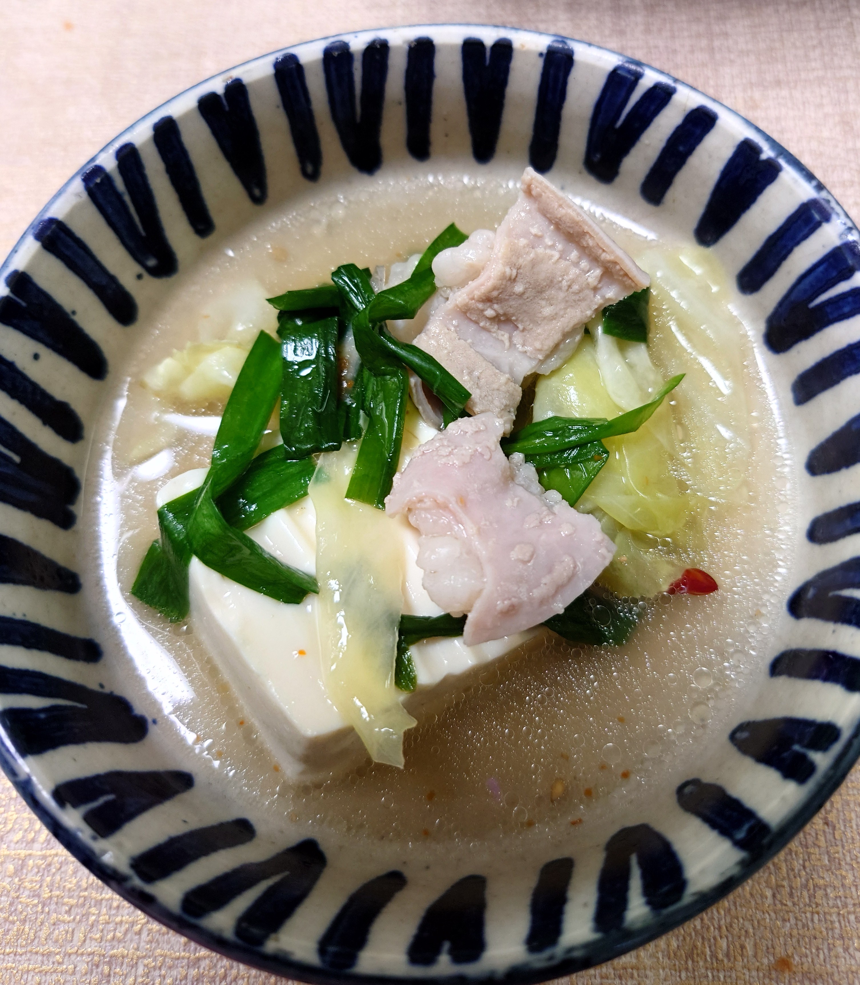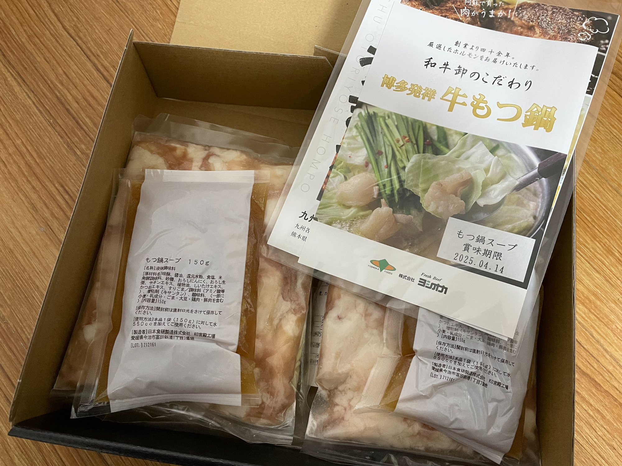 説明書通りに前日解凍して、モツを軽く下茹でして野菜をたっぷり入れたもつ鍋にしました。もつは臭みが全然なくプリプリでとても美味しかったです!スープもあっさりしているのにモツの脂が溶け込んで身体に染みる〜!寒い冬に食べたくなる味!締めのちゃんぽん麺もスープをしっかり吸ってするすると食べてしましました。白米と卵を入れて雑炊にしても美味しいと書いてあったので今度は雑炊で食べてみたいなぁ!