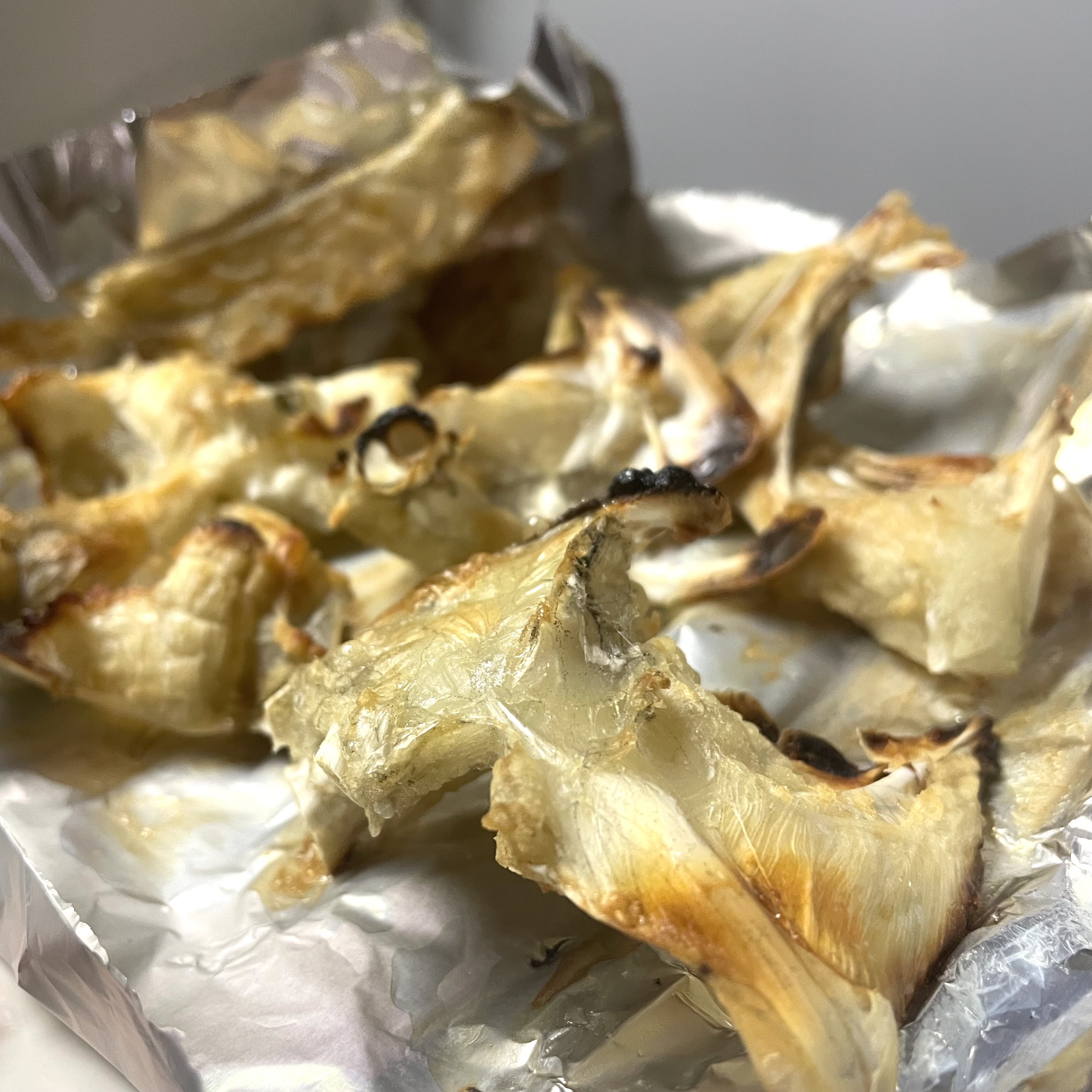焼きふぐは、グリルで焼きました。食欲そそる香ばしい良い香りでしたが、可食部がもっと欲しいなと感じました。食べるのに最も苦労しました。