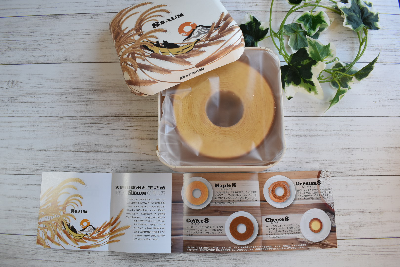 エイトバウムの代表的なバウムクーヘンになります。添加物を極力入れない製法で創り上げており、メイプルの香りが食べた後に感じられる、しっとりふんわりしたバウムクーヘンです。