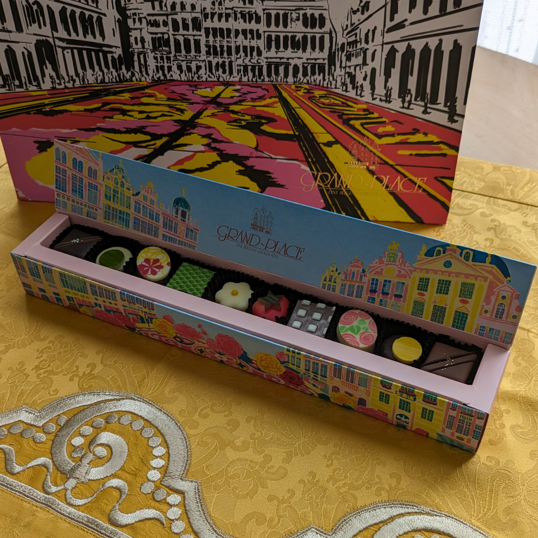 毎年完売の人気商品が今年も登場です!10種類のフレーバーを揃えた、キュートなフォルムのミニショコラ。いろんな味を少しずつ楽しめる、欲張りなショコラアソートです。パッケージには花の絨毯で彩られた美しいグランプラス広場を思い浮かべながら夢のあるイラストを描きました。