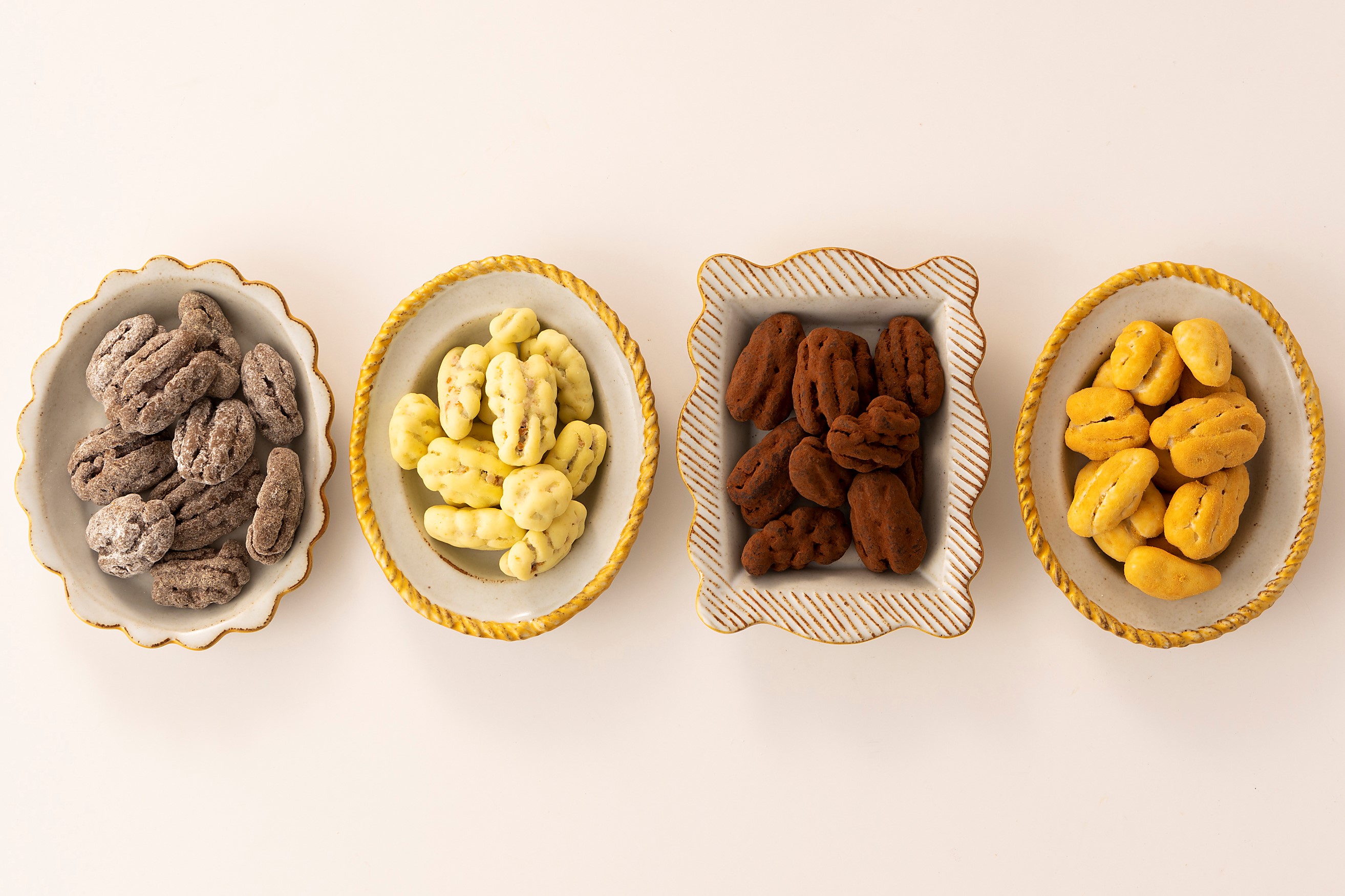 【販売終了】クルミの一種の「ペカンナッツ(ピーカンナッツ)」を、上質なチョコレートとパウダーで包んだ、バレンタイン限定アソートセットです。ローストしたペカンナッツをミルクチョコレートでコーティングし、ココアをまぶした「ココア」。甘酸っぱいストロベリーチップを練り込んだホワイトチョコレートをコーティングした限定フレーバーの「ベリーベリー」など4種。食べ切りサイズの小袋パック10袋が、限定ボックスに入って届くので、そのままギフトとして贈るだけでなく個別に配るのもおすすめです。