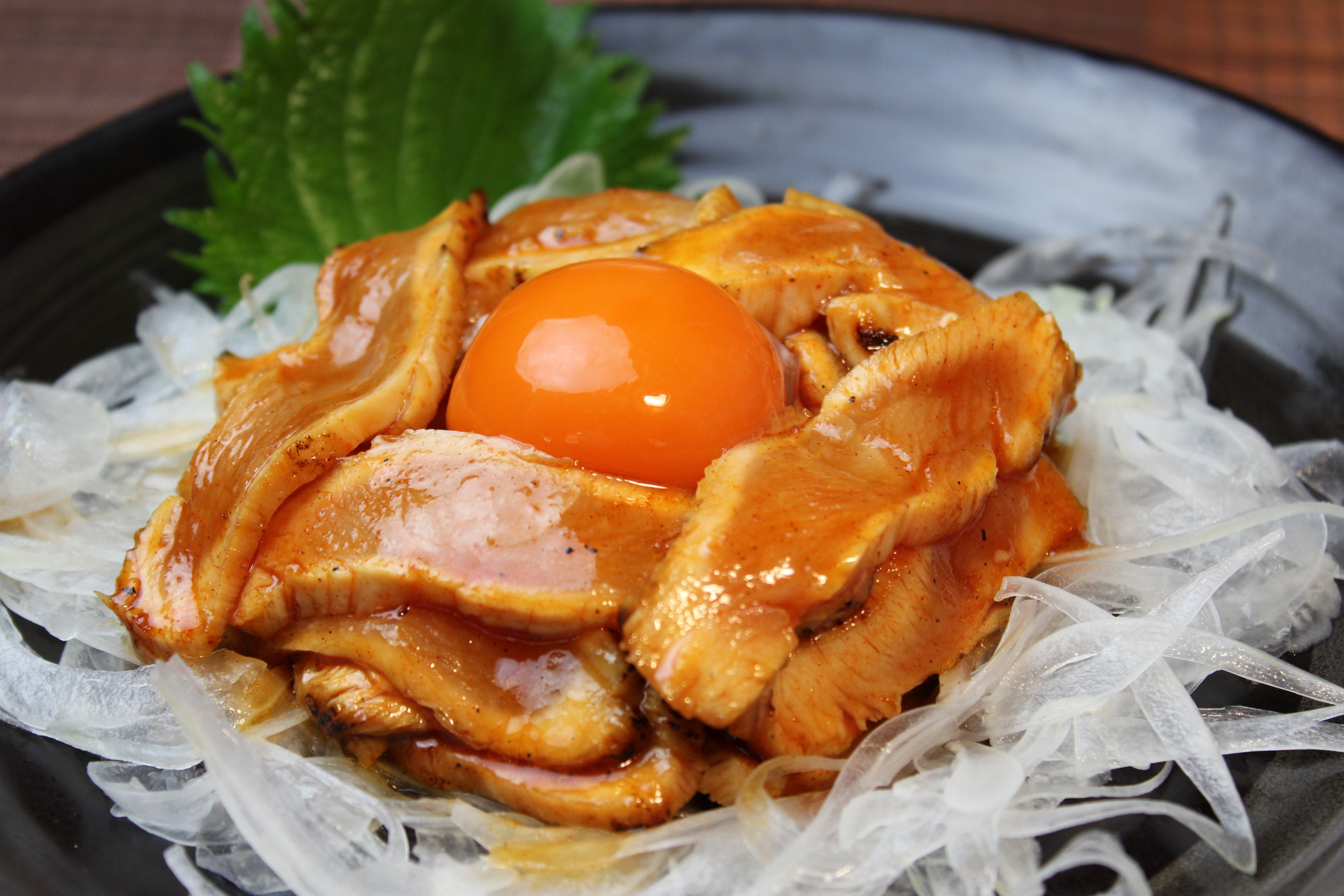 新鮮な水郷どりの胸肉を強火で炙り、外は香ばしく、中はしっとりとピンク色に仕上げました。