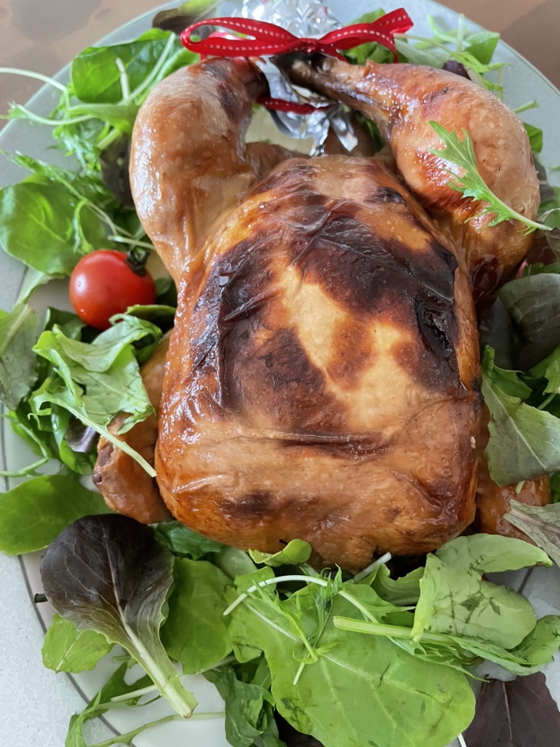 『お友達夫婦とのおうちパーティーでメインとしてクリスマスチキンをいただきました。