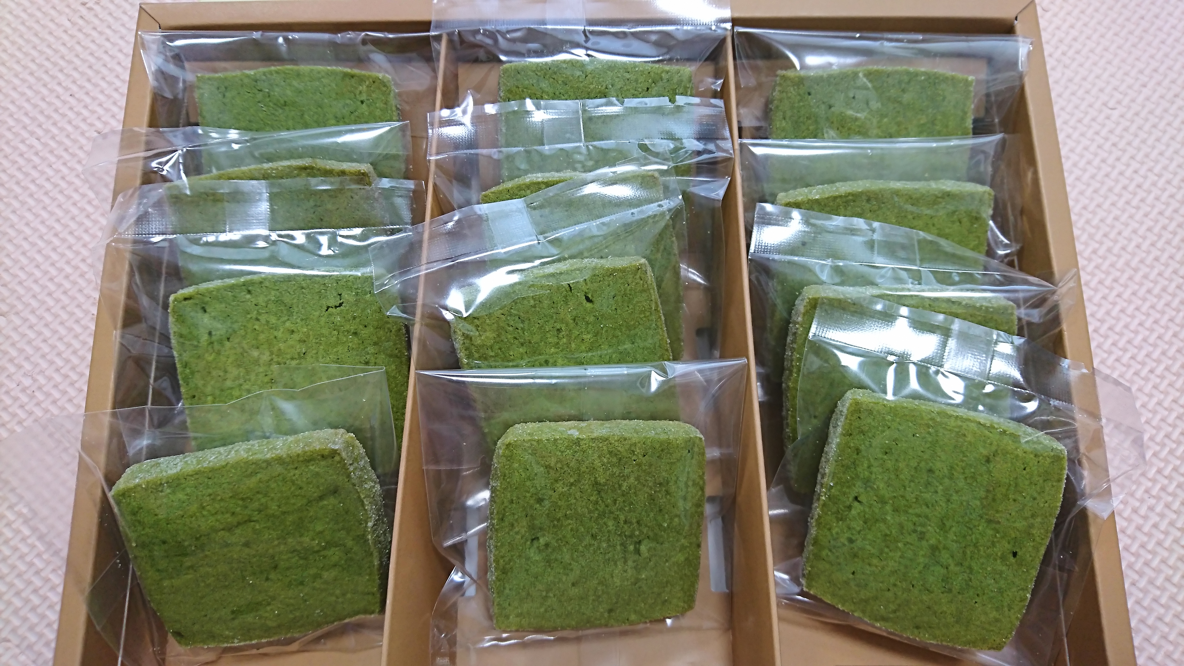 箱を開けると緑色の綺麗なクッキーが綺麗に並べられていて、見ているだけでテンションが上がってしまいます。