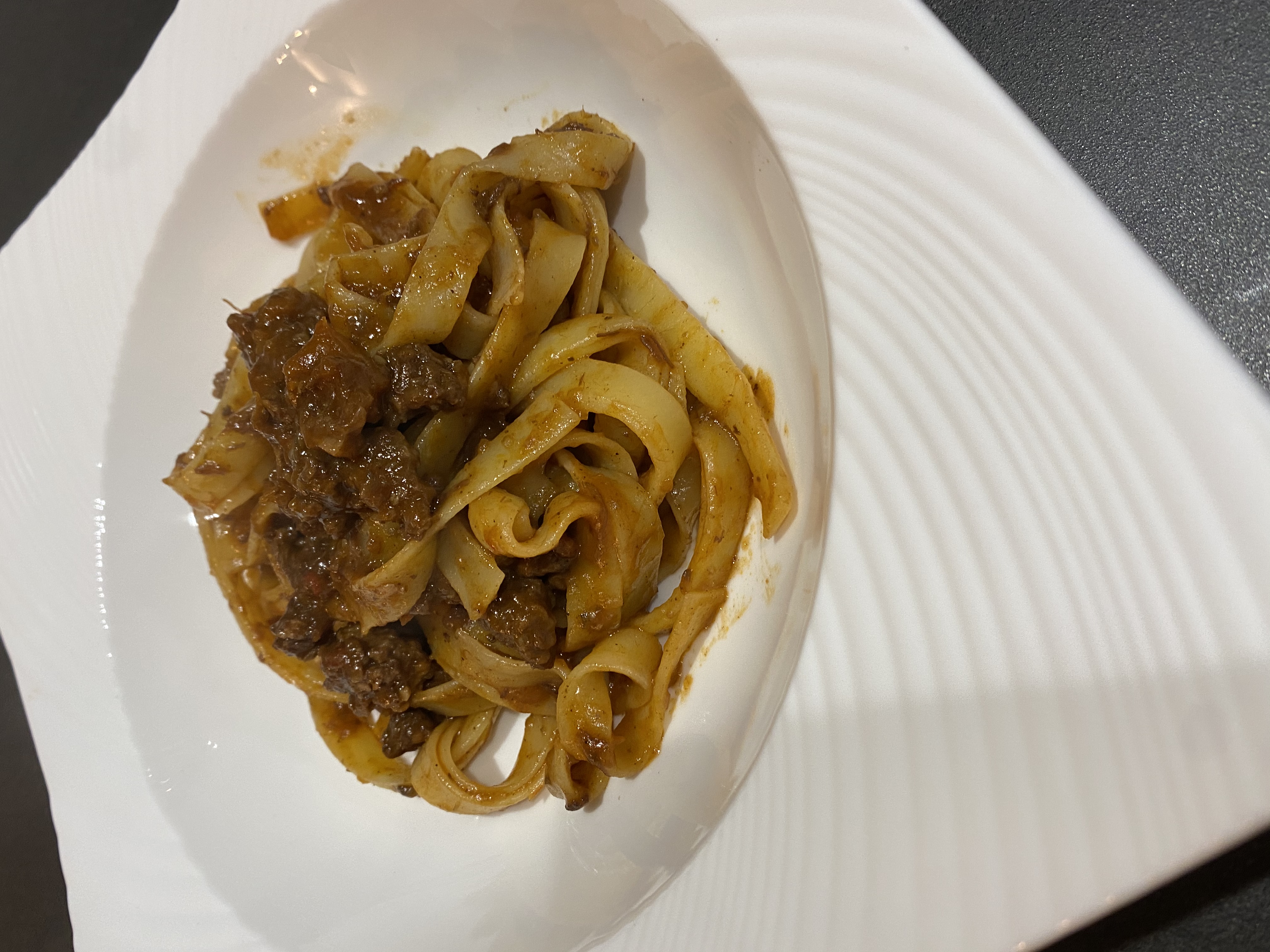 ボロネーゼに合わせるパスタは、おすすめの生フェットチーネ。麺の面積が広く、濃厚なソースとよく絡み合い、相性抜群!格別な美味しさのボロネーゼが出来上がります。