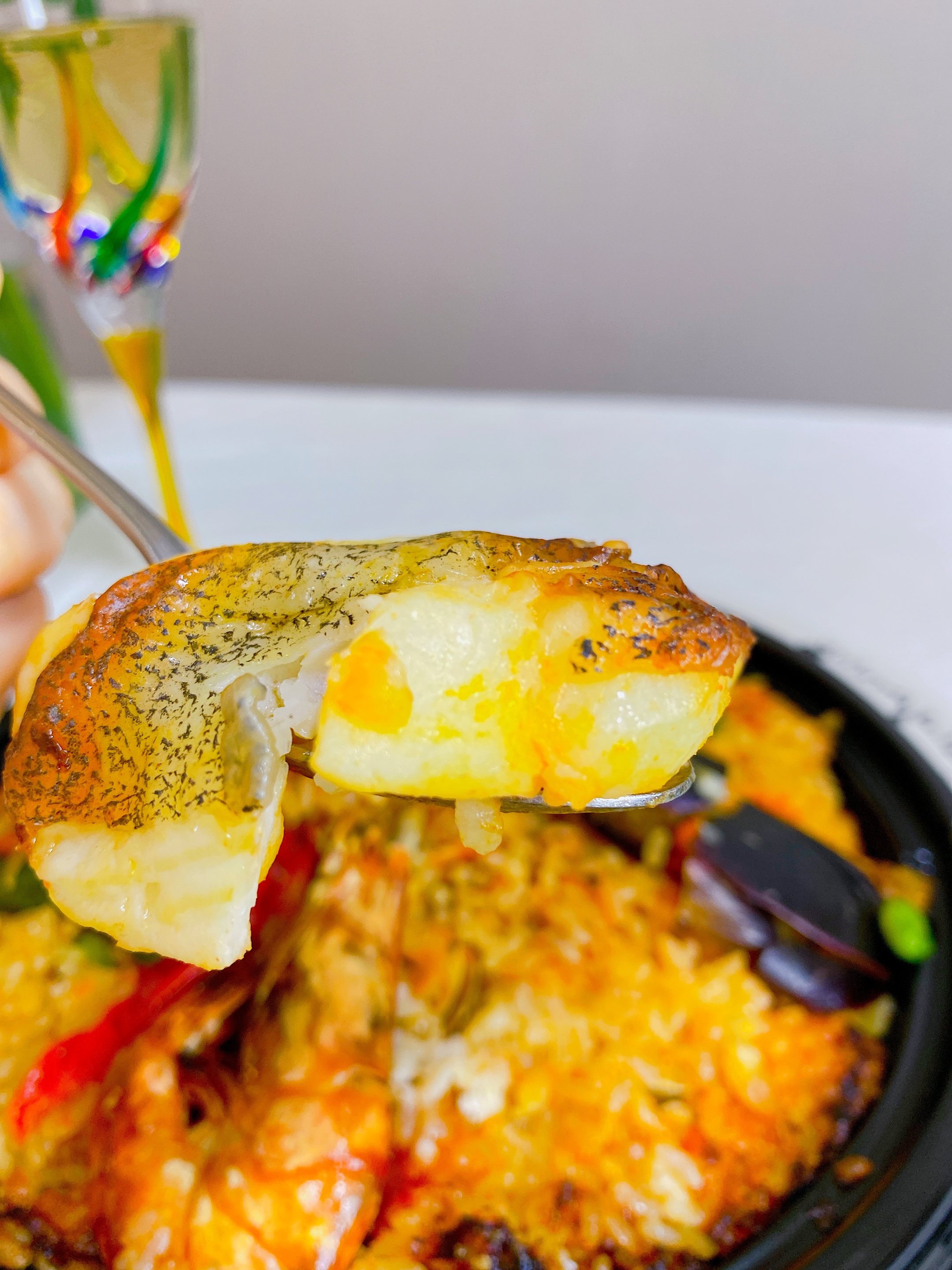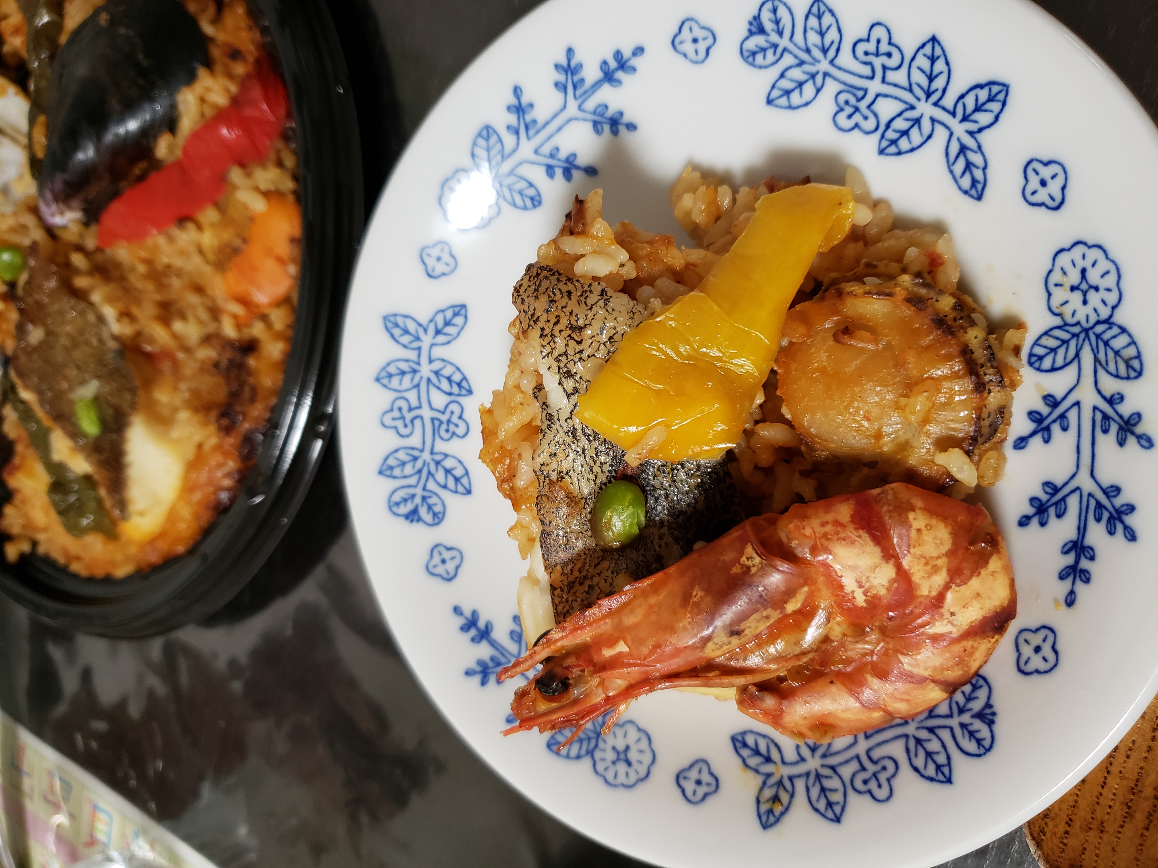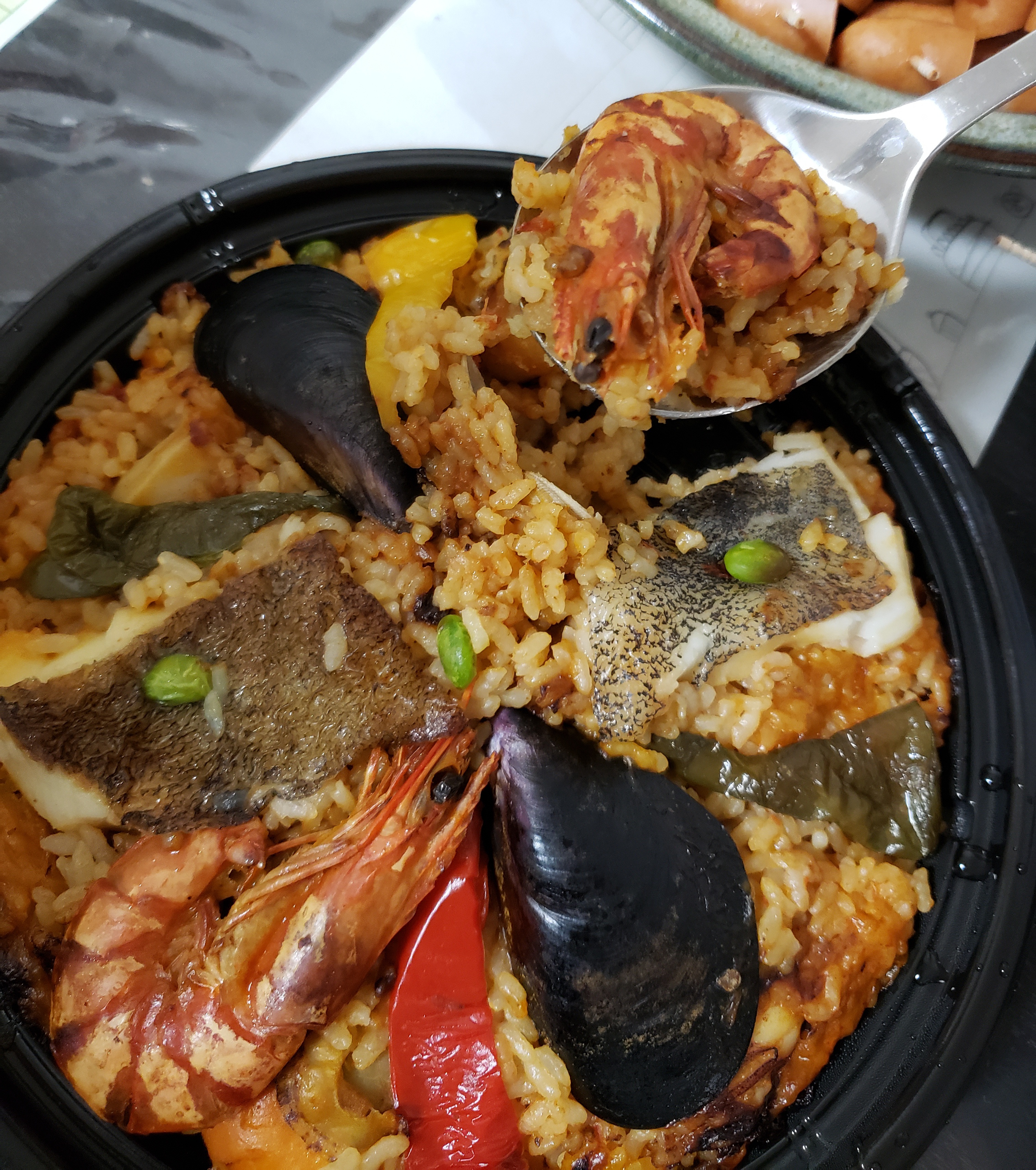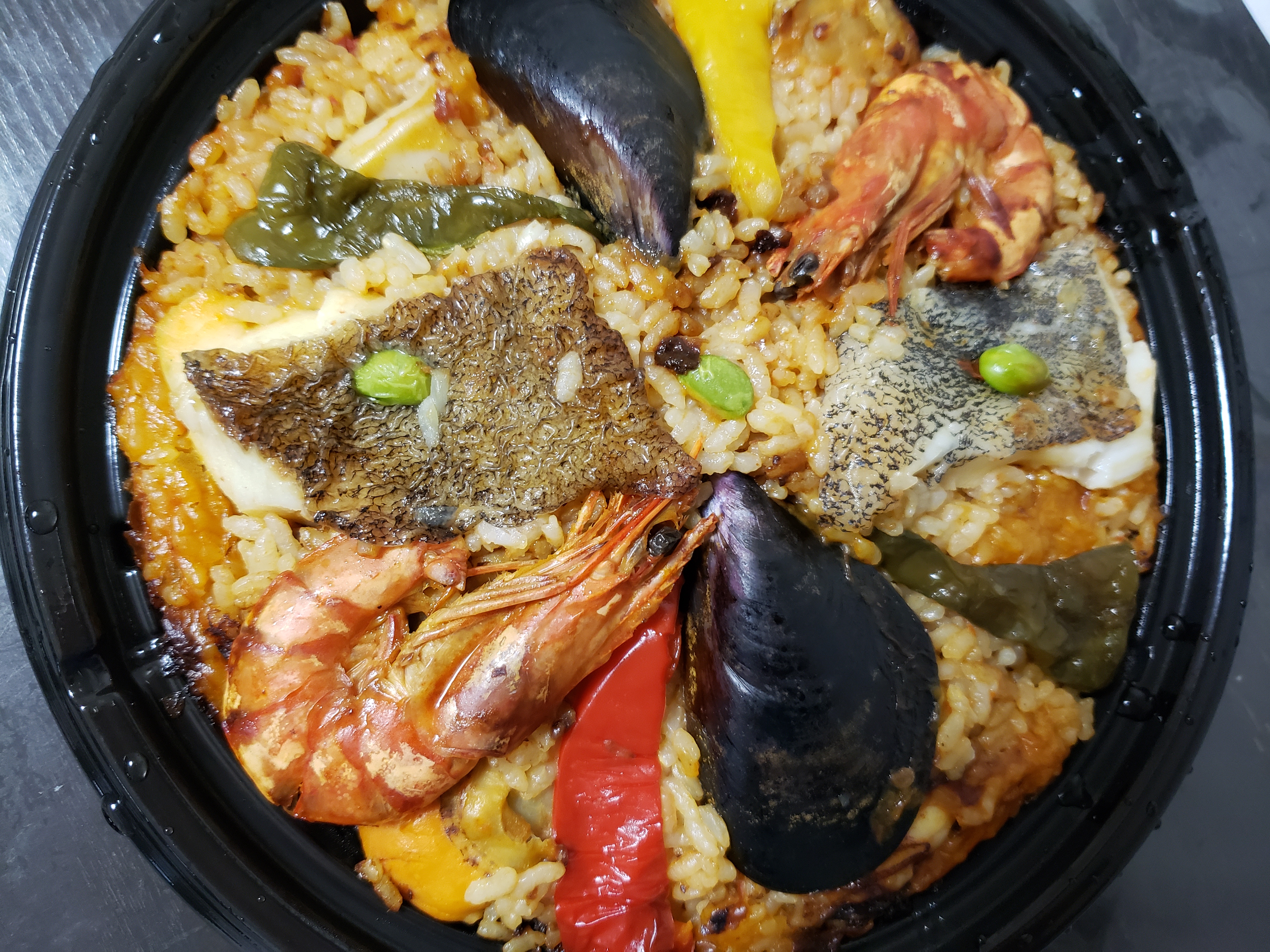 スペイン料理で人気の「魚介のパエリア」です。パエリアとは、パエジェーラと呼ばれる専用のパエリア鍋(両側に取っ手のある平底の浅くて丸いフライパン)で調理する米料理。海老、ホタテ、あさり、ムール貝、カレイを米とスープで炊き込みました。多種の魚介類の旨味が米に沁み込みんだ華やかな商品です。専用のパエリア鍋で作ったパエリアを鍋から移し、急速冷凍しました。解凍し温めるだけで、スペイン料理店の味が自宅で楽しめます。