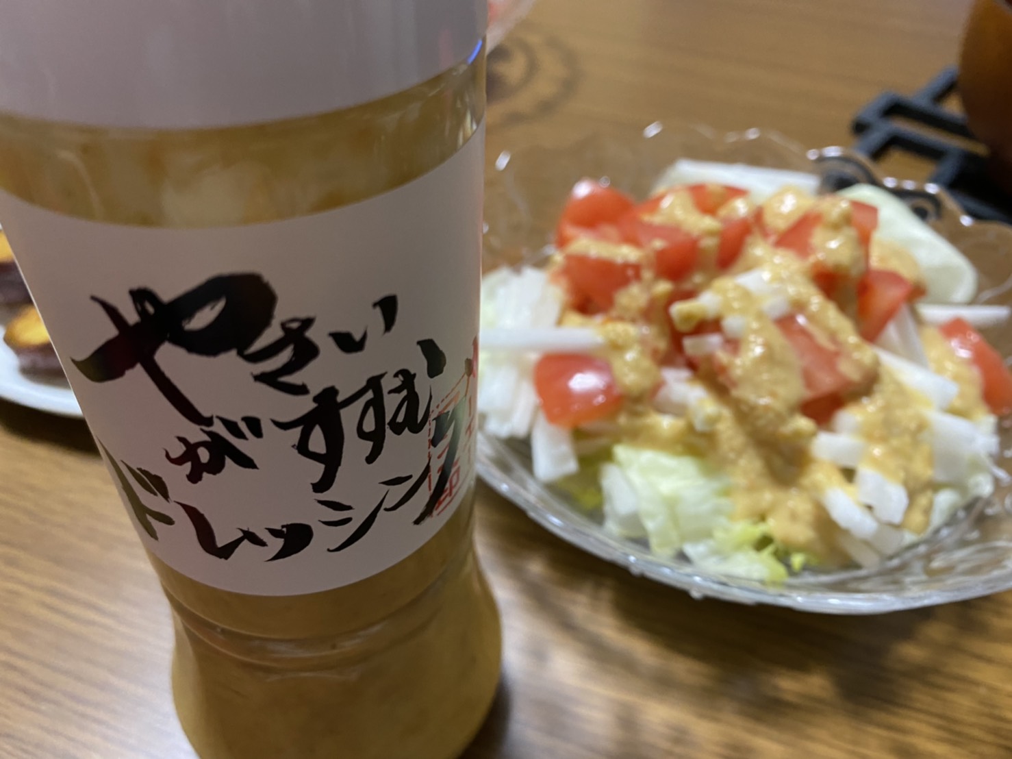 また、この日は豚肉を炒めたのでキャベツと豚肉とドレッシングを一緒に食べてみたら、もっと美味しくなっていて家族も驚いていました。たくさん刻んだキャベツもおかわりであっという間になくなってしまったくらいです。