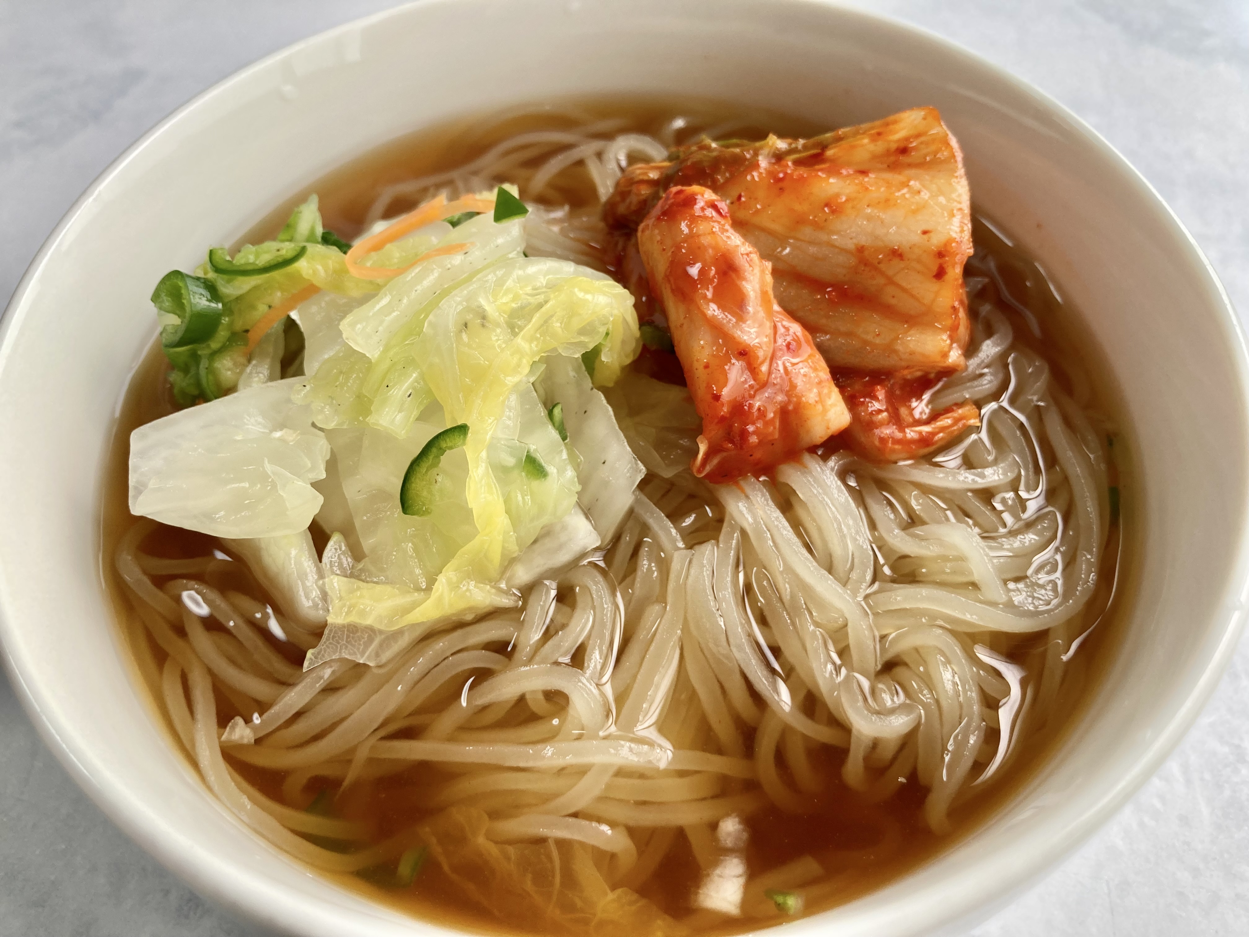 冷麺の為だけに開発された、さっぱり味のスープキムチです。