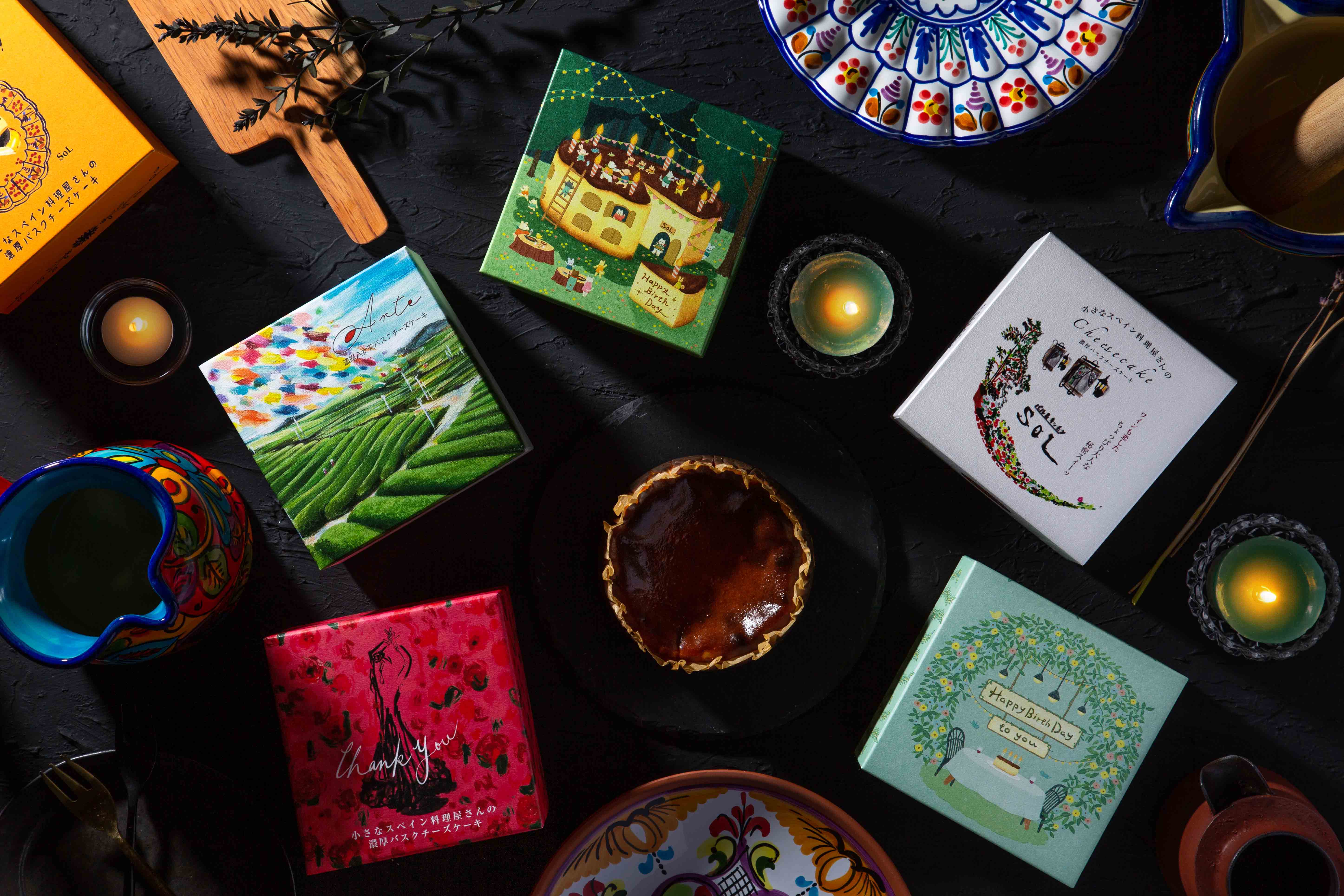 Happy Birthday・おめでとう・ありがとう・クリスマスなど、シーンに合わせて選べる箱もご用意しています。