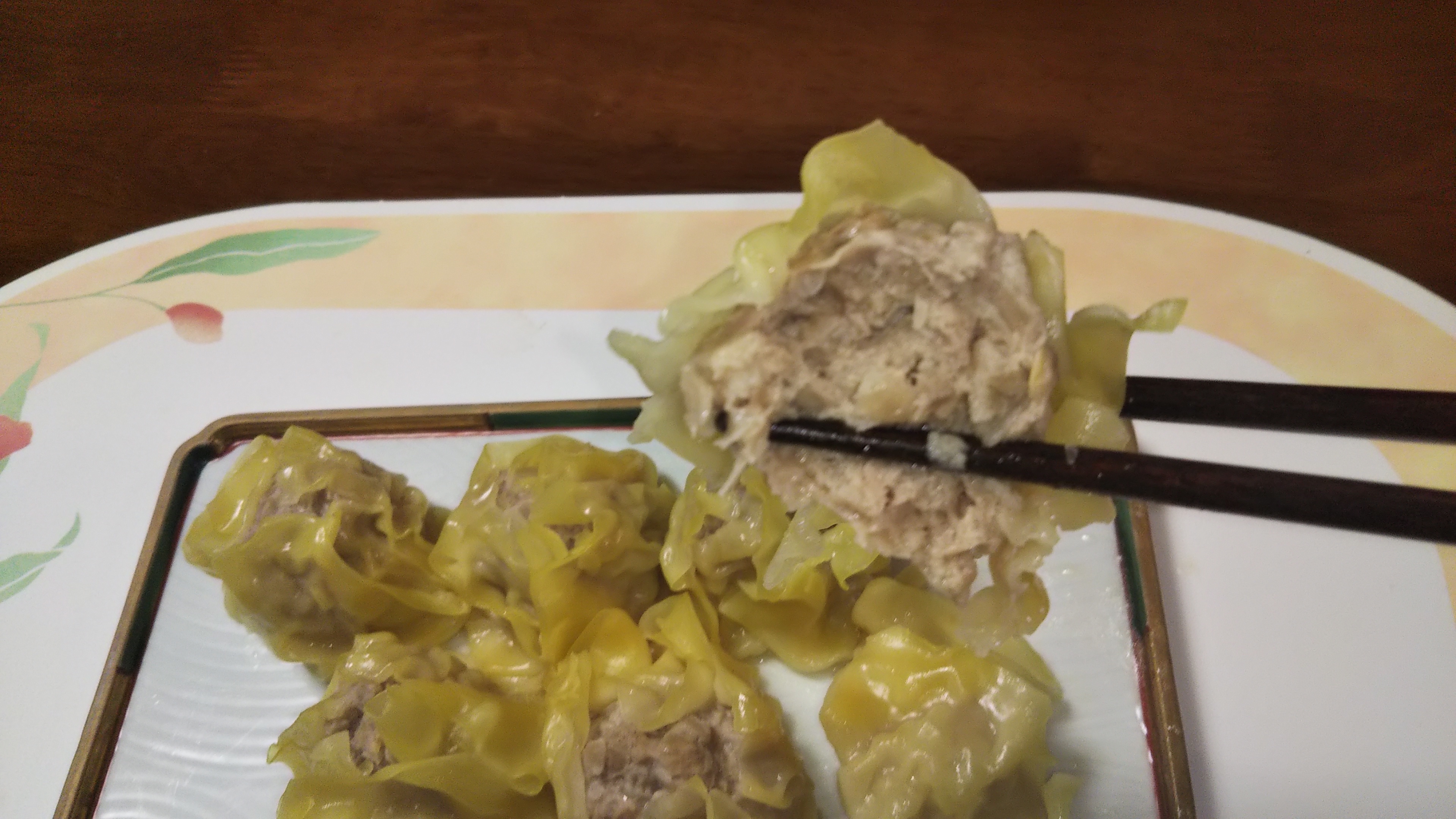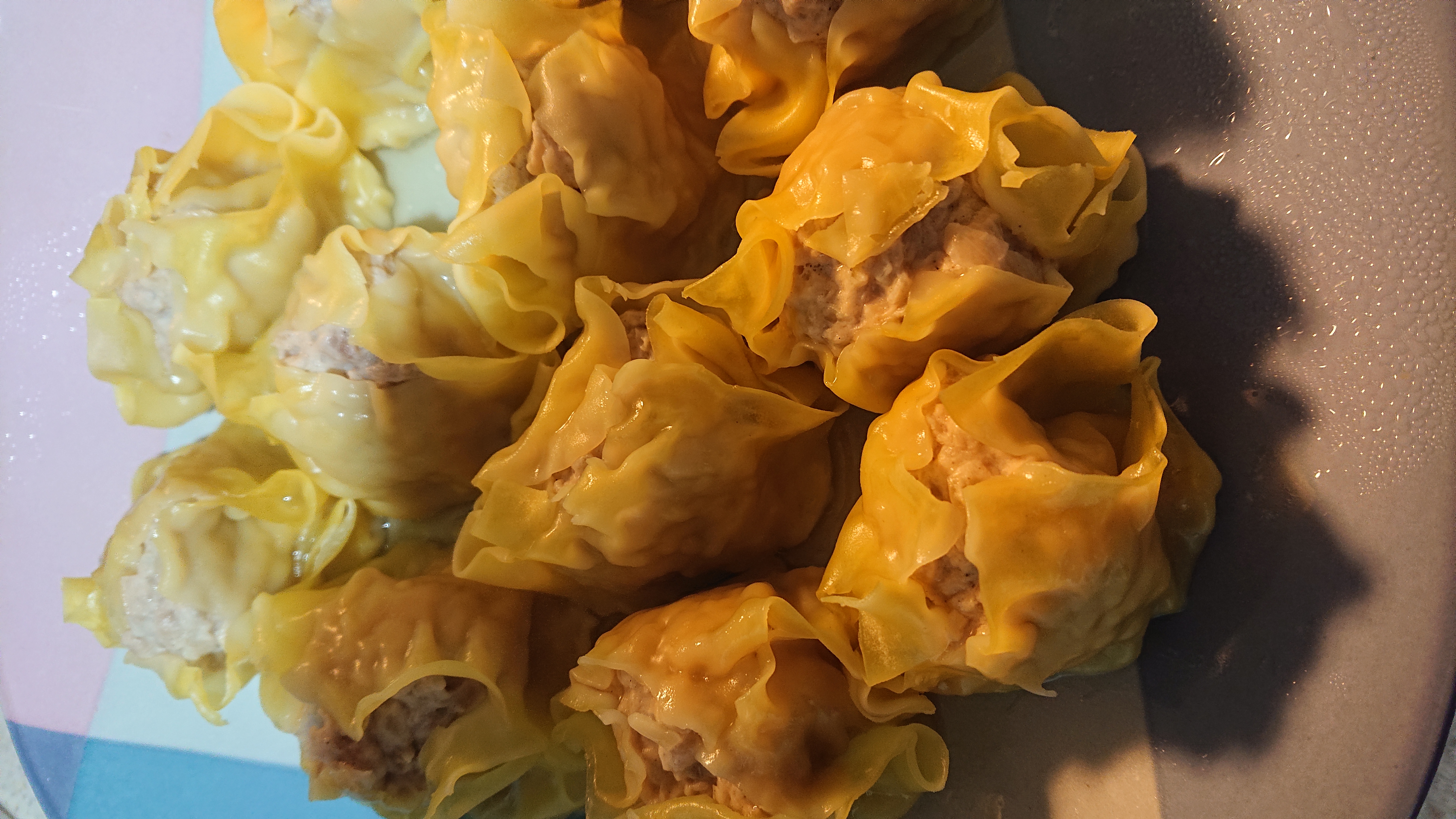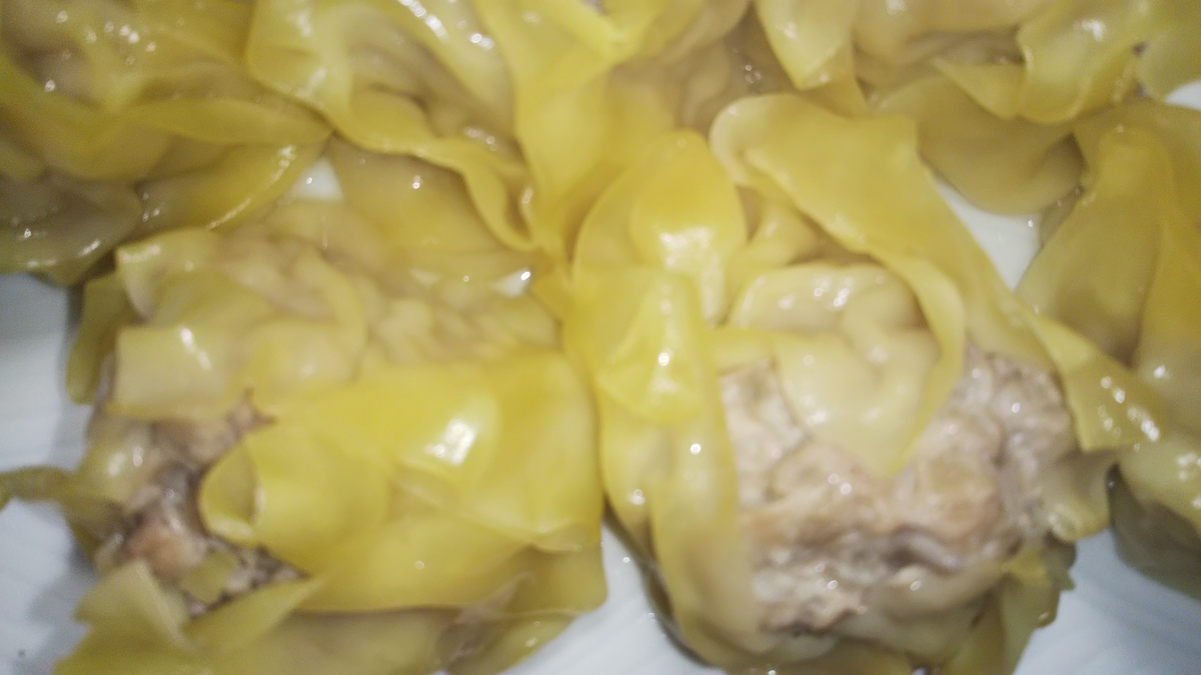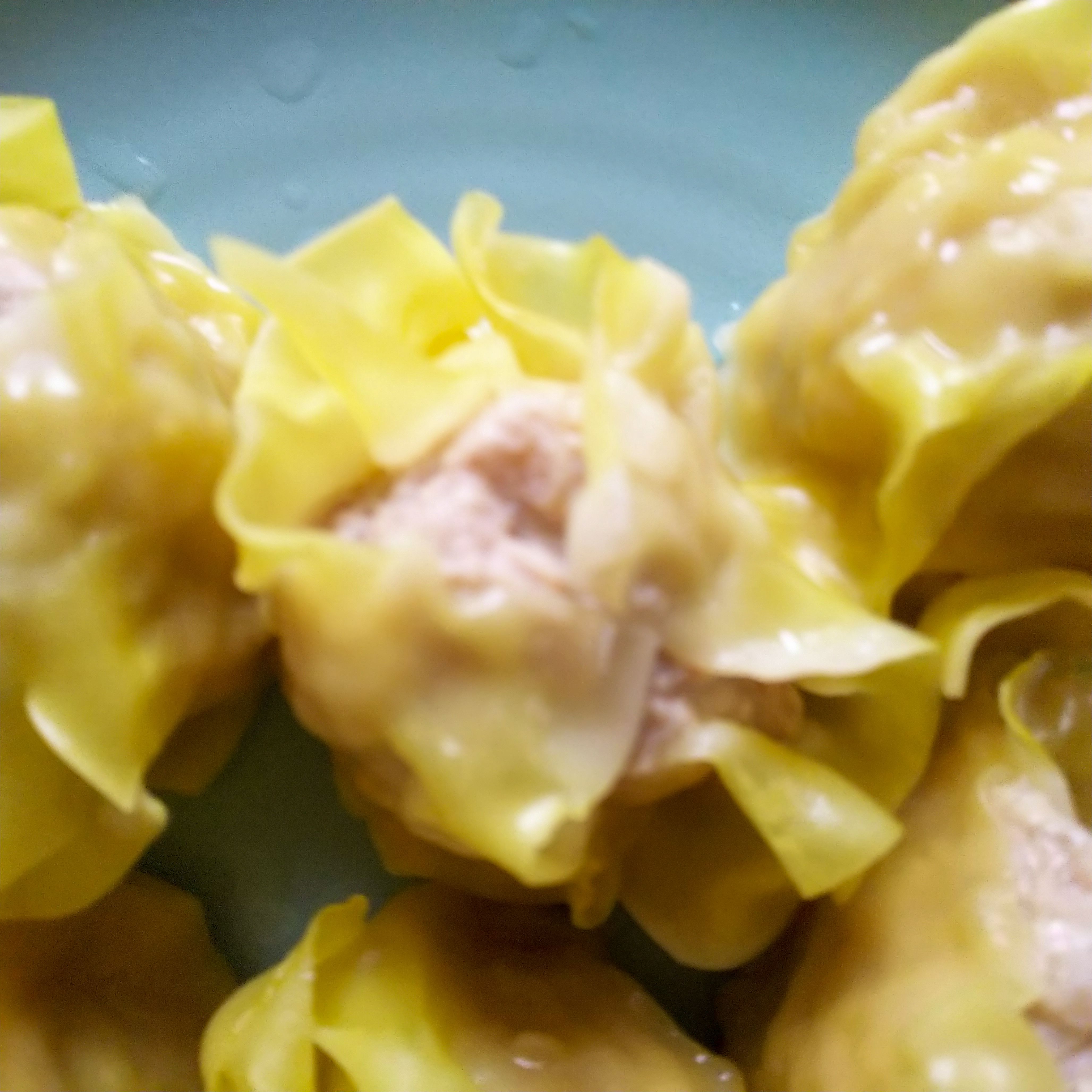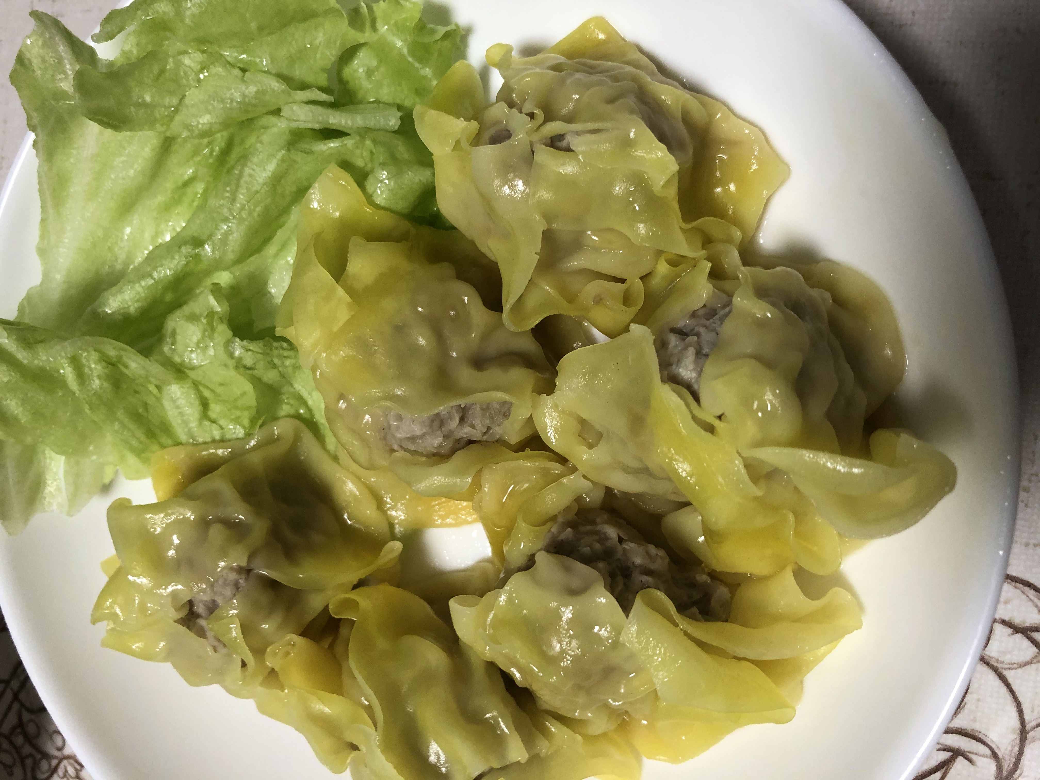 札幌ラーメンをほんのり感じられる黄色い生地がもっちりとしており、豚肉と鶏肉とのお肉がとても風味豊にしっかりと中に入っています。