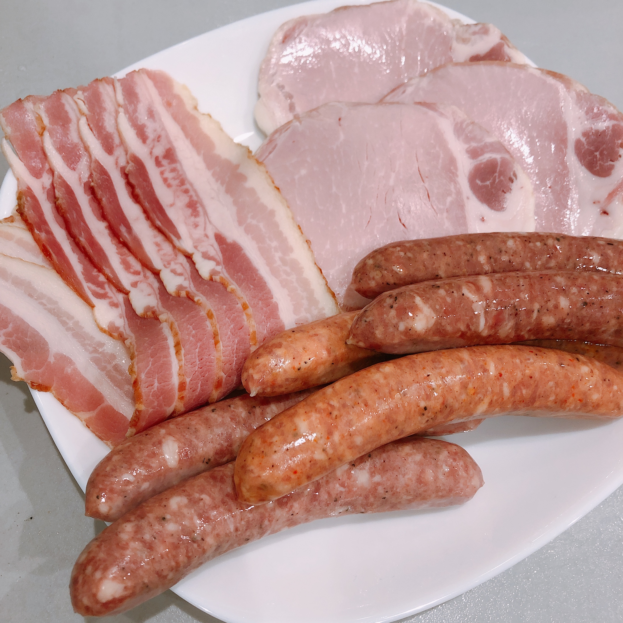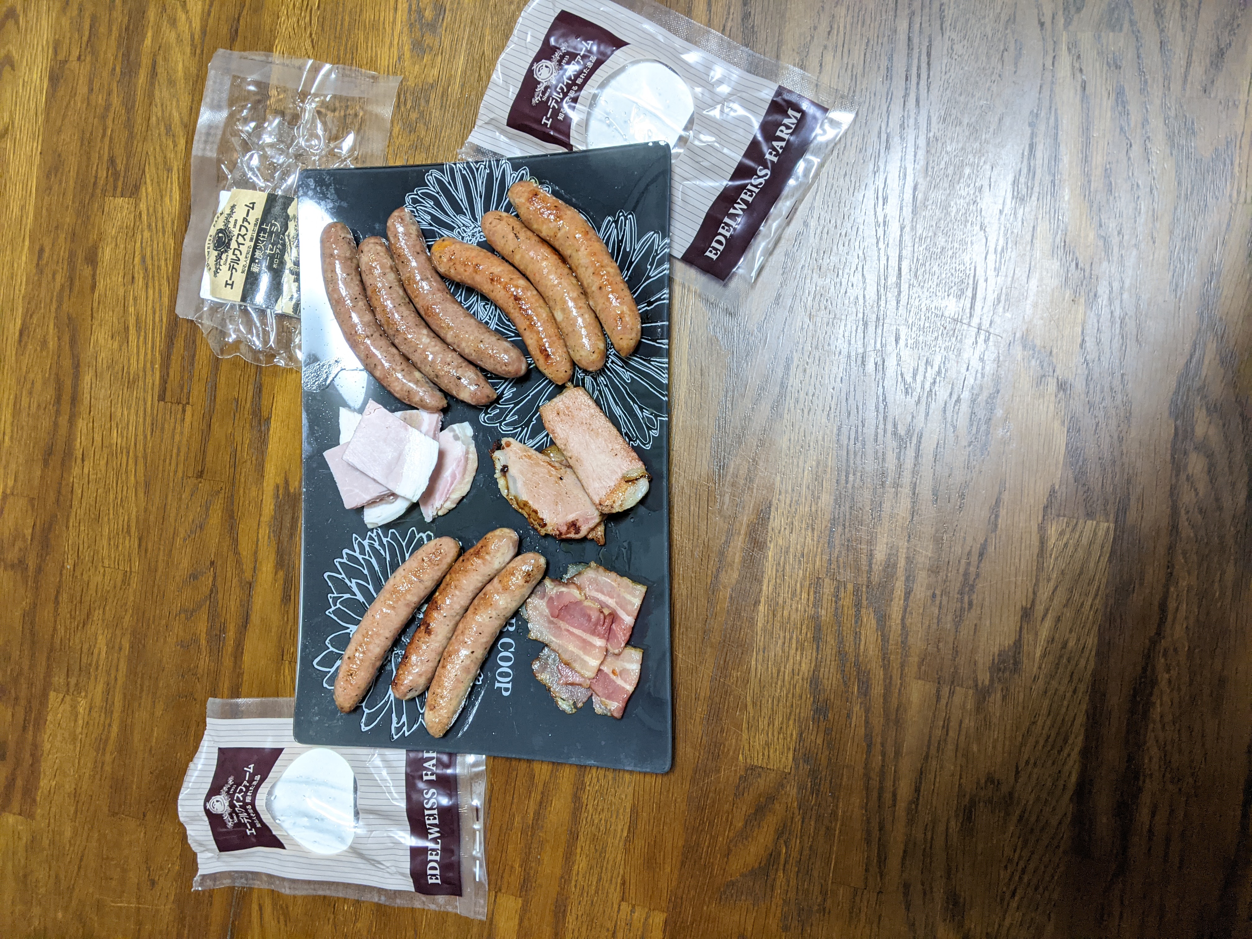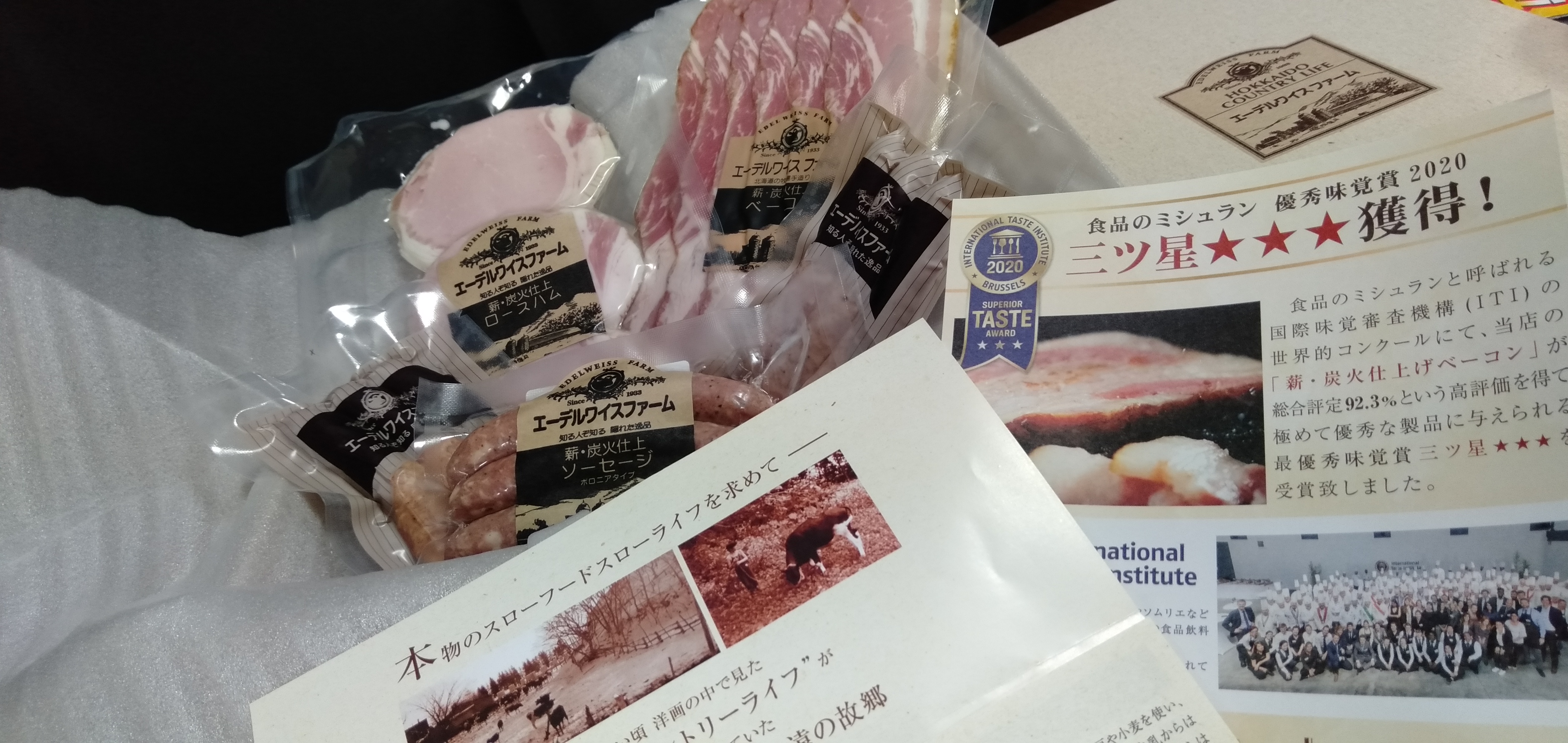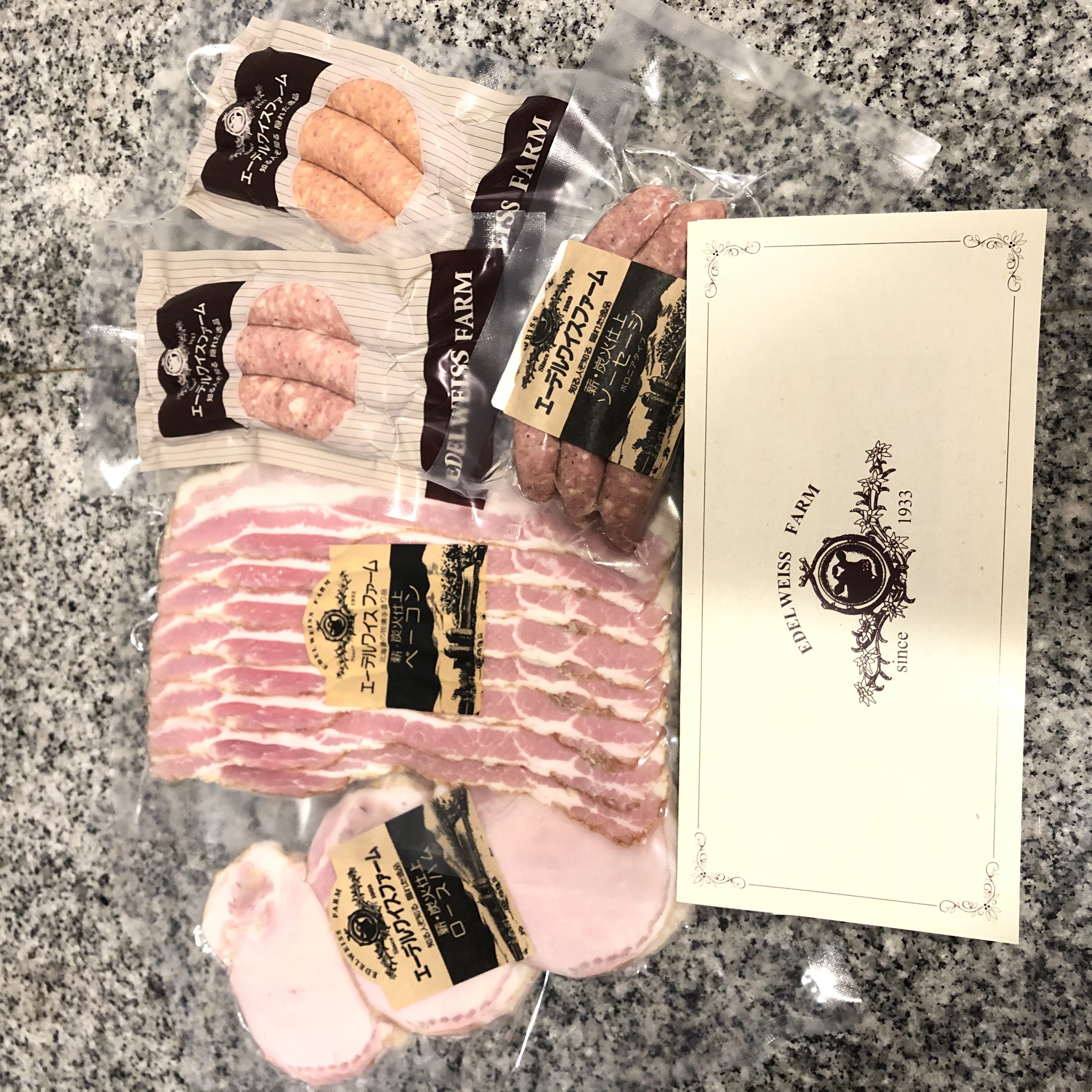 北海道の牧場で約90年間、自宅用に作り続けていた「ベーコン、ハム、ソーセージ」のセットです。家族の為の製品だったため、安全性を重視し、着色料、保存料、防腐剤などの添加物不使用で(必要最小限の亜硝酸塩を除く)、自然な風味や色合いが楽しめます。氷温4週間熟成することにより脂がとけだす「厚切りロースハム」、薪・炭火で仕上げた贅沢な燻煙の香りが広がる「ベーコンスライス」。ポークとビーフの粗挽きタイプの「ボロニアタイプソーセージ」、肉汁たっぷりのポークソーセージ「ビアブルスト」、程よい辛さが後引く味わいの「チリソーセージ」のソーセージ3種がセットになった豪華版。ボリューム満点のセットなので食べ比べが楽しめます。
