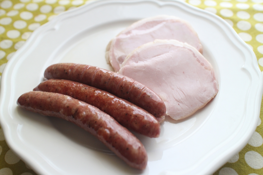 ハムは弱火~中火で軽くあたためてお召し上がりください。