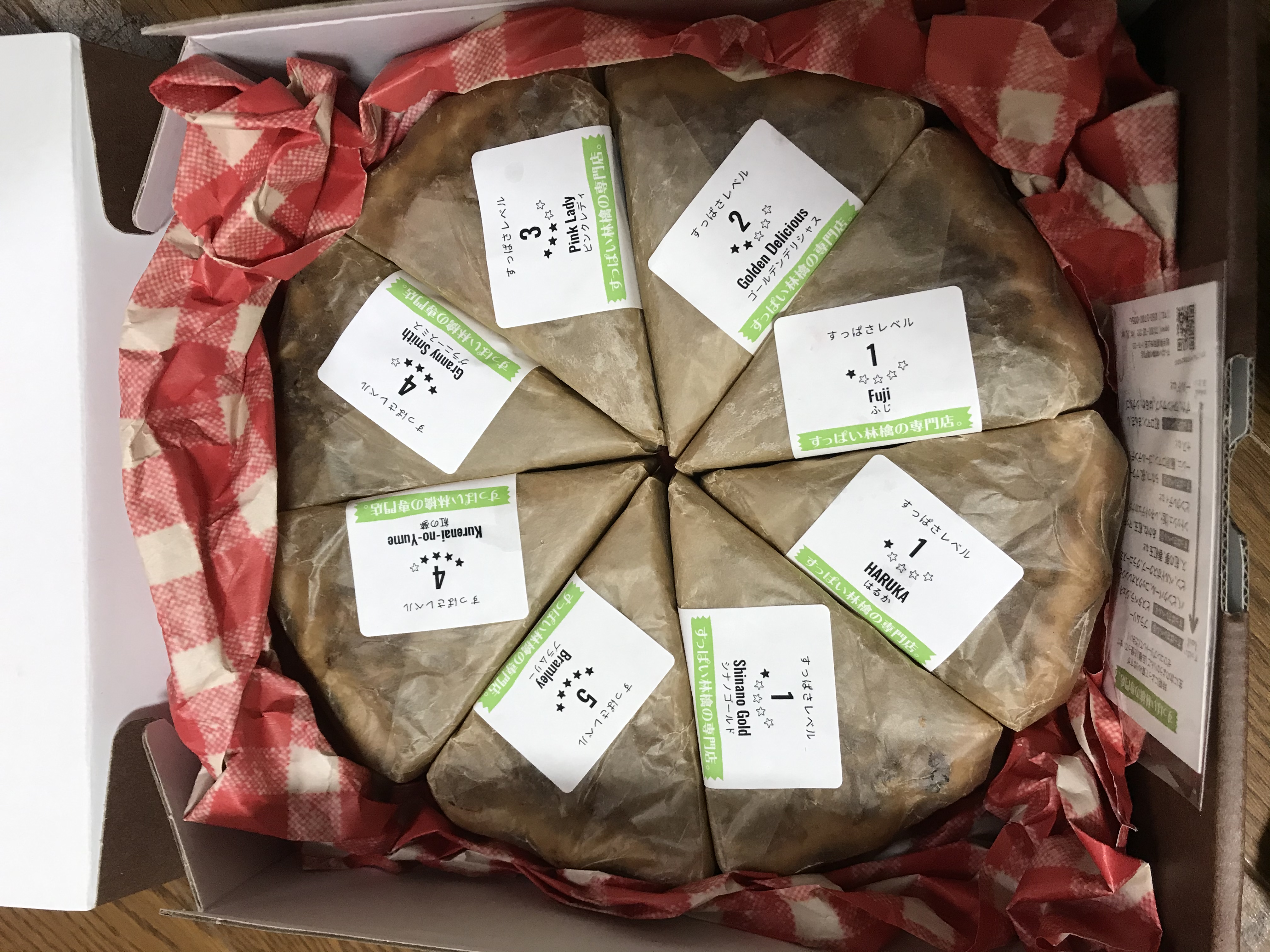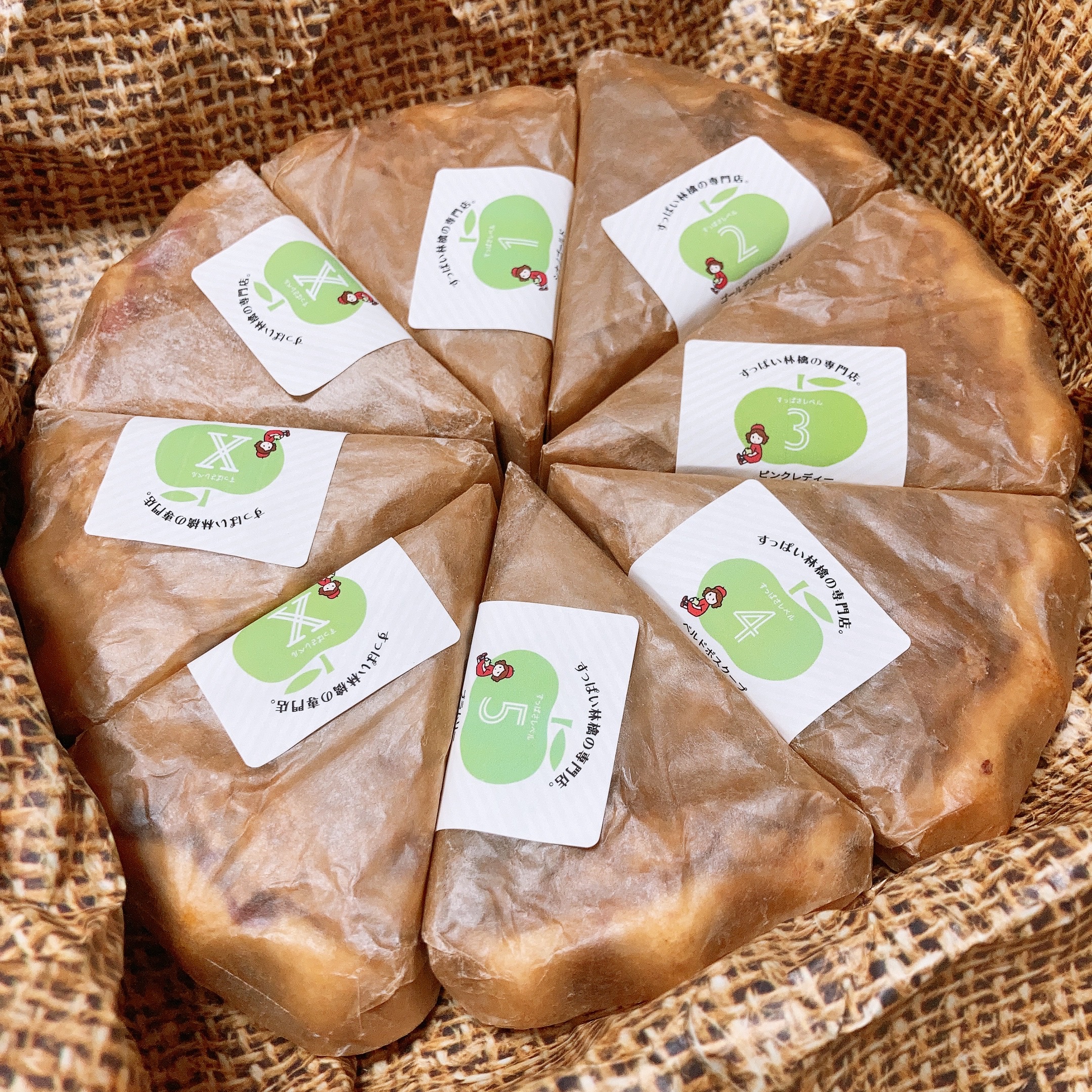 種類の違いはりんご(品種)の違いで、甘めから酸っぱめまで揃っているので、食べ比べが楽しいアップルパイです。