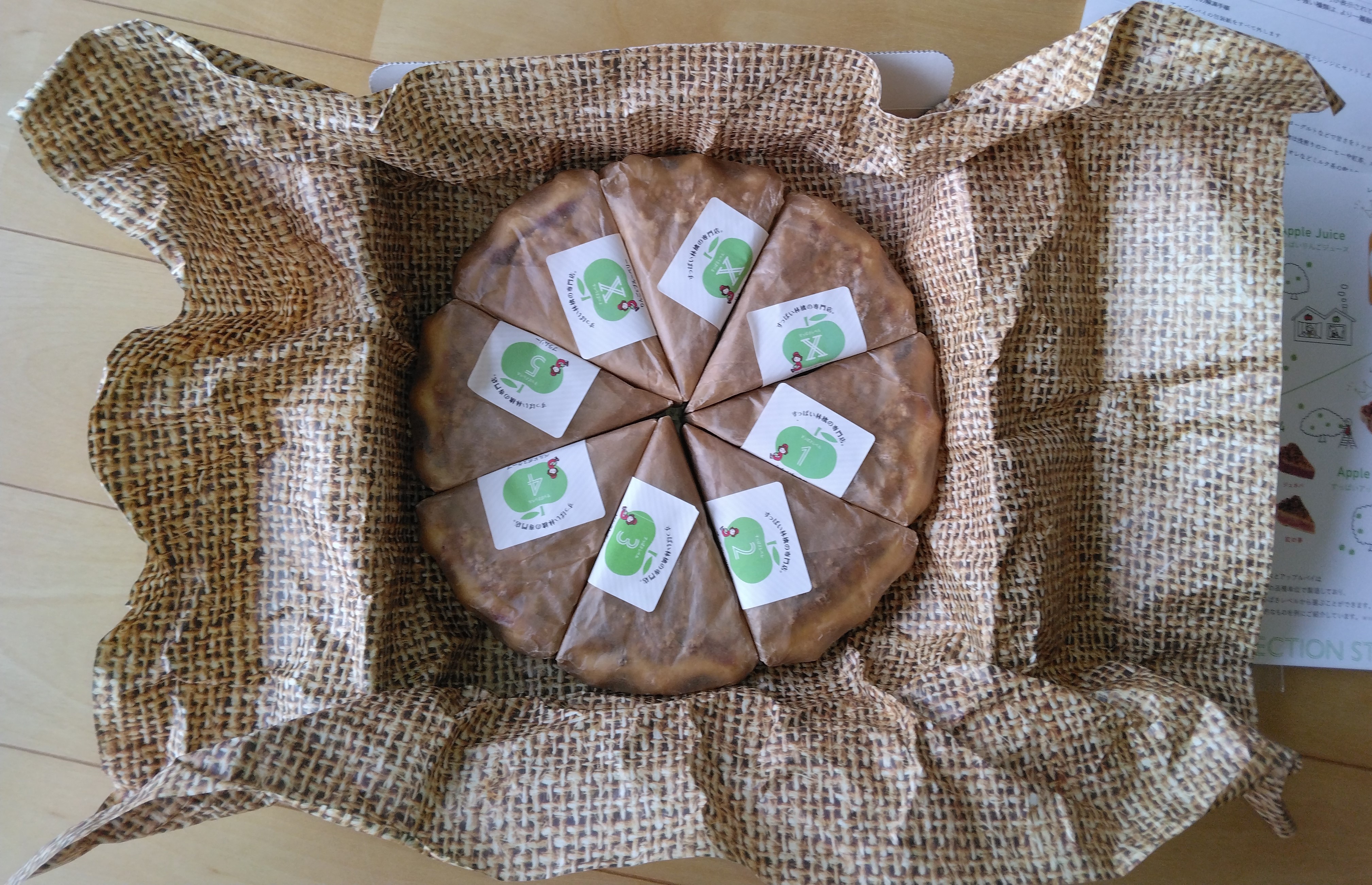 一見、8ピースにカットされたホールのアップルパイに見えますが、実はホール“風”。1ピースずつ味が異なる8種類のアップルパイが並んでいます。
