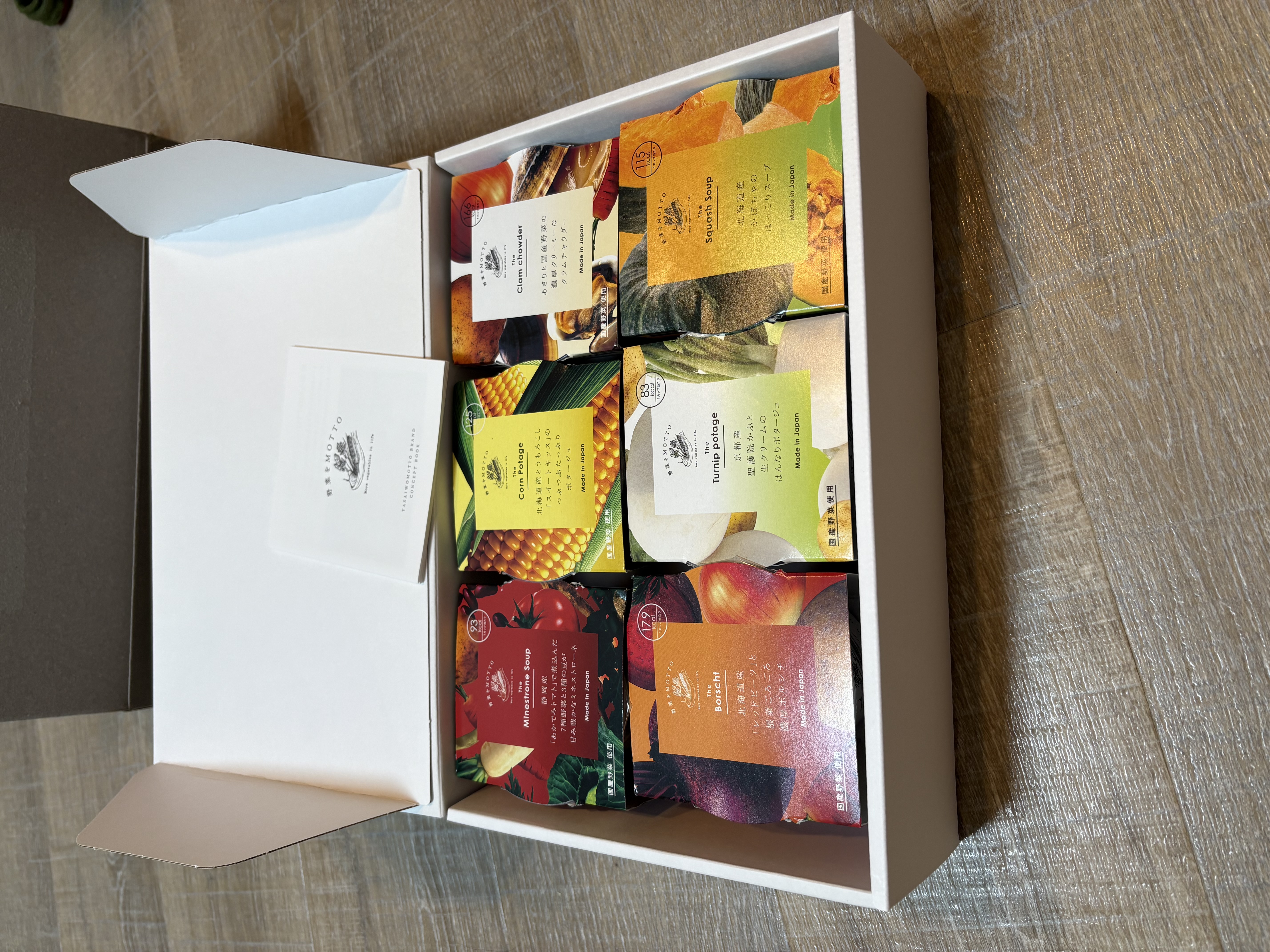 以前から気になっていたスープのセットをお試しさせていただきました。華やかなパッケージ、バラエティ豊かなお味のラインナップに心が躍ります。