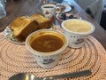 どれも美味しそうなスープ。6種類なのに、どれから食べようか本当に迷います。コーンやかぼちゃの定番からかぶと生クリームのポタージュまで。京都産というのとではんなりポタージュ。ネーミングも可愛いし、本当にはんなり、という感じの優しいポタージュでした。