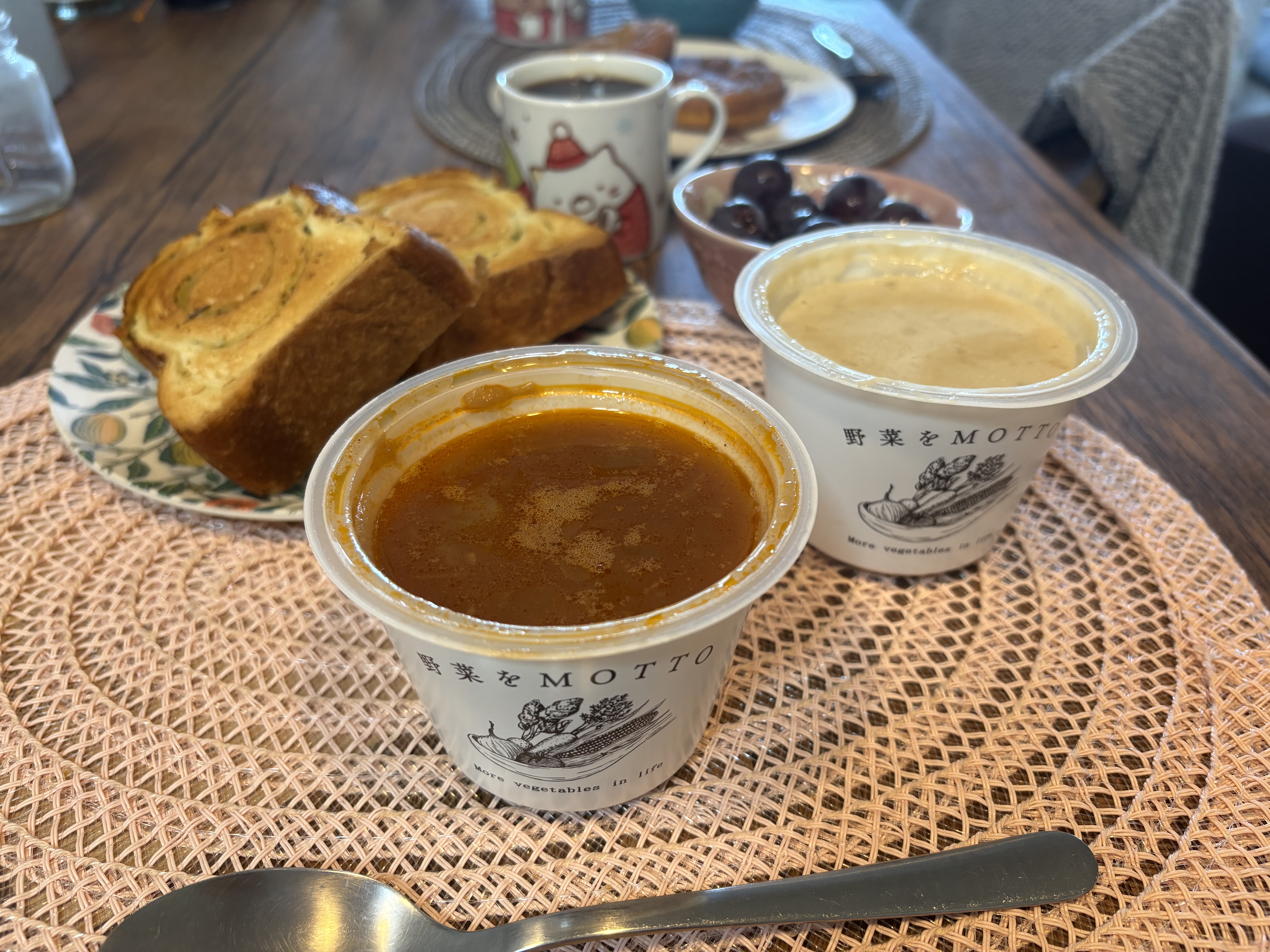 温めた瞬間の香りはやや強めだったけど、お味はマイルドで玉ねぎの甘味感じるスープ。