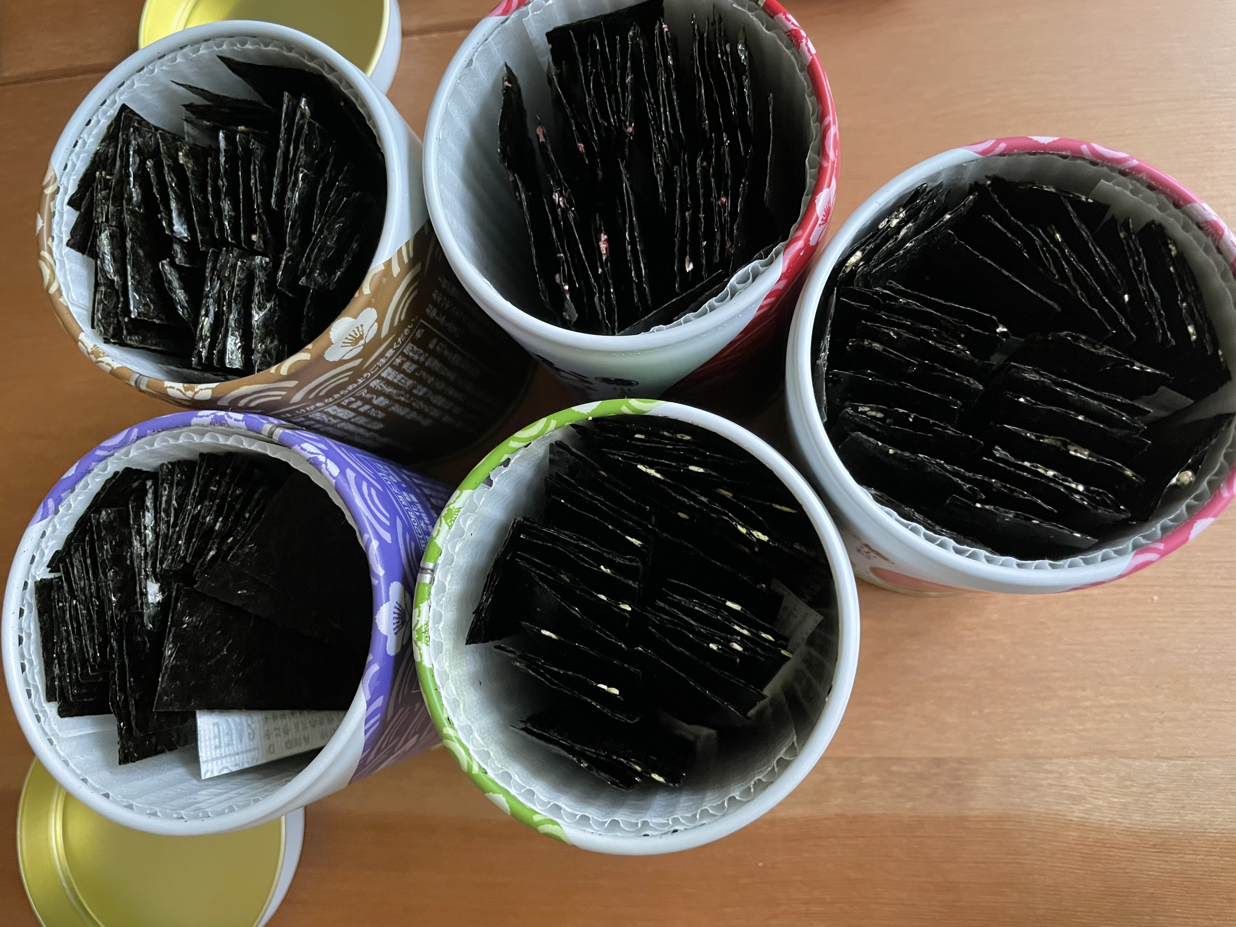 と言う事で、今回はぜいたくにも全て開封して豪華におつまみ海苔パーティです(^^)