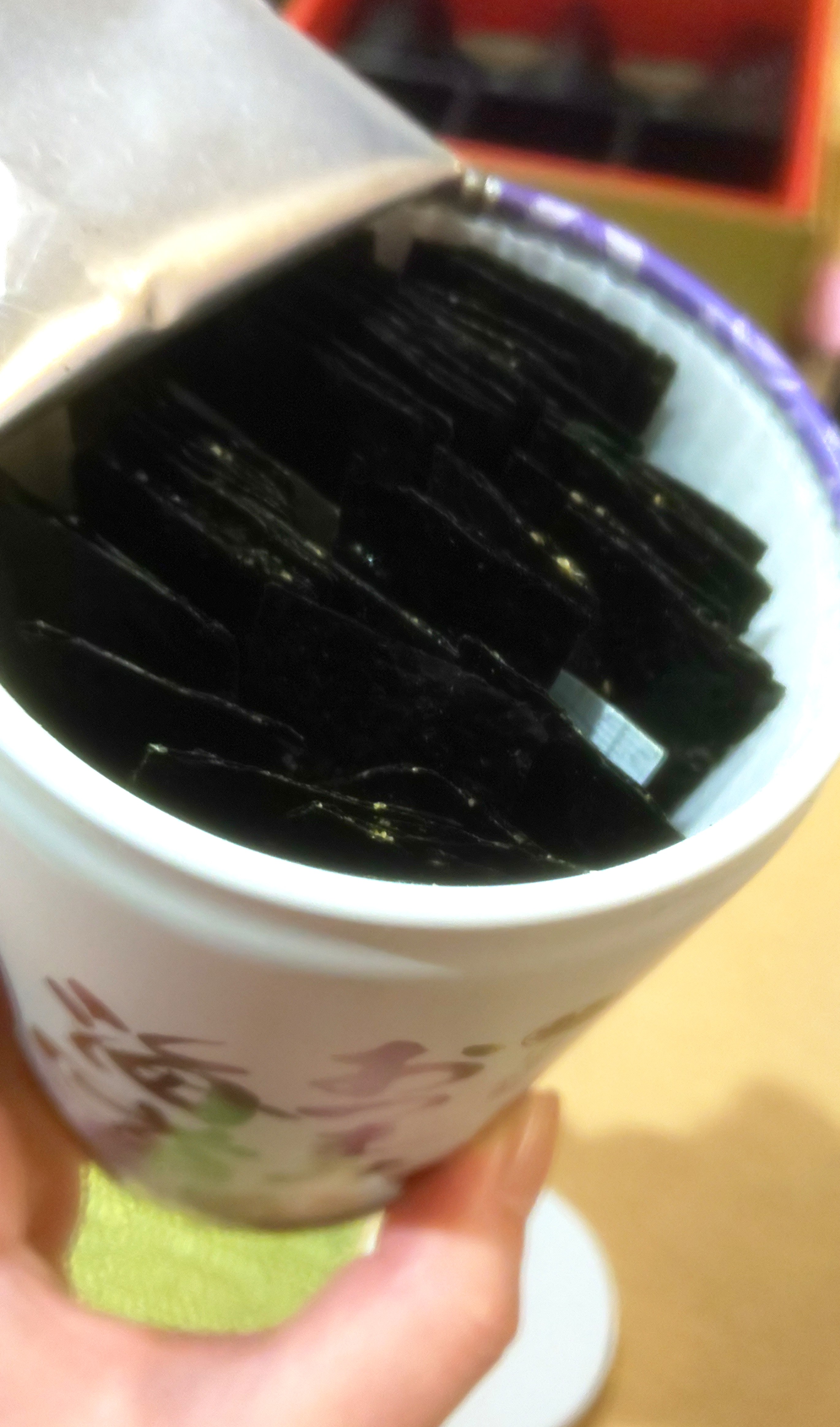 海苔に使われるしょうゆベースの味タレには、北海道日高産の天然昆布のだし汁を使用。魚介エキスでさらにうま味をプラスしていると言う事で、普通の味海苔より旨味が感じられるのかな?