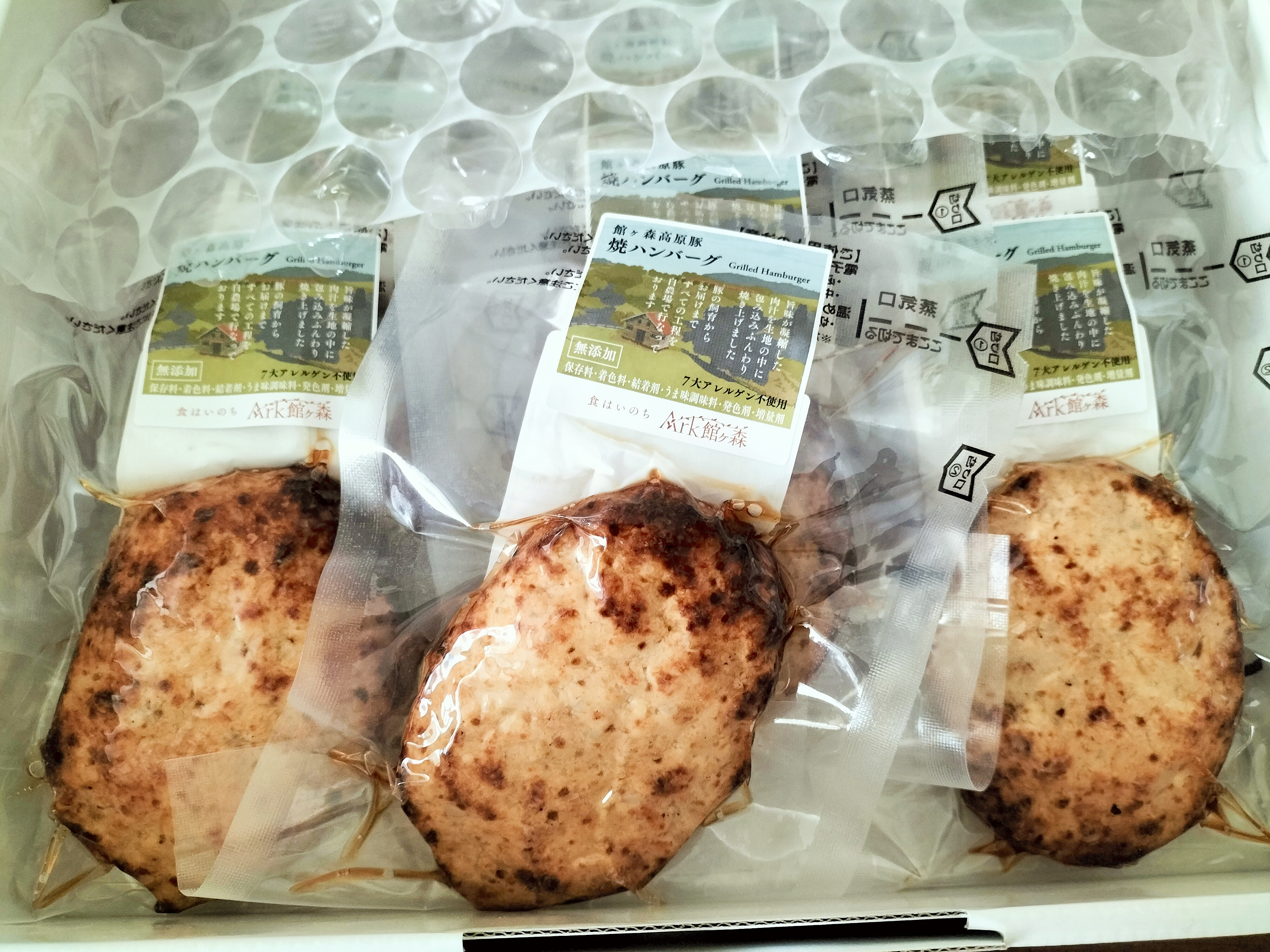 このハンバーグは、自社農場で育てられた銘柄豚「館ヶ森高原豚」を100%使用しています。