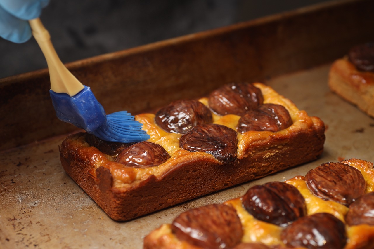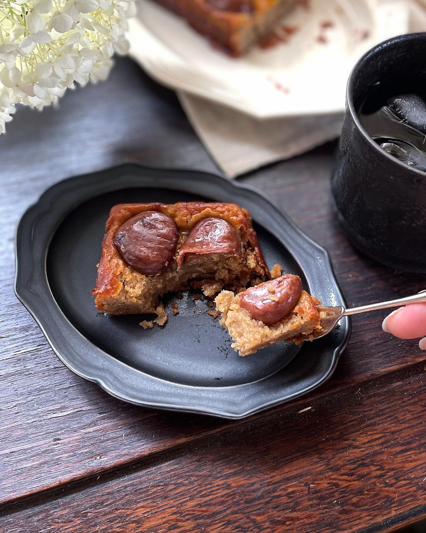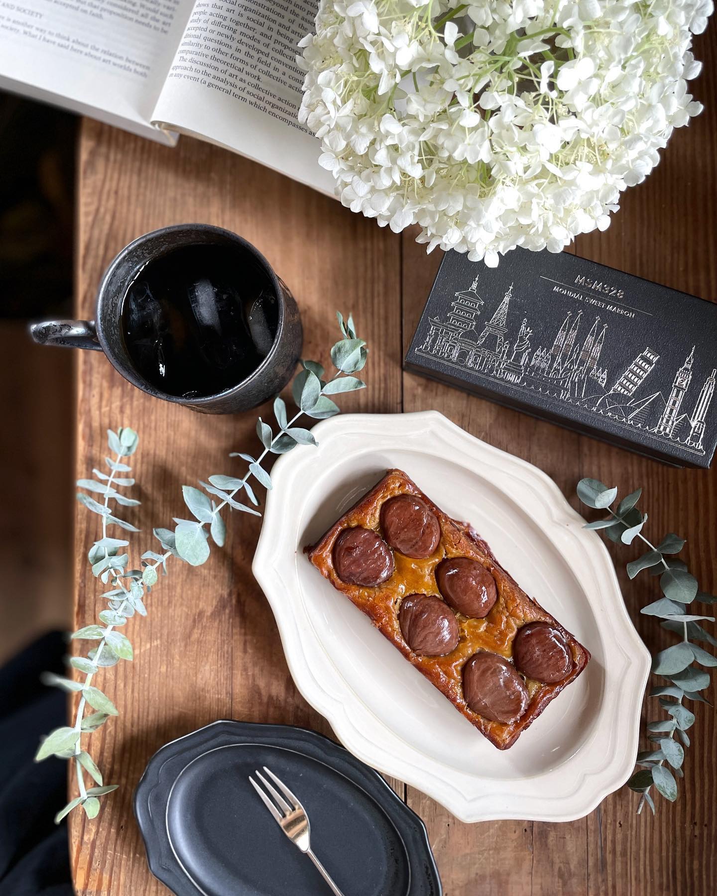 和栗の渋皮甘露煮をふんだんに使用し、生地との一体感、存在感が残るように何度も温度管理を調整、絶妙な焼き加減を目指しました。コーヒーや、紅茶との相性も抜群です。
