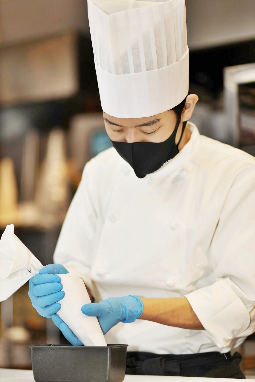 MONDIALのスイートマロンの特徴は、栗のコク深さと濃厚でシルキーな舌触り。滑らかな食感に仕上げるために、材料を1つずつ丁寧に投入しながら混ぜるという手作業を、一般的な仕込みのおよそ「3倍」もの時間をかけ慎重に行っています。熟達の職人による技術は、生地にあえて粗ごし食感を残し、栗を食べたときに感じる“ほっくり感”とスイートマロンとしての滑らかさを同時にお愉しみいただけるよう工夫が凝らされております。